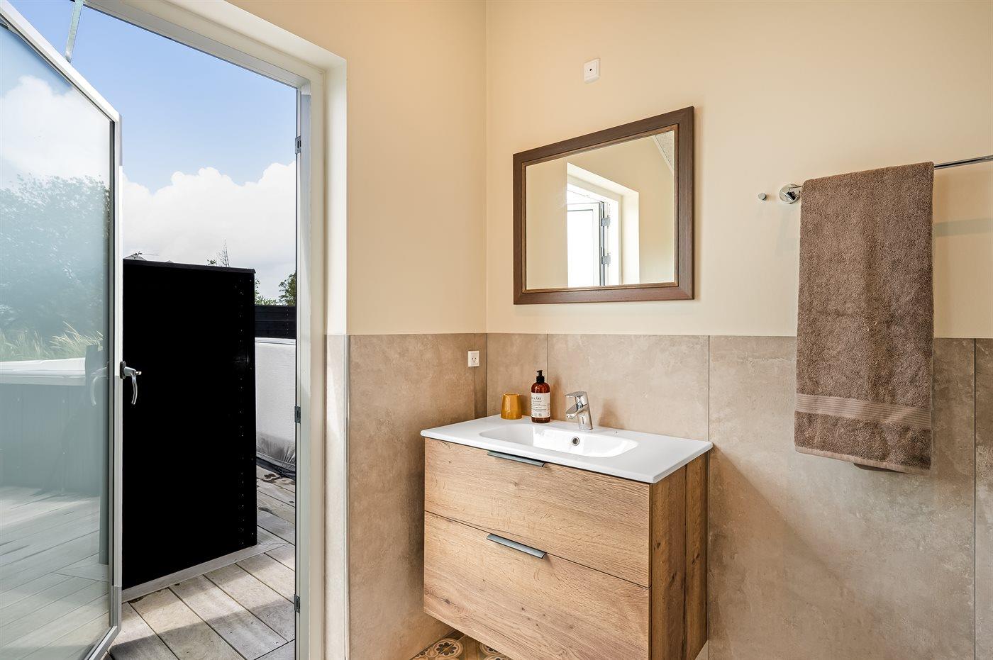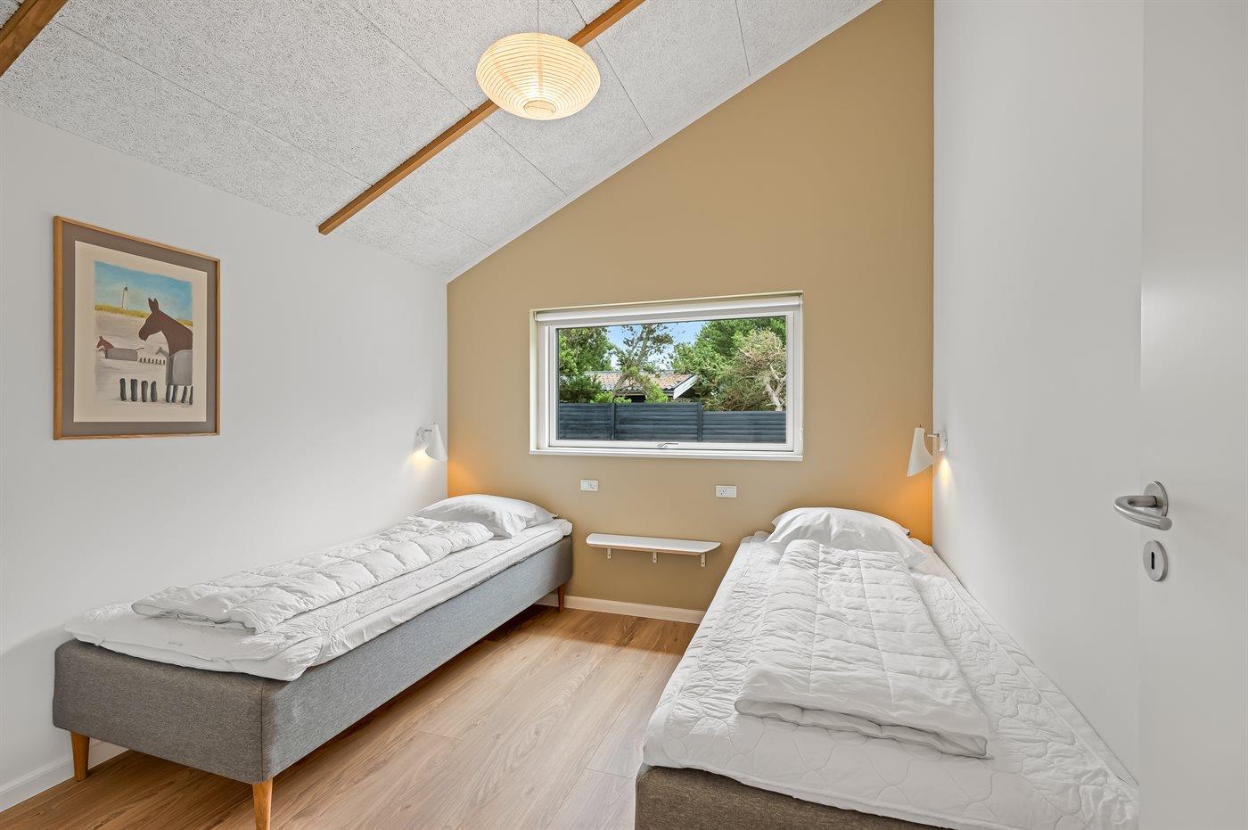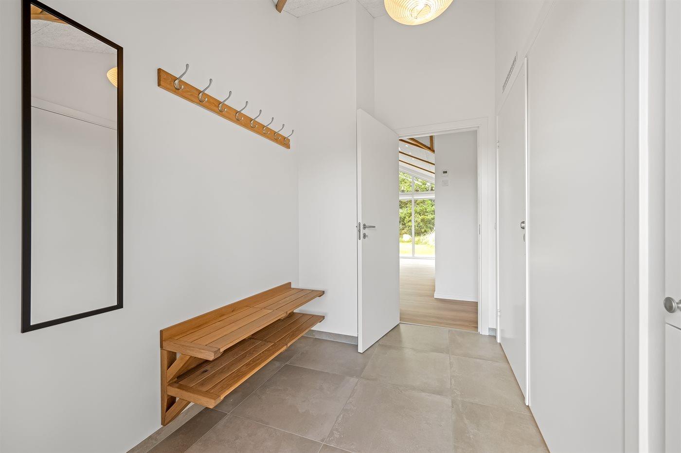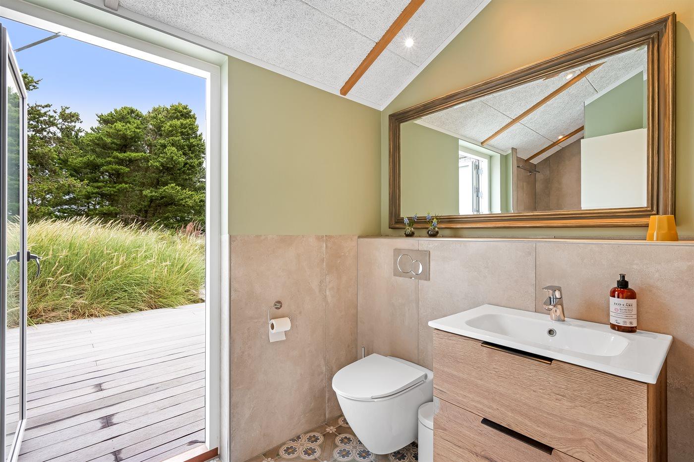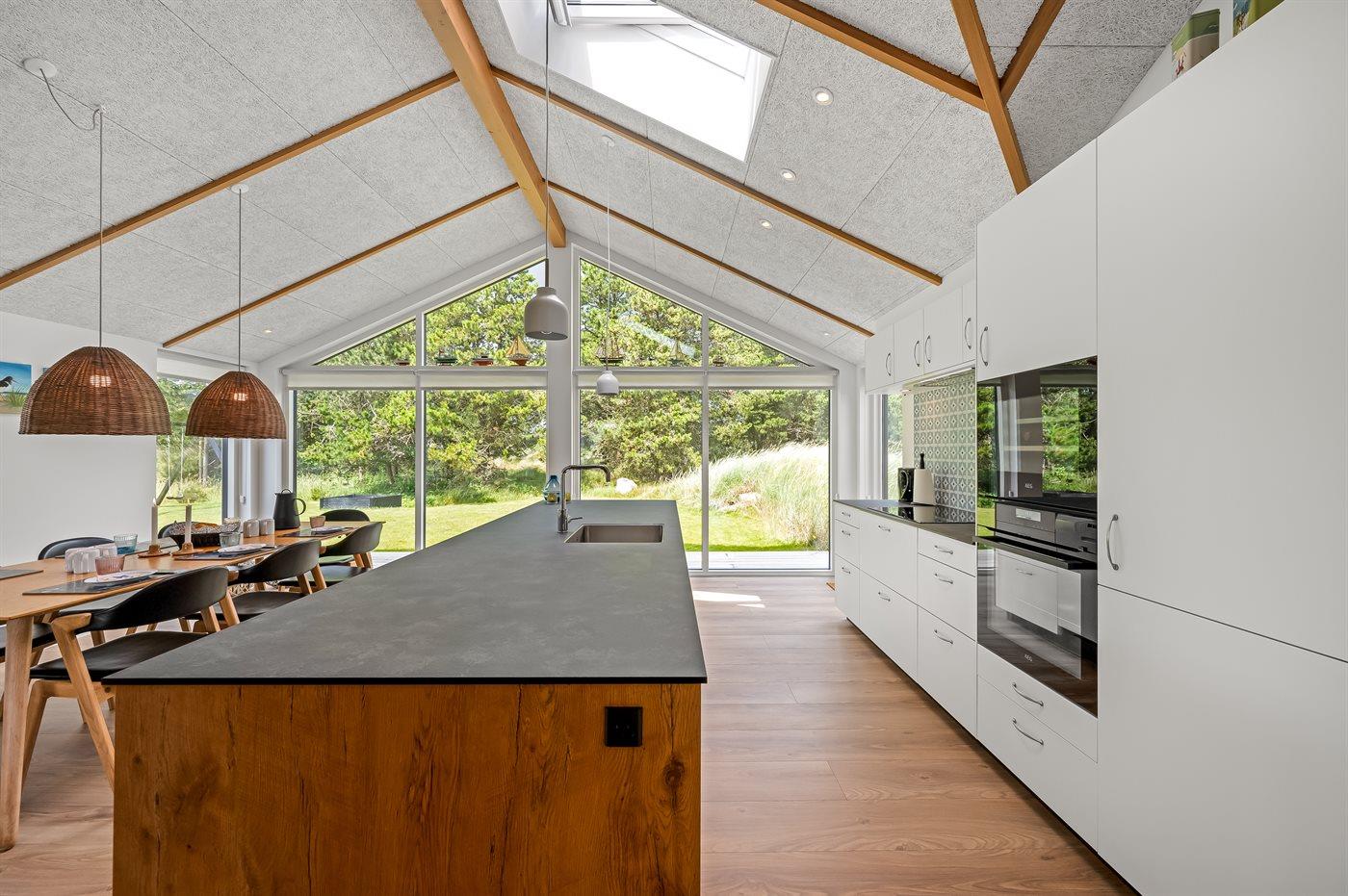 Ein besonders schönes Qualitätsferienhaus in Blåvand, das zu einem schönen, entspannten Familienurlaub einlädt. Das Naturgrundstück ist 1800 m² groß und ruhig gelegen. Das Haus weist eine besonders tolle Ausstattung auf. Wenn Sie gern Zeit im Freien verbringen, stehen Ihnen eine Außenküche mit Grill und eine Außendusche zur Verfügung. Alternativ bietet sich ein Saunagang mit Aussicht auf die umliegende Natur an. Dank des Außenlichts auf der Holzterrasse lassen sich die Tage etwas verlängern. Auf der überdachten Terrasse sorgen Infrarot-Terrassenwärmer für eine angenehme Wärme, die zum Genießen eines temperierten Glas Weins aus dem Weinkühler einlädt. Während des abendlichen Besuchs im Outdoor-Whirlpool haben Sie ganzjährig Blick auf die urige Fichte, die abends beleuchtet werden kann. Bis zum Meer sind es 1800 m. Das nächste Geschäft liegt mit 800 m Entfernung in Laufweite. Das Ferienhaus eignet sich für 8 Personen sowie 1 Kind bis zu 3 Jahren. Die Ferienunterkunft wurde 2021 erbaut und verfügt über eine Fläche von 170 m². Die Ferienunterkunft ist mit 1 energiesparenden Wärmepumpe ausgestattet. Die gesamte Ferienunterkunft verfügt über Fußbodenheizung. Die Küche ist mit einem Kühlschrank, Induktionskochfeld, Backofen, Mikrowelle, Weinkühler und Spülmaschine ausgestattet. Die Ferienunterkunft hat einen separaten Waschraum mit Waschmaschine, Trockner und Tiefkühler mit 50 l Kapazität. Zudem gibt es einen Kamin. Für die ganz Kleinen ist 1 Kinderstuhl, eine Schaukel und ein Sandkasten vorhanden. Im Aktivitätsraum können Sie Pool, Tischtennis und Shuffleboard spielen. Insgesamt gibt es 4 Schlafzimmer. Die Schlafplätze verteilen sich wie folgt: 6 Schlafplätze in Doppelbetten und 2 Schlafplätze in Einzelbetten. Zudem gibt es 1 Kinderbett. Es gibt 2 Badezimmer mit Duschnische, Fußbodenheizung, Nachtbeleuchtung und 2 Toiletten. In der Ferienunterkunft gibt es 2 Smart-TVs und 1 Bluetooth-Lautsprecher. Sie empfangen mindestens 4 dänische Sender. 1–3 schwedische Sender. 1–3 norwegische Sender. Mindestens 4 deutsche Sender. WLAN ist vorhanden. Es gibt einen Geräteraum und ein Carport mit Lademöglichkeit für E-Autos. Es gibt Parkmöglichkeiten an der Ferienunterkunft. Das Haus verfügt über eine Lüftungsanlage mit Pollenfilter. Wenn Ihnen der Sinn nach ungestörter Ruhe steht, lässt sich das WLAN im Eingangsbereich ausschalten.
