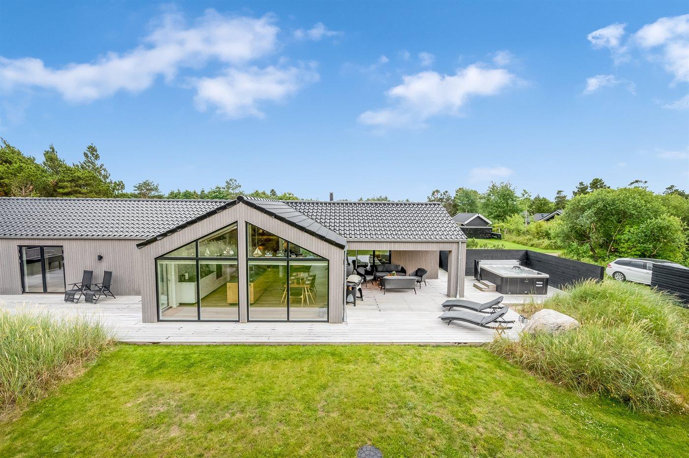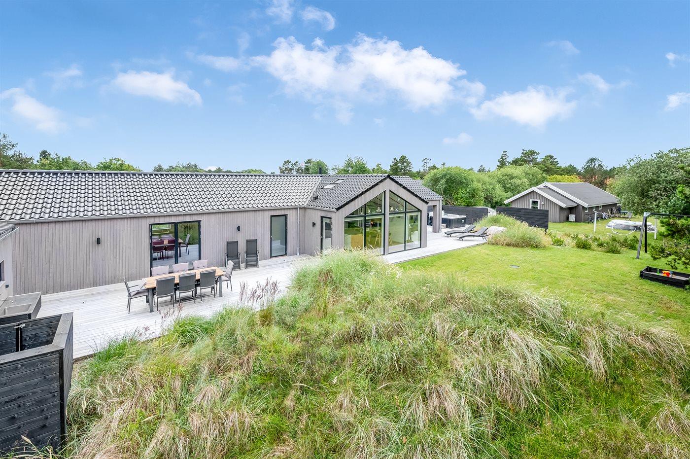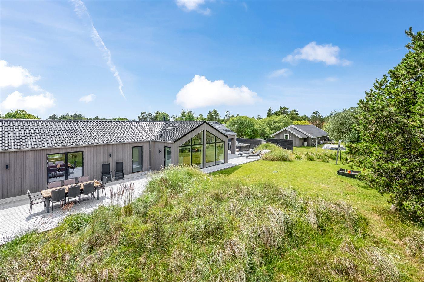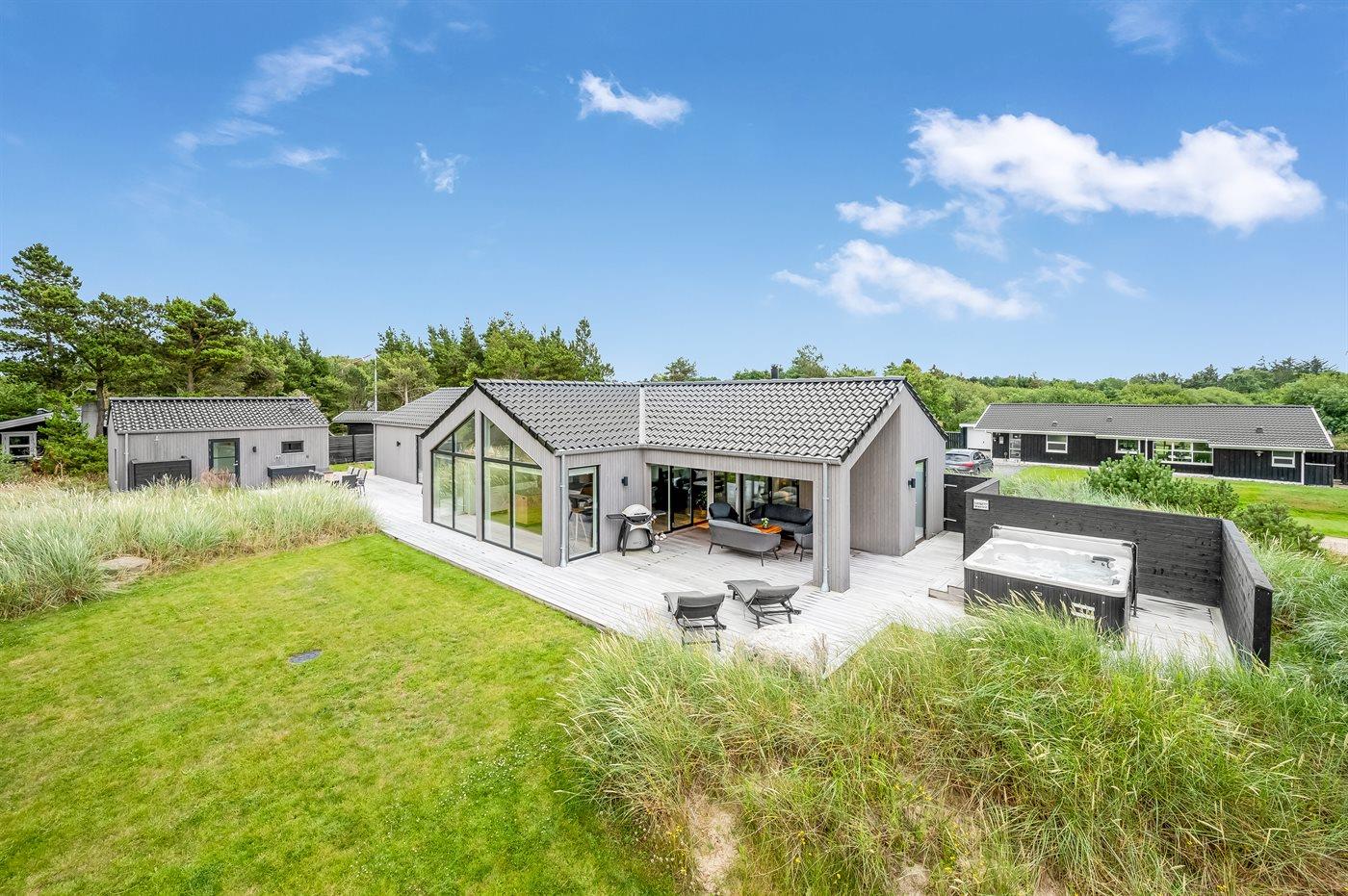 Modernes Ferienhaus in Blåvand mit Sauna, Außenküche, Whirlpool und Aktivitätsraum für entspannte Familienferien.