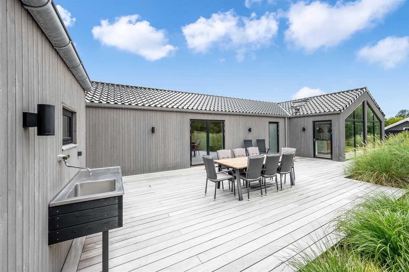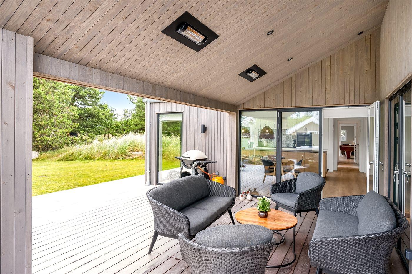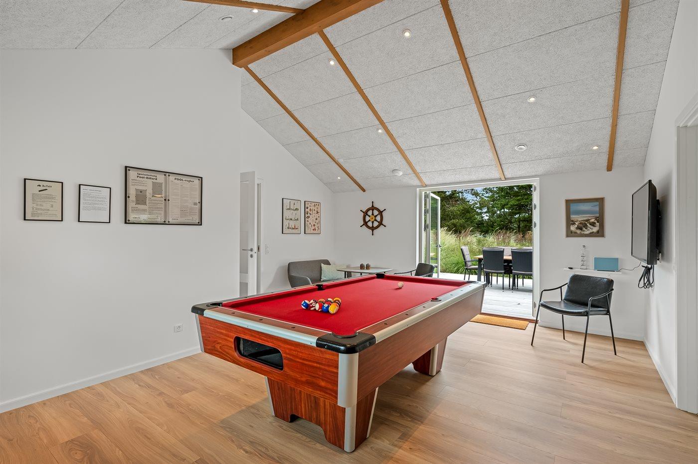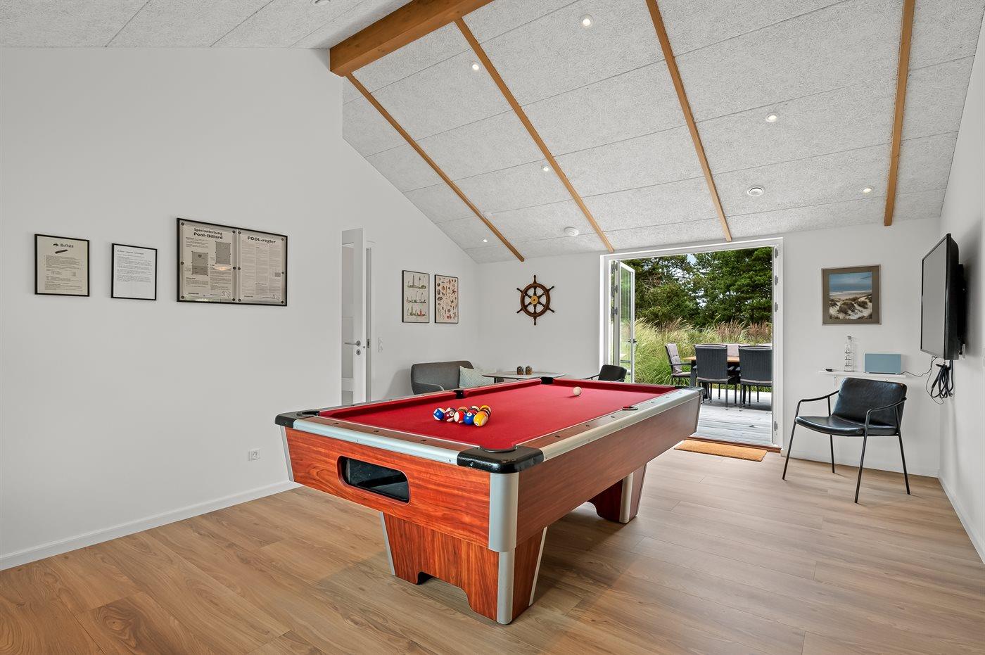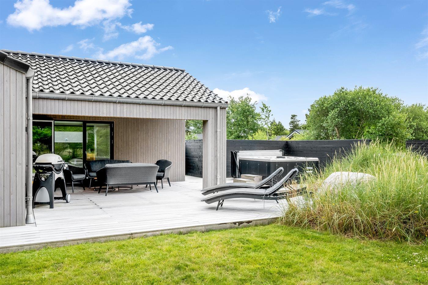 Modernes Ferienhaus in Blåvand mit Sauna, Außenküche, Whirlpool und Aktivitätsraum für entspannte Familienferien.