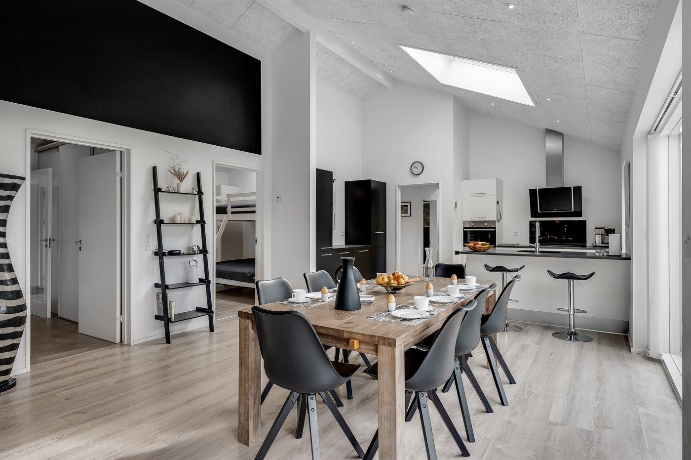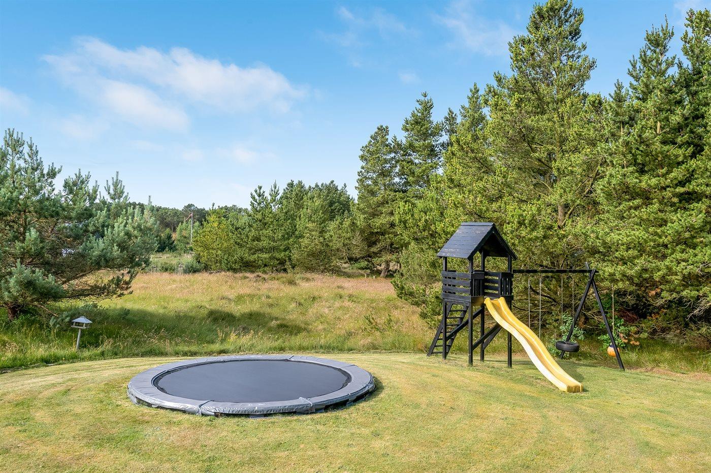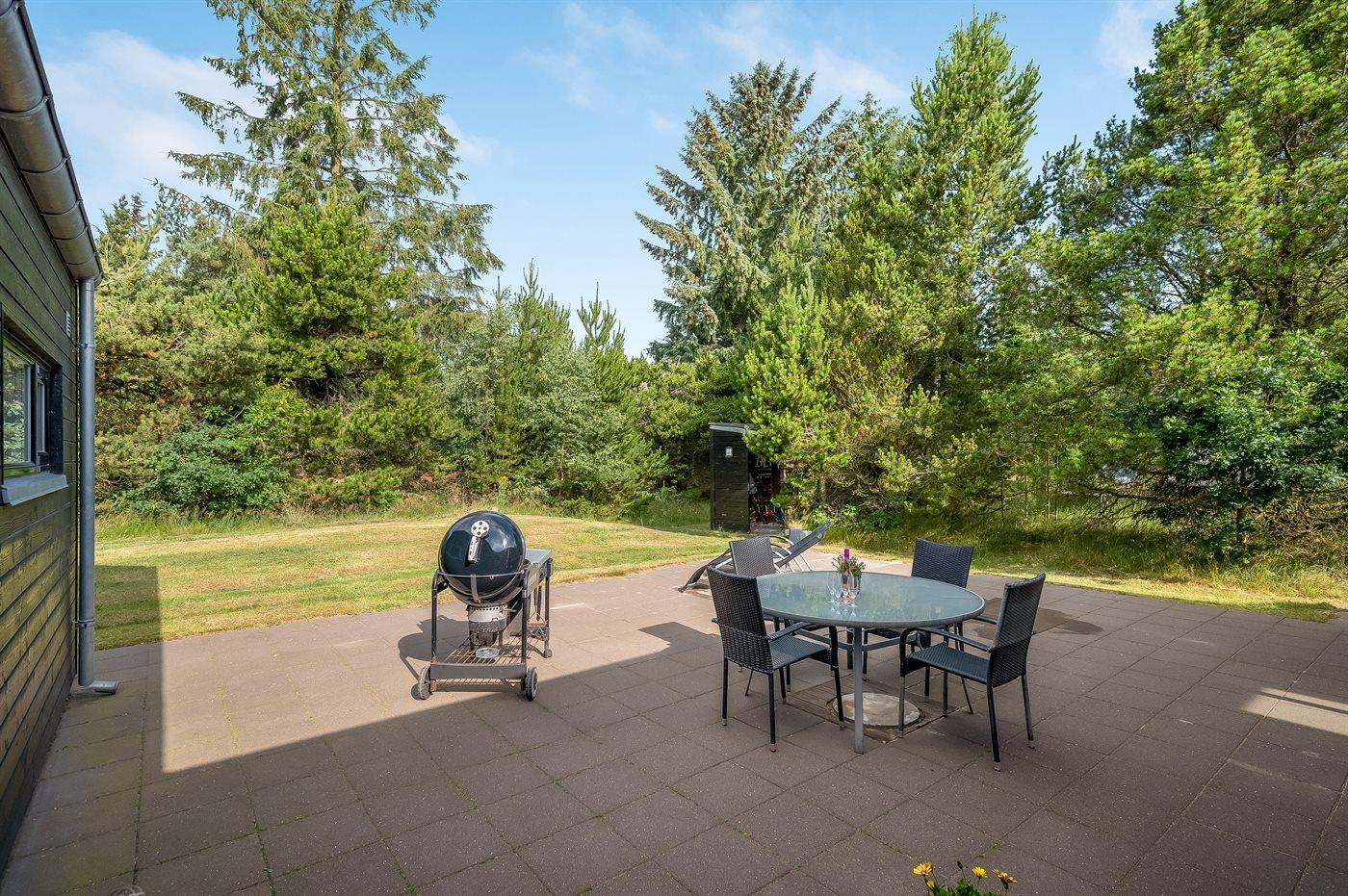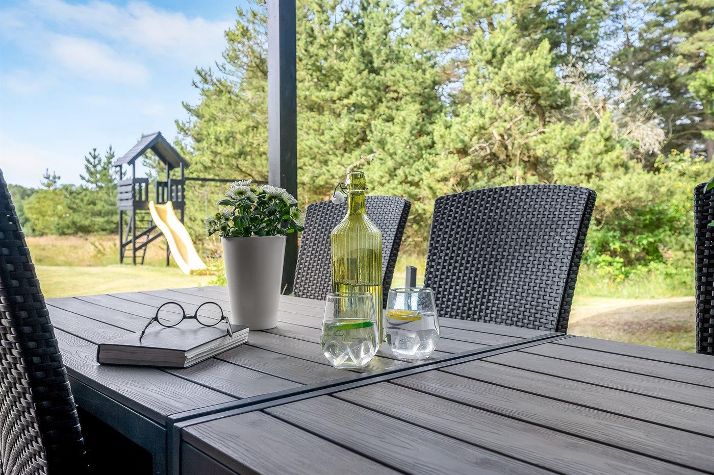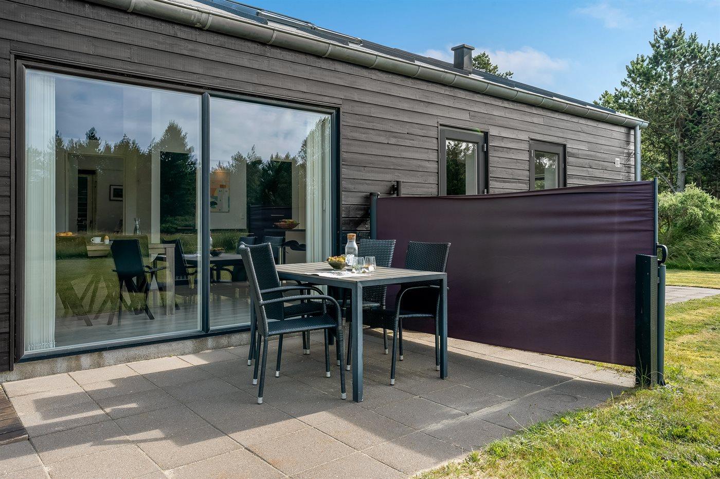 Geschmackvoll eingerichtetes Ferienhaus in modernem Design. Das Haus liegt auf einem großen Naturgrundstück in einem ruhigen und beliebten Urlaubsgebiet. Der wahrscheinlich beste Badestrand Dänemarks und das rege Geschäftsleben sind einen etwas längeren Spaziergang entfernt. Das Haus hat schöne Terrassen, von denen eine überdacht ist. Dort können Sie sich mit einem guten Buch erholen oder eine Mahlzeit im Freien genießen. An die Kinder wurde auch gedacht – auf dem Grundstück stehen gute Spielgeräte bereit. Freuen Sie sich auf einen gelungenen Urlaub in einem schönen Ferienhaus!