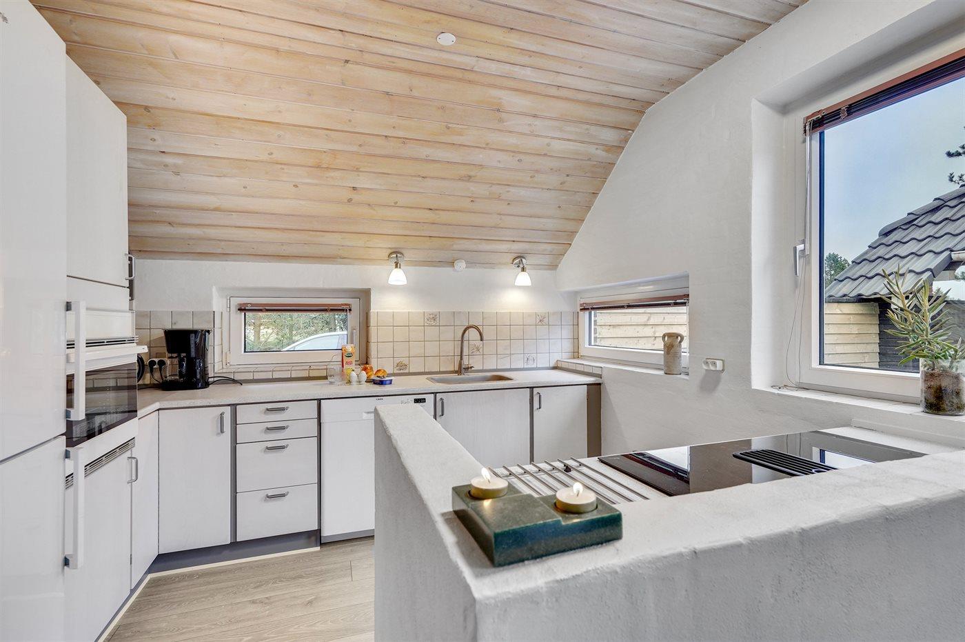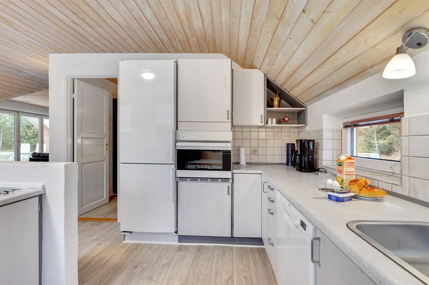 Die Küche ist mit Kühlschrank ausgestattet. Außerdem gibt es 1 Keramik-Kochfelder. Außerdem gibt es 1 Induktions-Kochzonen, Umluftofen, Mikrowelle sowie Geschirrspüler.