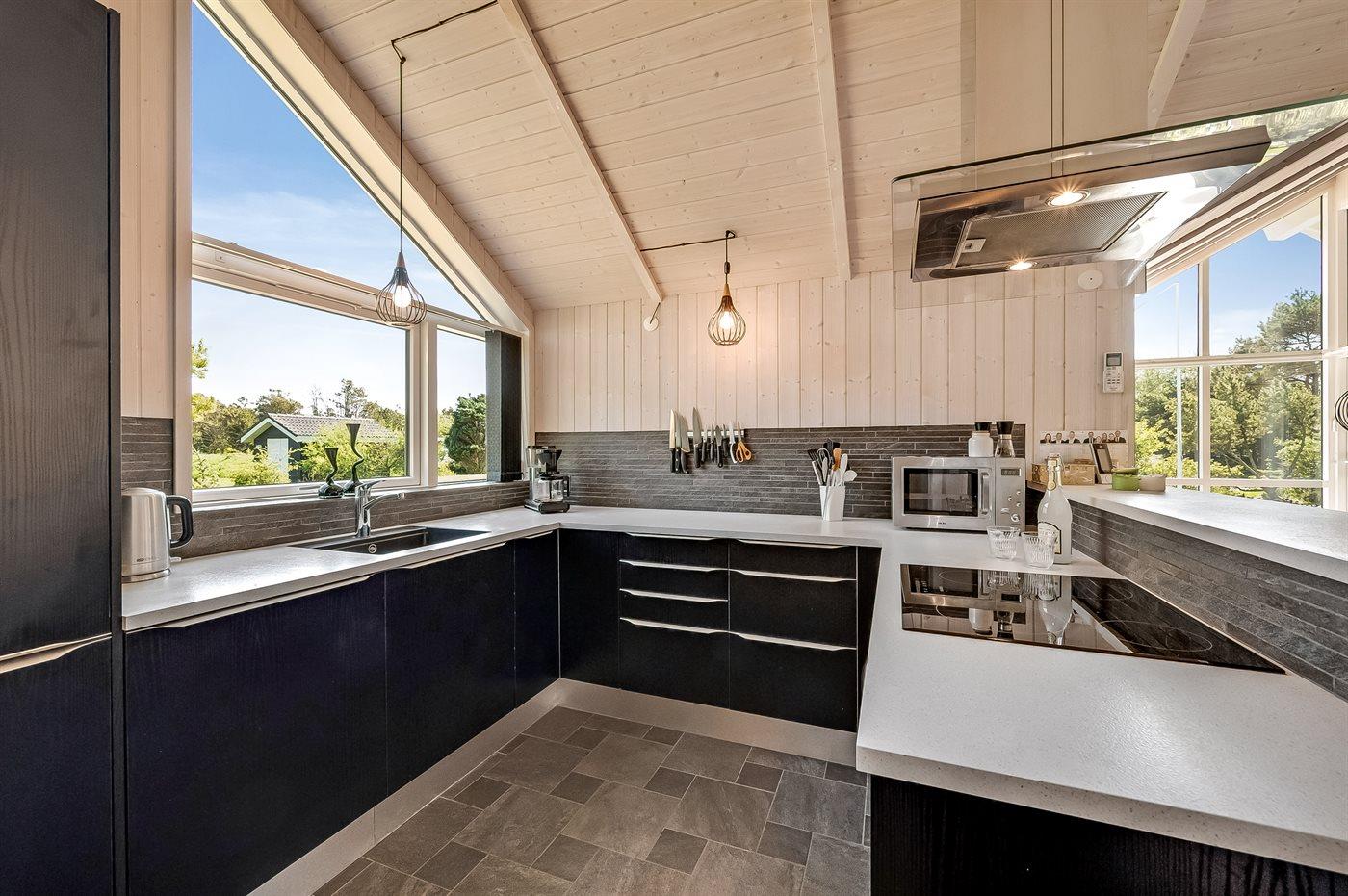 Das Haus ist u. a. mit einer großen Küche eingerichtet, die mit allem ausgestattet ist, was das Herz begehrt und mit dem Ess-/Wohnzimmer kombiniert ist. Das Haus verfügt über 2 Badezimmer und 4 Schlafzimmer und eignet sich daher perfekt für 1 aber auch 2-Familien, die einen gemeinsamen Urlaub in schöner Umgebung verbringen möchten.