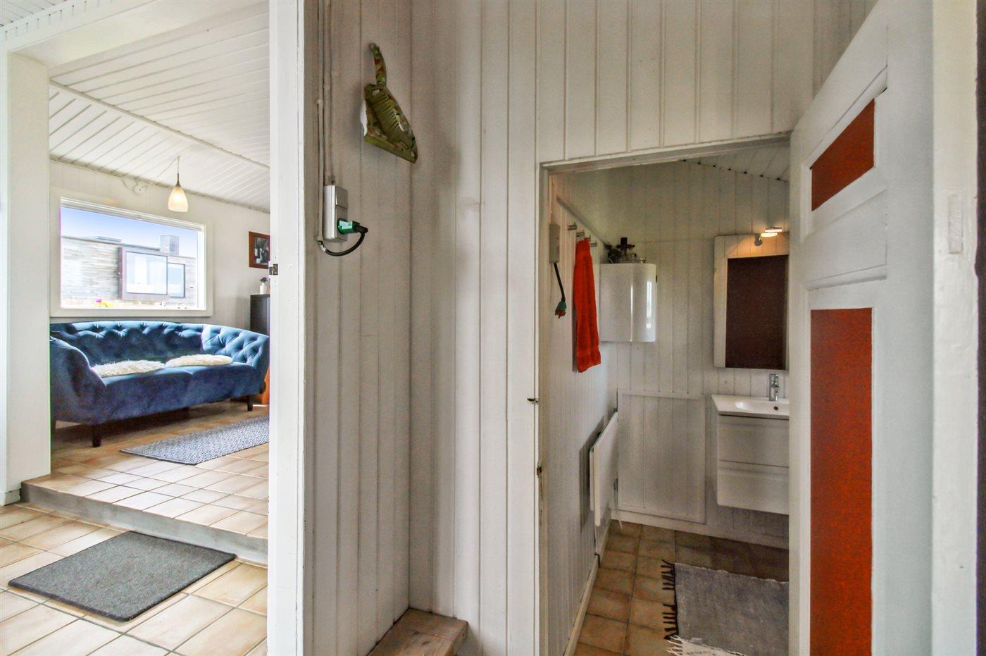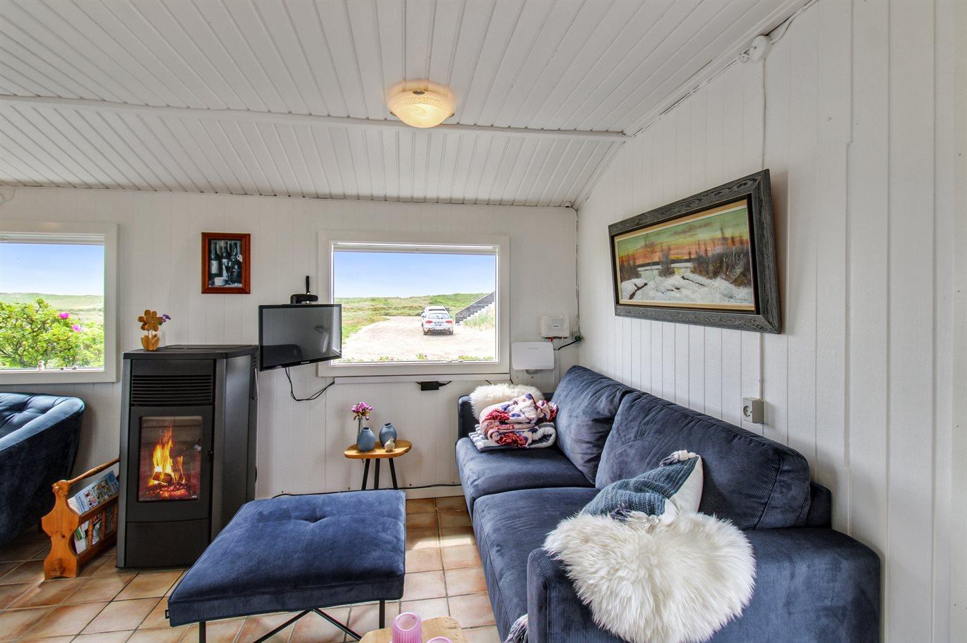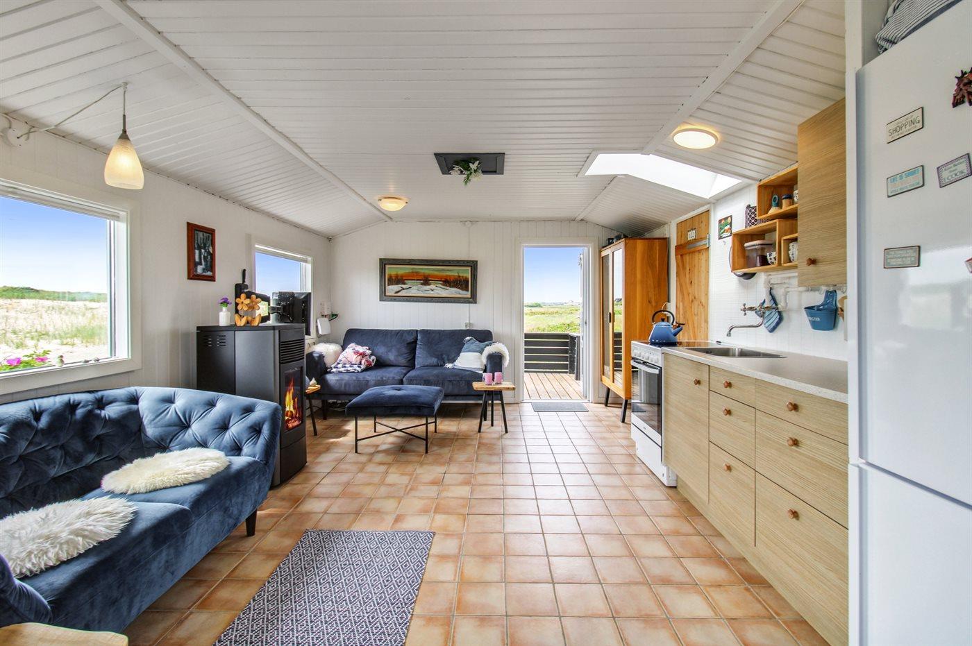 Schöne Lage direkt an offenen Flächen und nur 100 Meter vom Strand entfernt. Wenn man Ruhe und Frieden sucht, ist dieses Ferienhaus genau das Richtige. Das Haus verfügt über 2 schöne Terrassen, auf denen man immer Schutz vor Wind und Sonne findet. Auf dem Grundstück befindet sich auch ein Unterstand, sodass man auch im Freien schlafen kann, falls man das möchte. Das Haus strahlt eine typische Sommerhaus-Atmosphäre aus und bietet alles, was man für einen herrlichen Urlaub benötigt.
