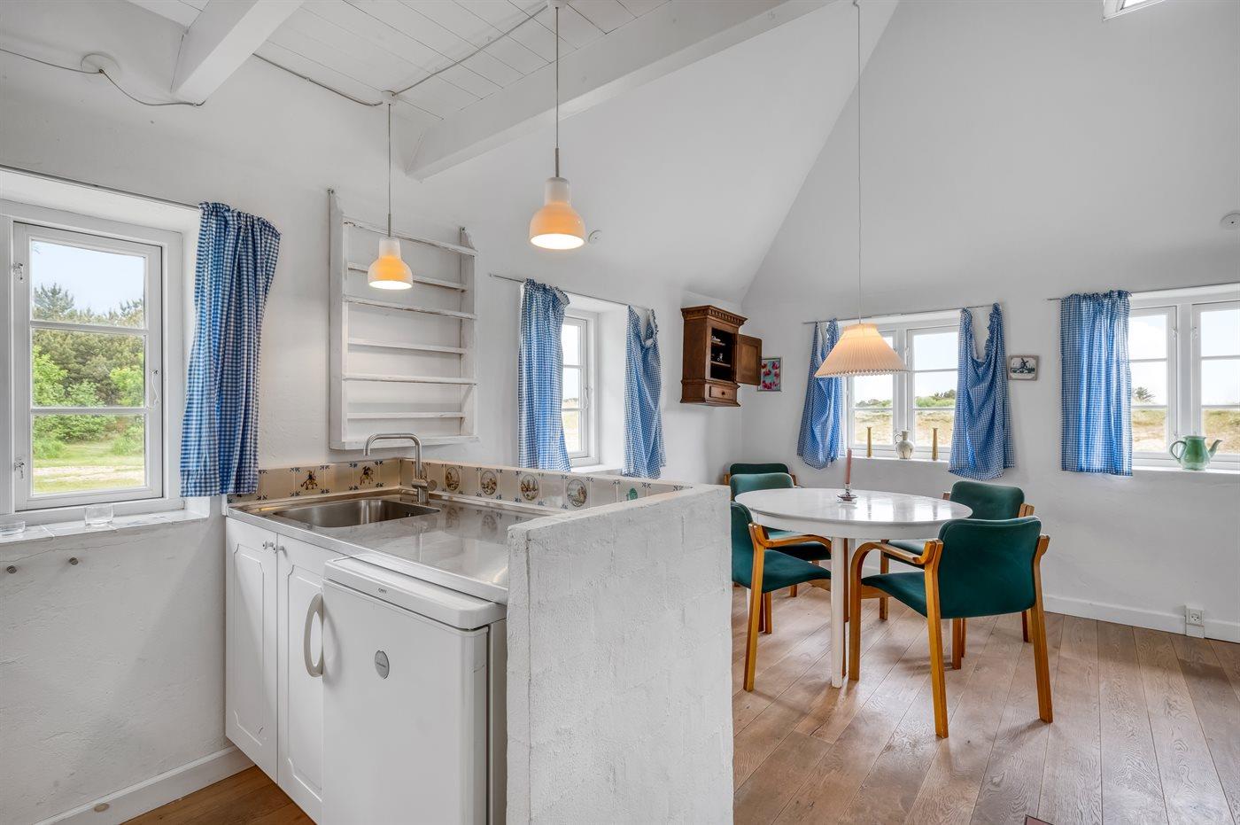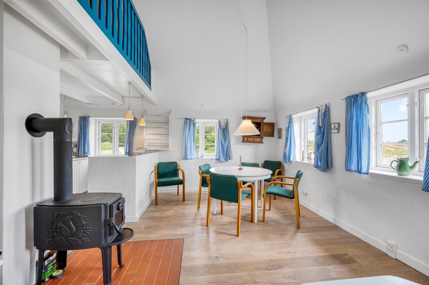Der Hof ist charmant und liegt ungestört in der Dünenlandschaft in der Nähe von Kallesmærsk Hede. Hier ist man nah an der wunderschönen Natur und der Dünenlandschaft. Es sind etwa 2,5 km bis zum Sandstrand. Zum Anwesen gehört ein privates Strandgrundstück, auf dem Fahrräder und Autos geparkt werden können.