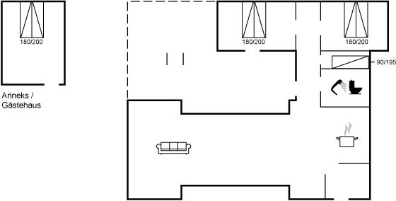 Die Schlafplätze verteilen sich auf 4 Schlafräume. 6 Schlafplätze in Doppelbetten.1 Schlafplatz in einem Einzelbett. 2 von diesen Schlafplätzen befinden sich im Gästehaus.