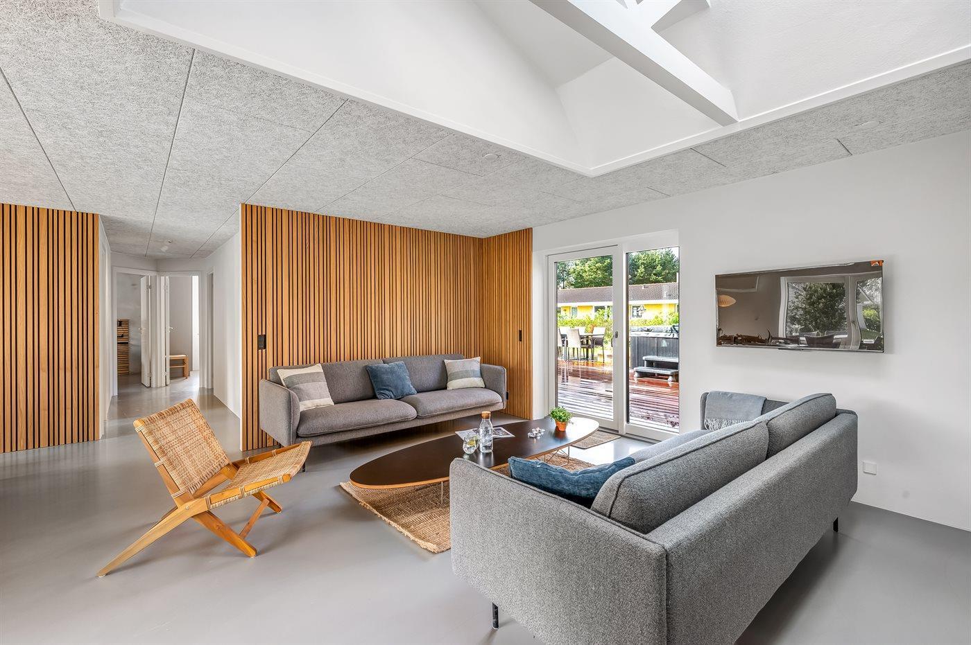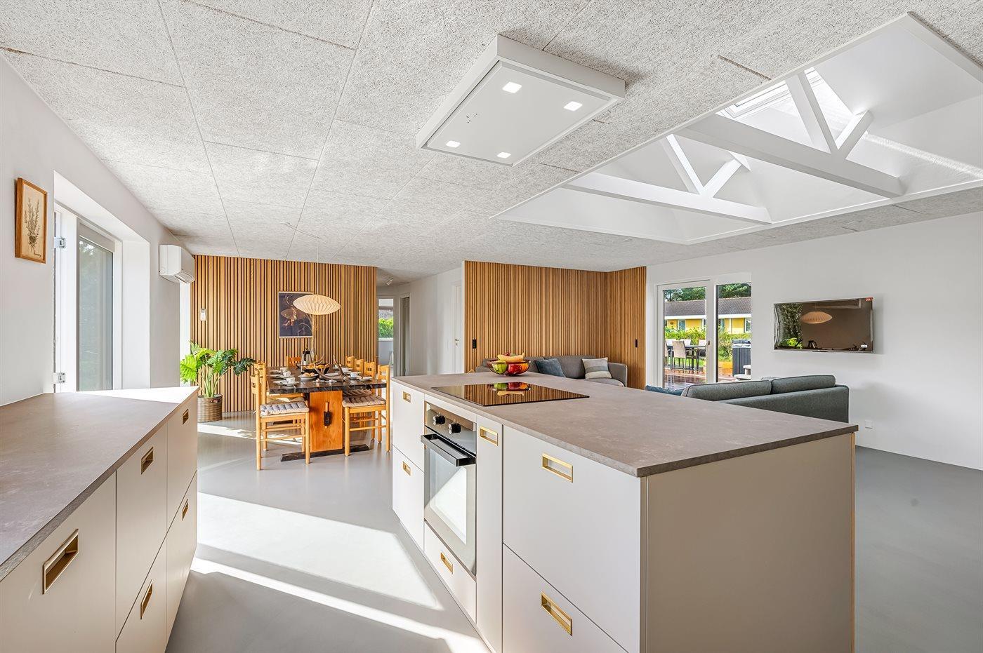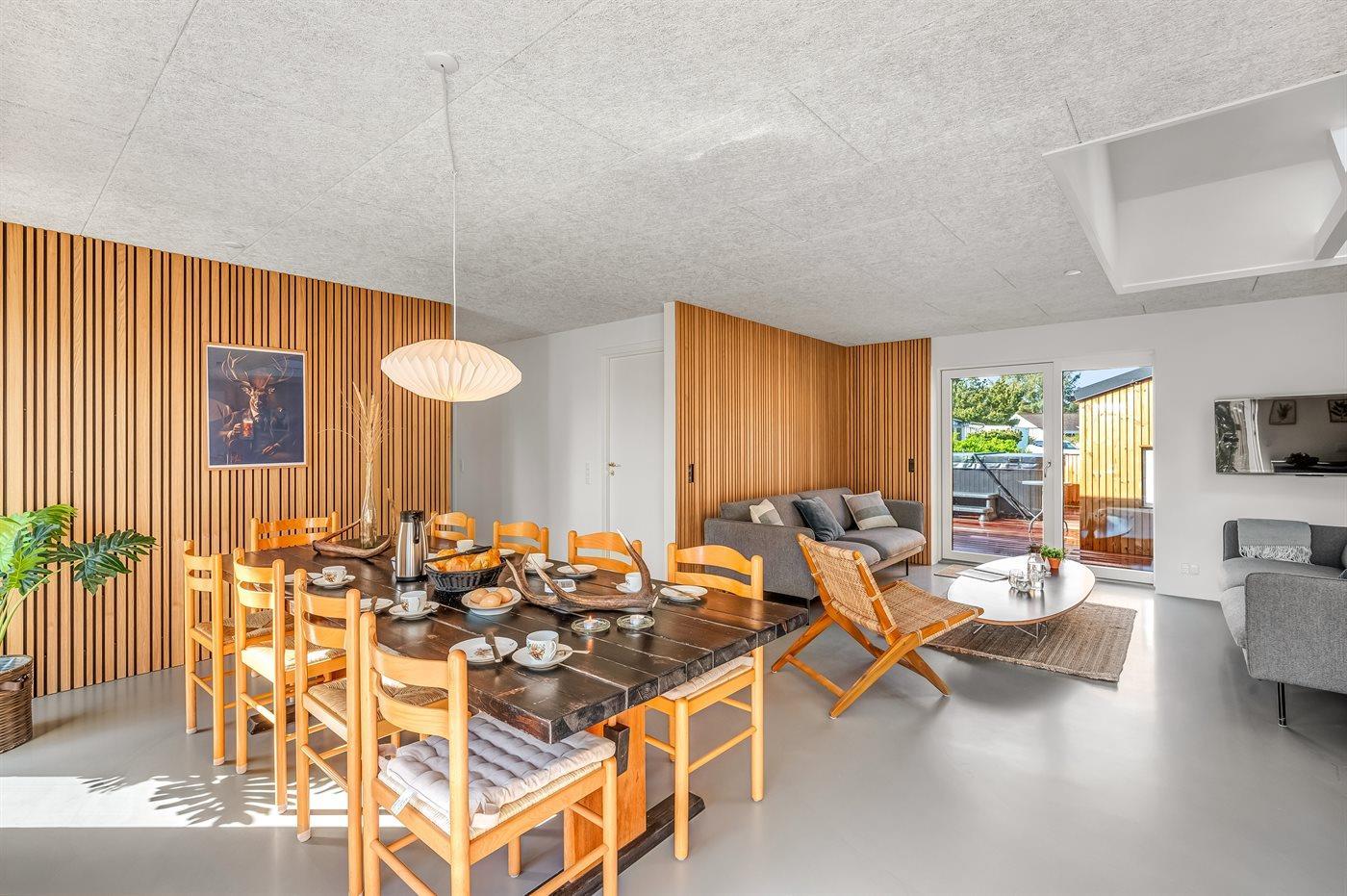 Ferienhaus mit Swimmingpool aus exklusiven Materialien in ruhiger Umgebung gelegen. Das Ferienhaus ist der Mittelpunkt deines Urlaubs mit einem schönen Wohnbereich mit offener Küche und Wohnzimmer, einem Poolraum mit Sauna und der großen Terrasse mit einem großzügigen Whirlpool. Die Umgebung bietet eine reiche Tierwelt und liegt in der Nähe des Blåvandshuk Golfklubs und Skallingen, wo du den feinsten, langgestreckten Strand und eine Heidelandschaft findest, auf der im Sommer Rinder weiden.