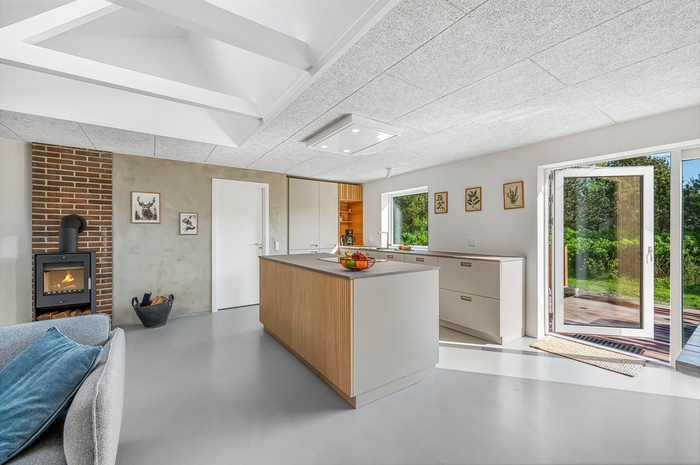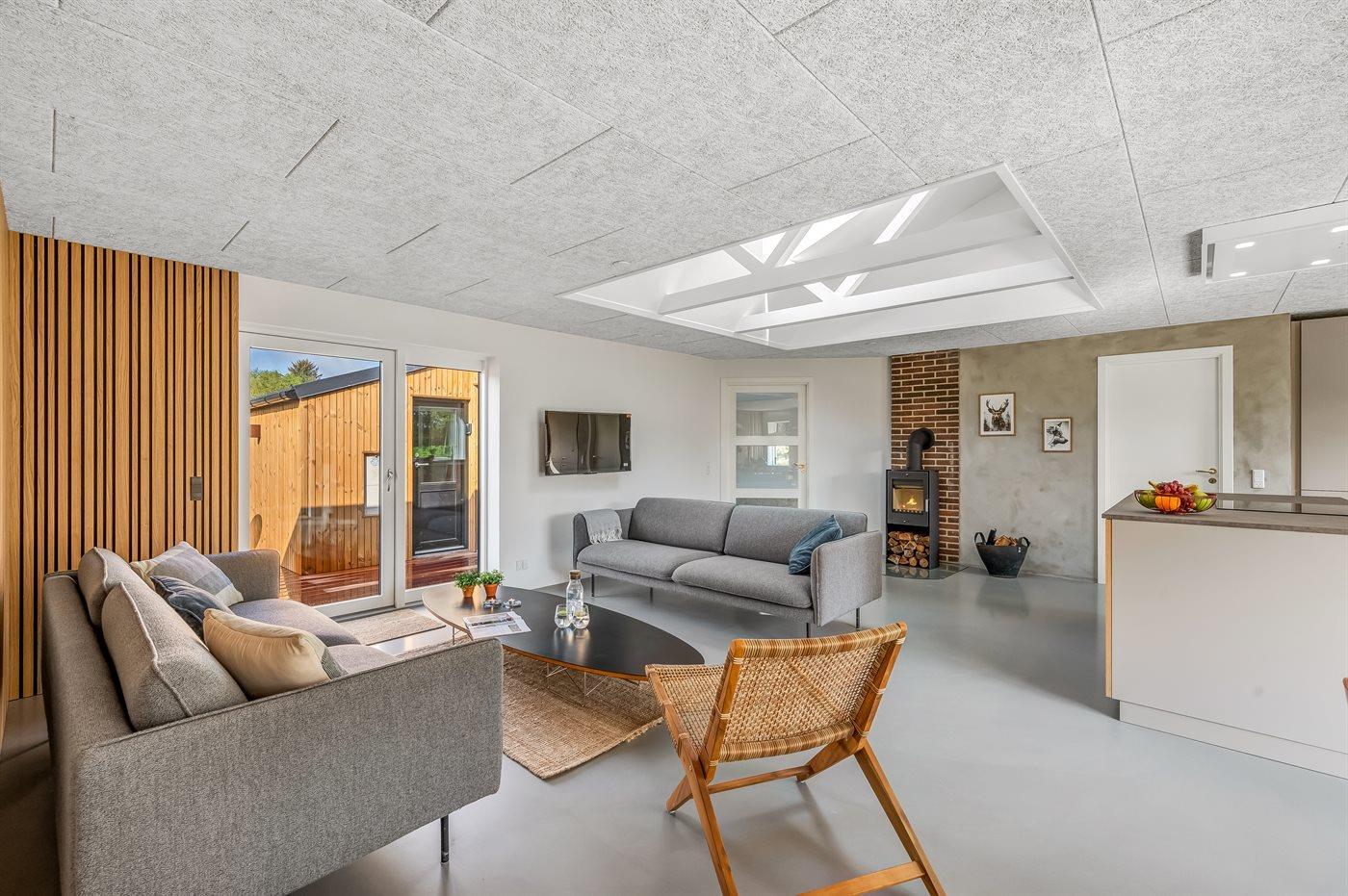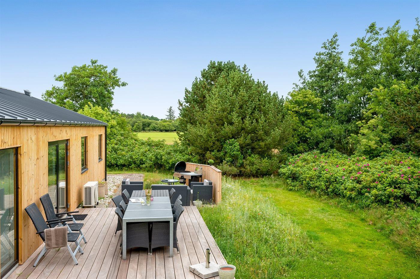 Die Ferienunterkunft liegt auf einem 1800 m² großen Naturgrundstück. Die Entfernung zum Meer beträgt 3000 m. Die Entfernung zum Fjord beträgt 500 m. Die nächste Einkaufsmöglichkeit liegt 750 m entfernt. In einem Abstand von 500 m gibt es einen Golfplatz. Es steht ein 38 m² Terrassenareal zur Verfügung. Schaukel. Sandkasten. Parkplatz auf dem Grundstück.