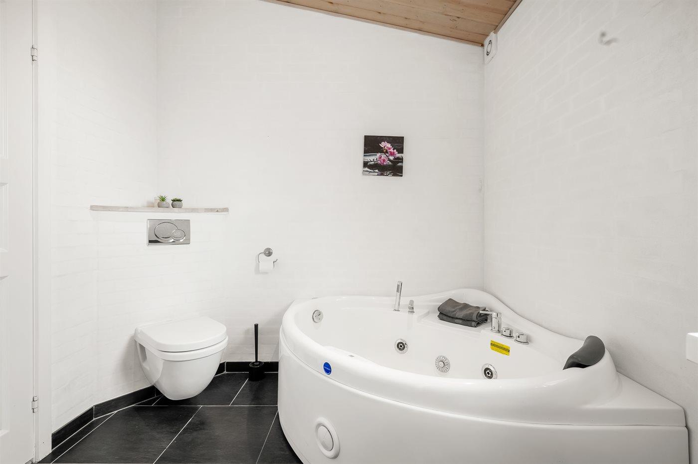 Im zentral gelegenen Küchen-/Essbereich findest du alle gängigen Haushaltsgeräte. Es gibt außerdem zwei Badezimmer – eines davon mit Whirlpool und Zugang zur hauseigenen Sauna. Alle Schlafzimmer sind sehr geräumig und mit guten Betten ausgestattet. Im Wohnzimmer findest du einen großen Flachbildfernseher, auf dem du kostenlos Filme streamen und Musik aus aller Welt hören kannst.