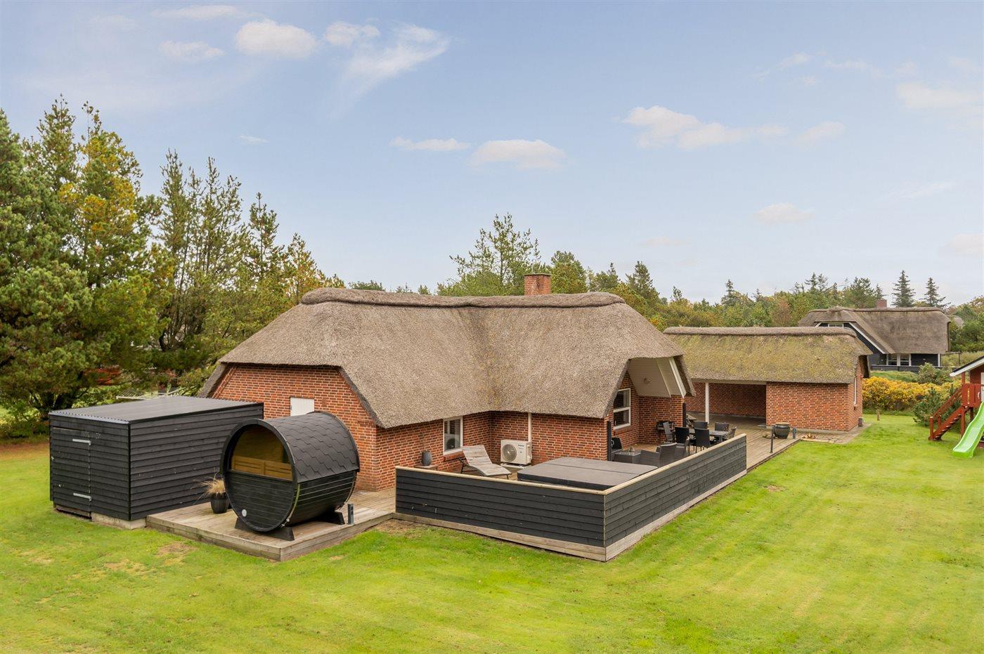 Charmantes Ferienhaus in Blåvand mit Sauna, zwei Whirlpools und großem Naturgrundstück für erholsame Urlaubstage.