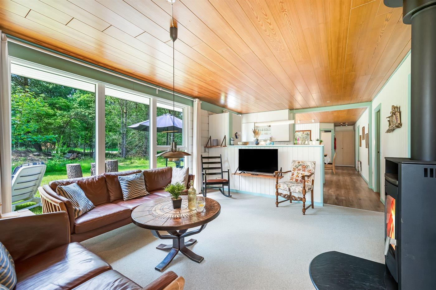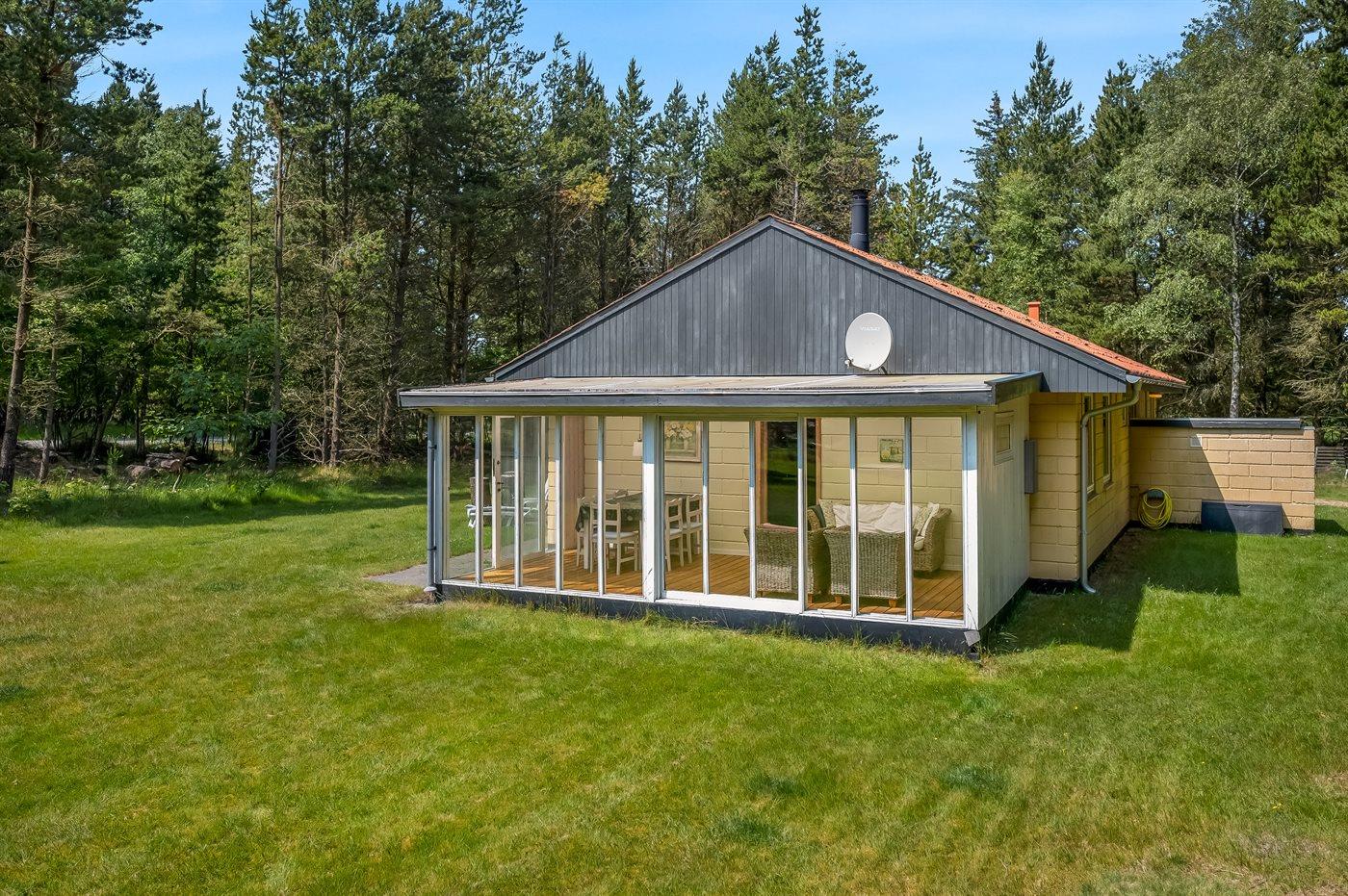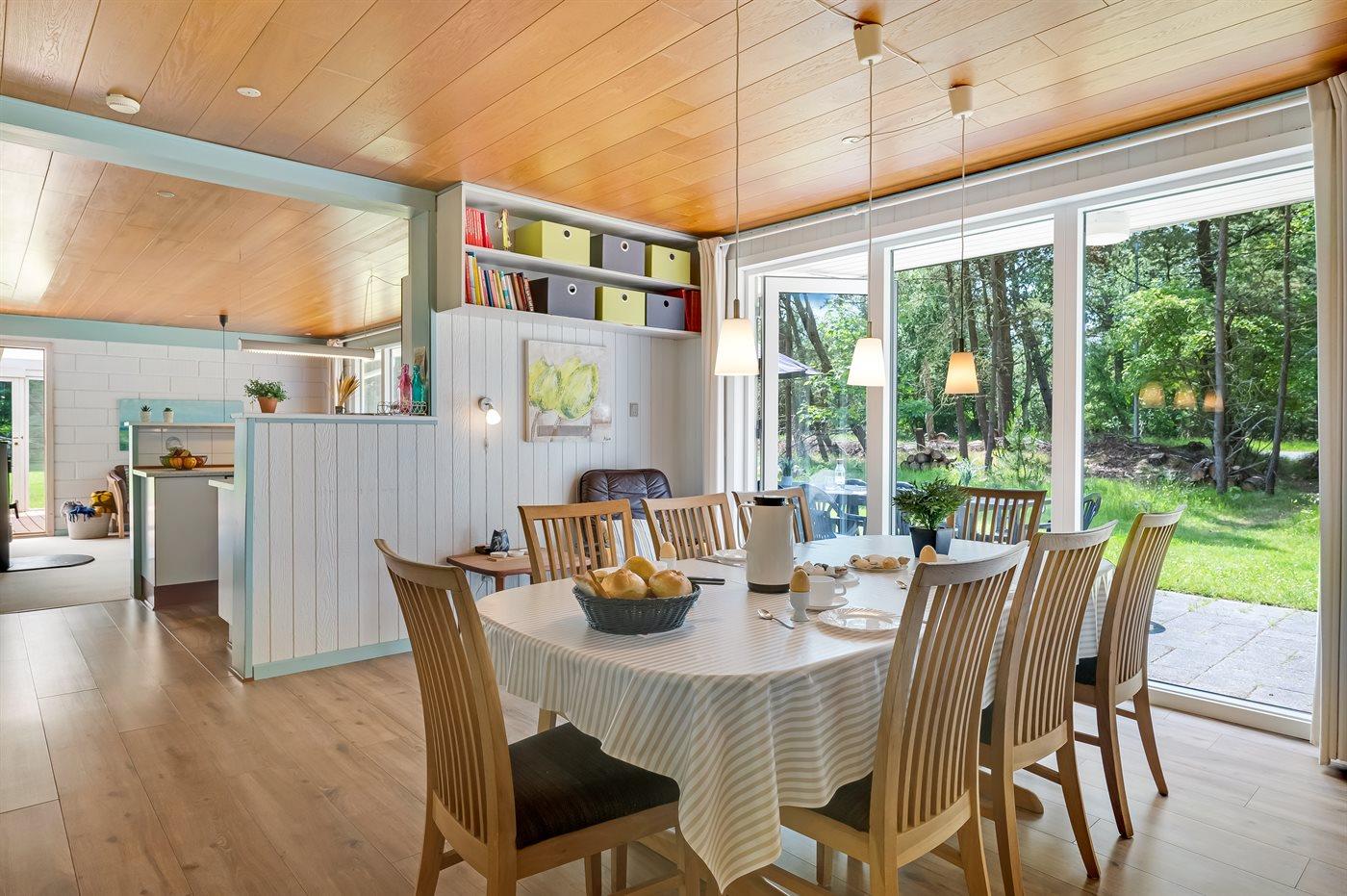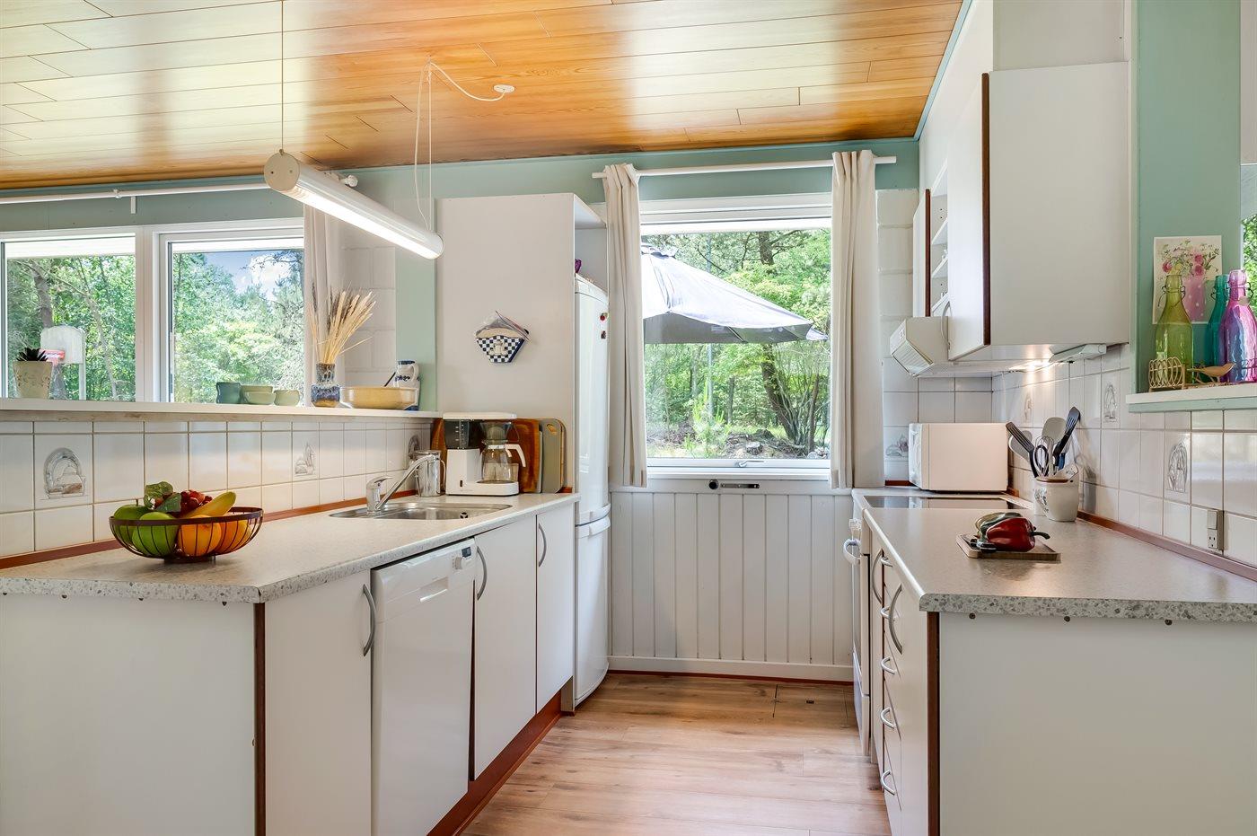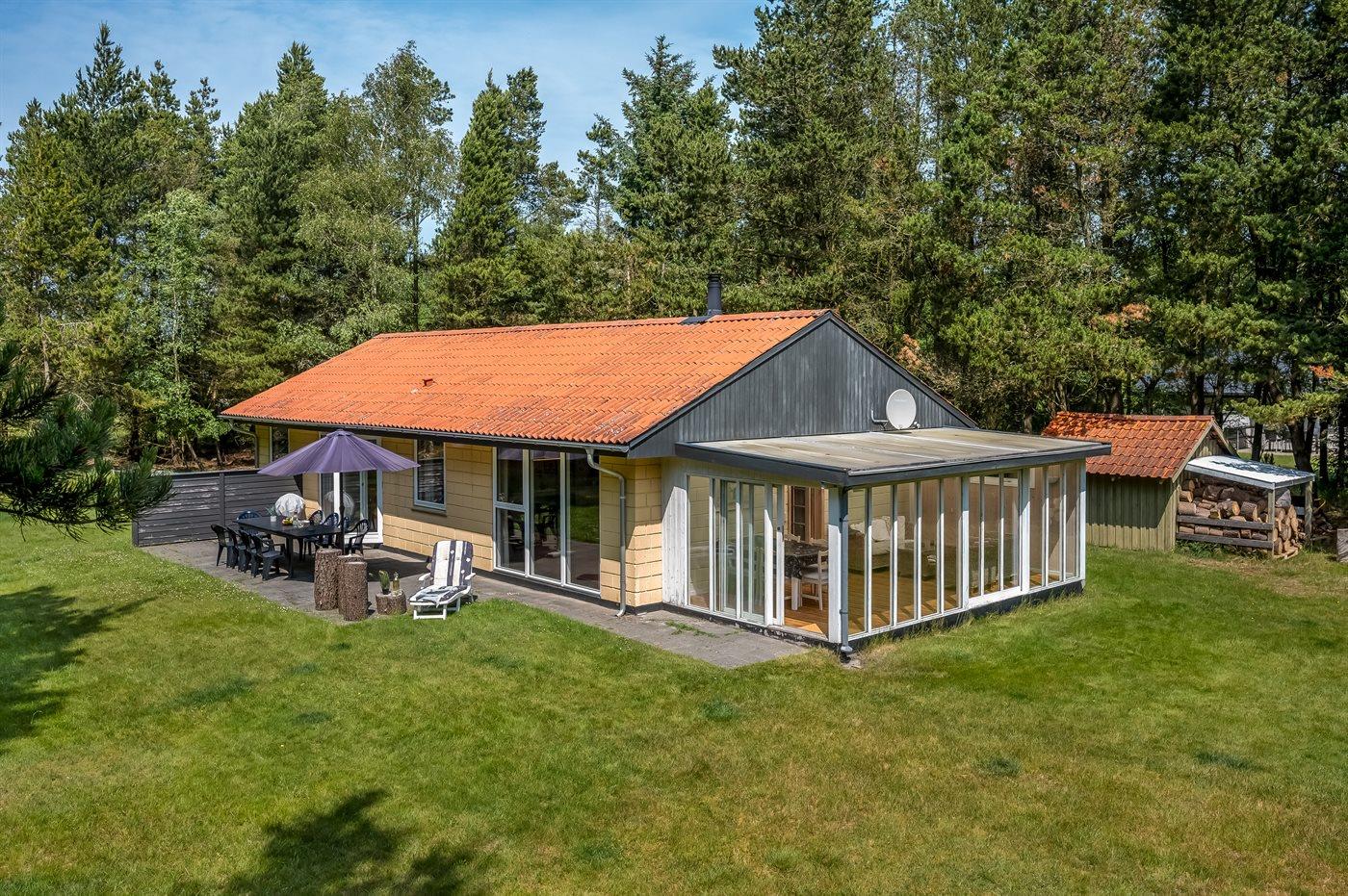 Das Ferienhaus liegt in einer naturschönen und ruhigen Gegend auf einem großen Grundstück, das von einer Rasenfläche umgeben ist – ideal für Aktivitäten im Freien. Es gibt Fußballtore, einen Basketballkorb, Schaukeln und einen Sandkasten.