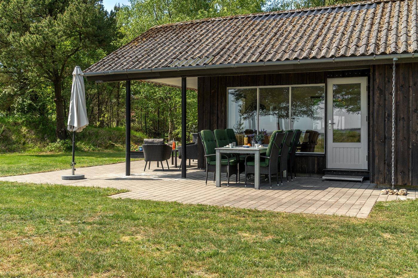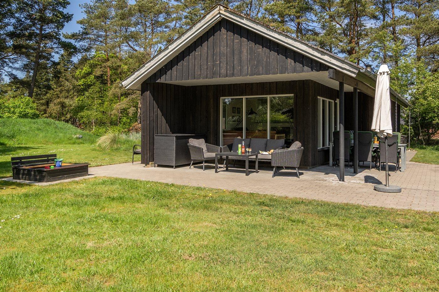 Die Ferienunterkunft liegt auf einem 2750 m² großen Naturgrundstück. Die Entfernung zum Meer beträgt 3500 m. Die Entfernung zum Fjord beträgt 500 m. Die nächste Einkaufsmöglichkeit liegt 700 m entfernt. In einem Abstand von 1200 m gibt es einen Golfplatz. Es steht ein 60 m² Terrassenareal zur Verfügung. Außerdem gibt es 15 m² überdachte Terrasse. Geräteraum. Schaukel. Sandkasten. Fußballtor.Lagerfeuerstelle. Es steht ein Grill zur Verfügung. Parkplatz auf dem Grundstück.