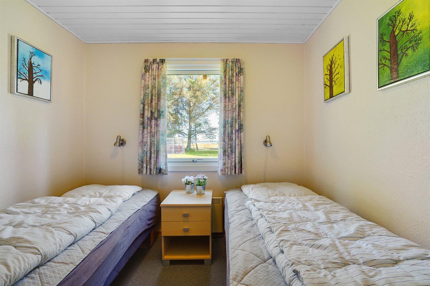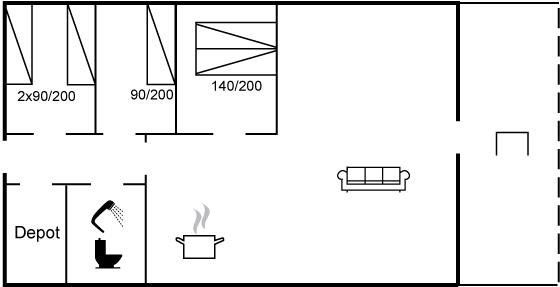Die Schlafplätze verteilen sich auf 3 Schlafräume. 2 Schlafplätze in einem Doppelbett. 3 Schlafplätze in Einzelbetten. Ferner steht ein Kinderbett zur Verfügung.