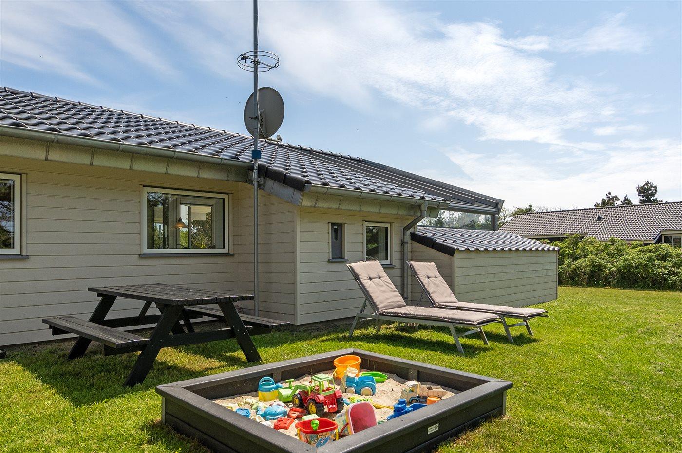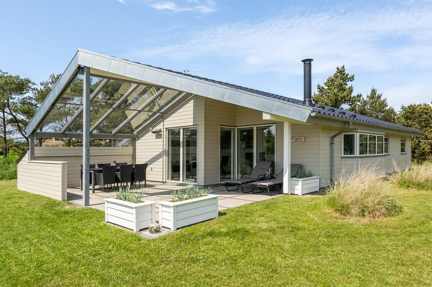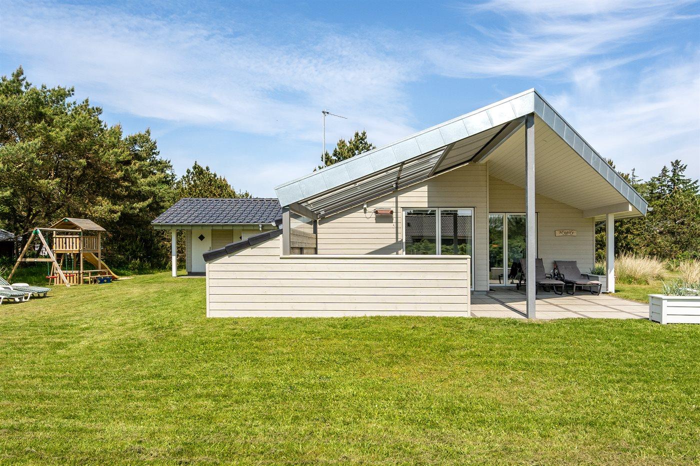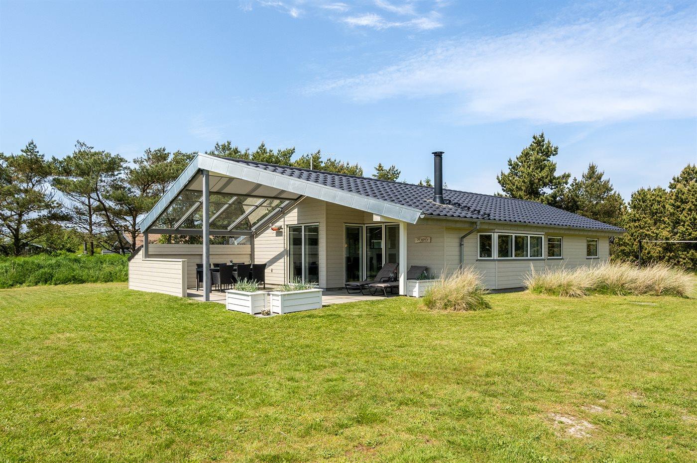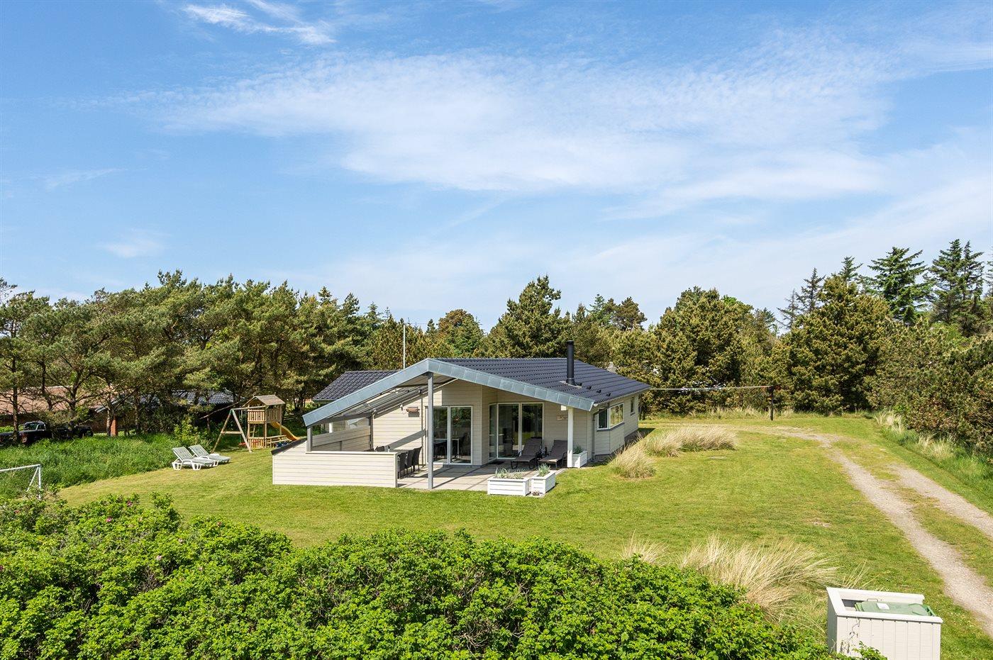 Nur 600 m vom Strand entfernt liegt dieses schöne und sehr gepflegte Ferienhaus mit einer Wohnfläche von 114 m2 und Platz für 6 Personen. Das Haus, das 2021 letztens modernisiert wurde, liegt auf einem schönen, großen Grundstück. Auf dem Grundstück gibt es eine Spielecke mit Spielgerüst, Schaukel und Sandkasten sowie eine 5 m2 große, überdachte Terrasse. Außerdem gibt es eine schöne, teilweise überdachte und vor dem Wind geschützte Terrasse (29 m2) mit Markise, Oberlicht und Terrassenheizer sowie gute Gartenmöbel und Weber-Grill. Im herrlichen und sehr hellen Wohnzimmer mit gemütlichem Alkoven finden Sie Kaminofen, Radio mit CD-Spieler sowie TV mit digitalem Satellitenanschluss. Ferner kostenlose, kabellose Internetverbindung zur Verfügung (Computer ist mitzubringen). Die Schlafplätze des Hauses verteilen sich auf 3 gute Schlafzimmer; 2 mit Doppelbett und 1 mit 2 Einzelbetten. Die neue, offene Küche ist u. a. mit Geschirrspüler, Mikrowelle, Umluftofen, Herd mit Ceran-Feld sowie Tiefkühlgerät ausgestattet. Geräumiges Badezimmer mit Fußbodenheizung, Dusche, 2-Pers.-Whirlpool sowie Zugang zur Sauna. Zusätzliches Badezimmer - ebenfalls mit Fußbodenheizung und Dusche. Zum Haus gehören auch Waschmaschine und Wäschetrockner. Es ist ein Typ 2 Ladestecker mit einer Ladeleistung von 11 kW für Elektroautos installiert.