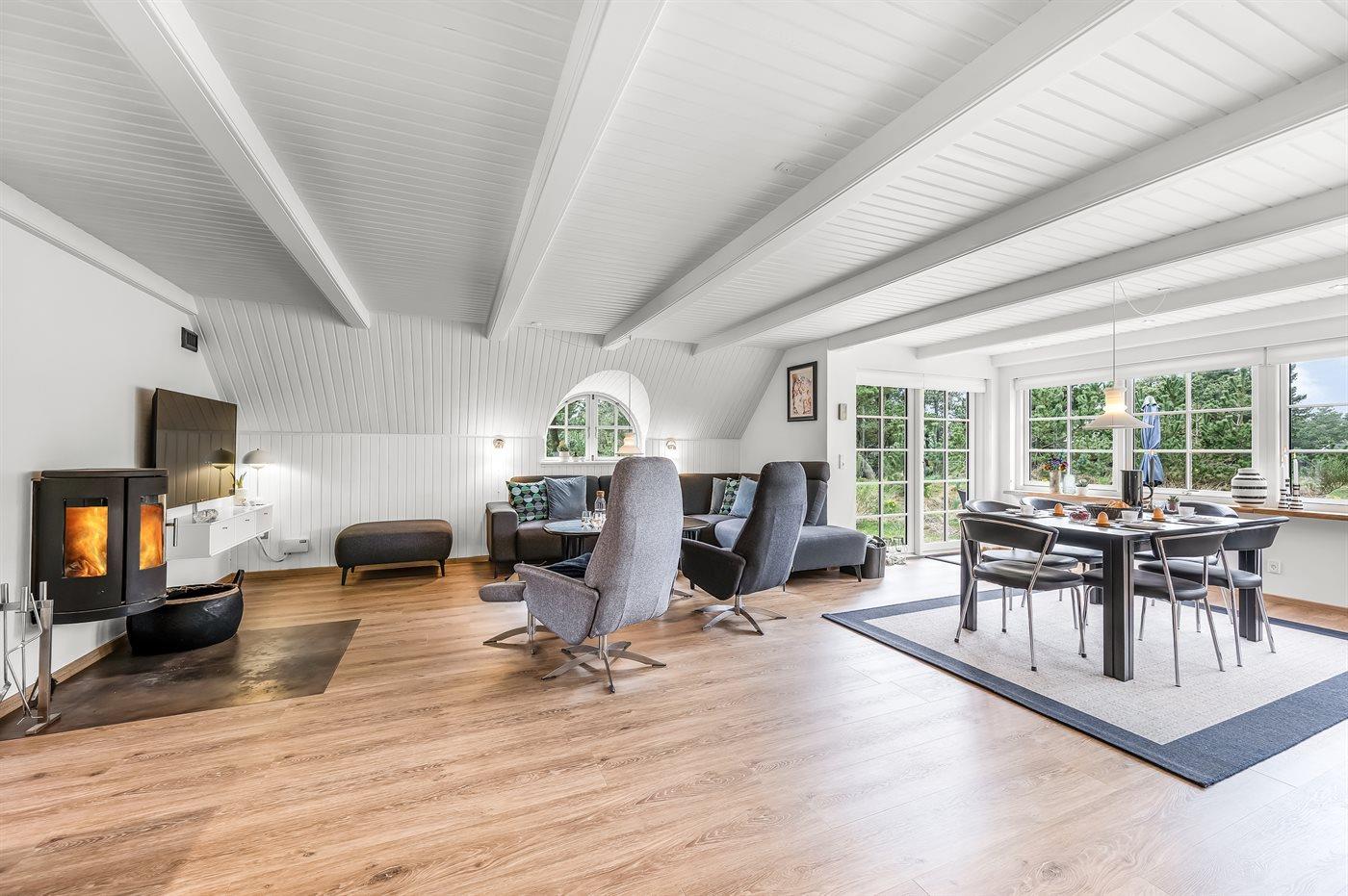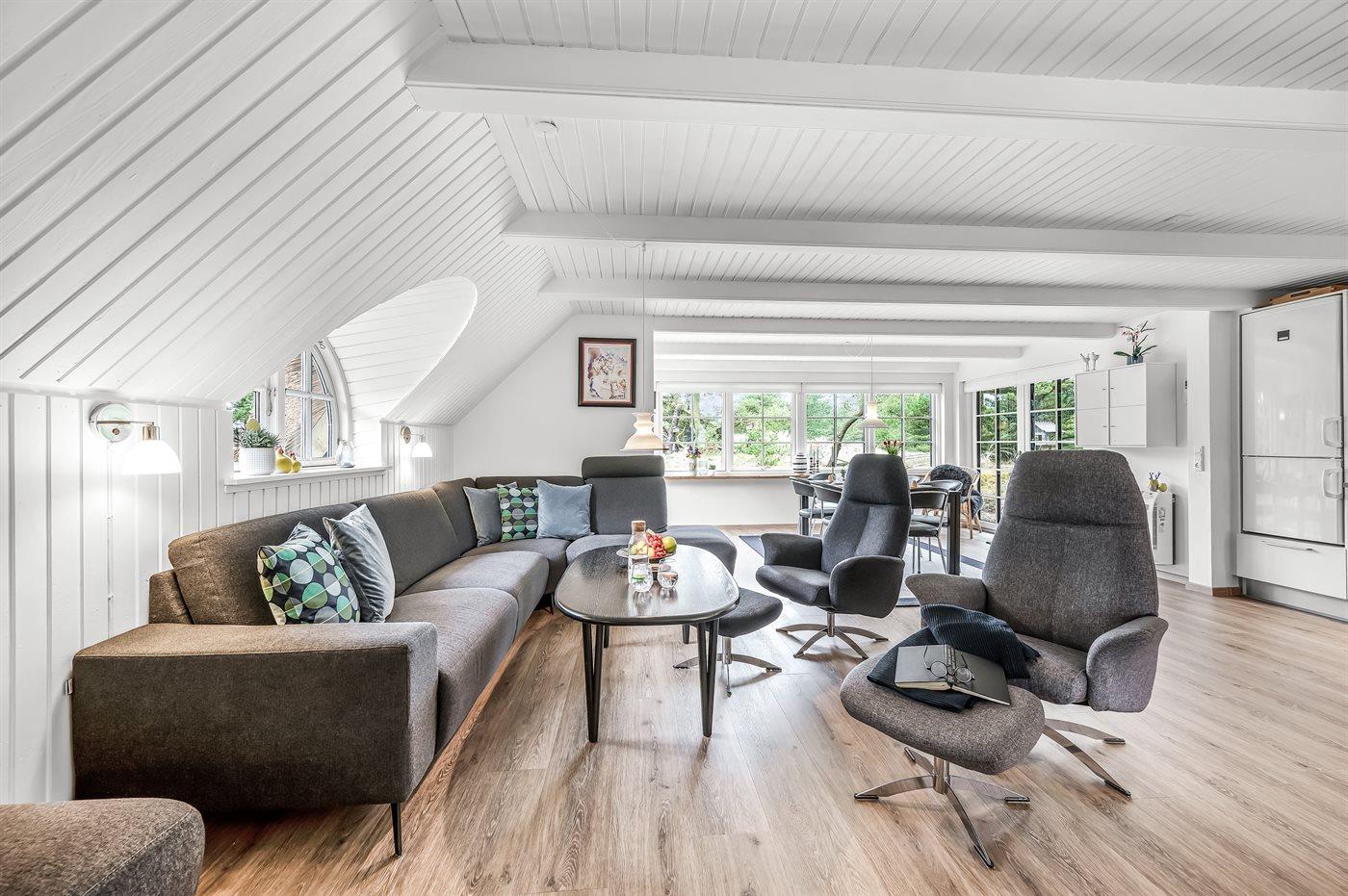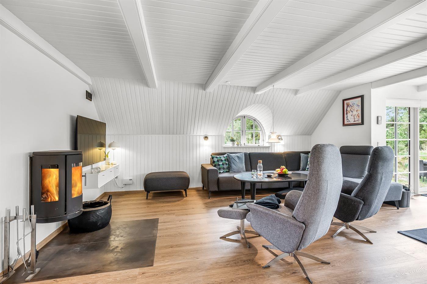 Schönes Badezimmer mit Fußbodenheizung, Duschnische, Waschmaschine und Wäschetrockner. Nette, helle Küche mit u. a. Geschirrspüler und Mikrowelle. Das gemütliche Wohnzimmer ist mit Kaminofen und TV ausgestattet. Ferner kostenlose, kabellose Internetverbindung vorhanden (Computer ist mitzubringen).