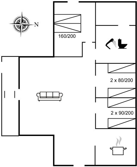 In der Ferienunterkunft gibt es einen Fernseher. DVD-Player. Radio. Stereoanlage. CD-Player. Mindestens 4 dänische Fernsehsender. Mindestens 4 deutsche Fernsehsender. Es steht kabellose Internetverbindung zur Verfügung.