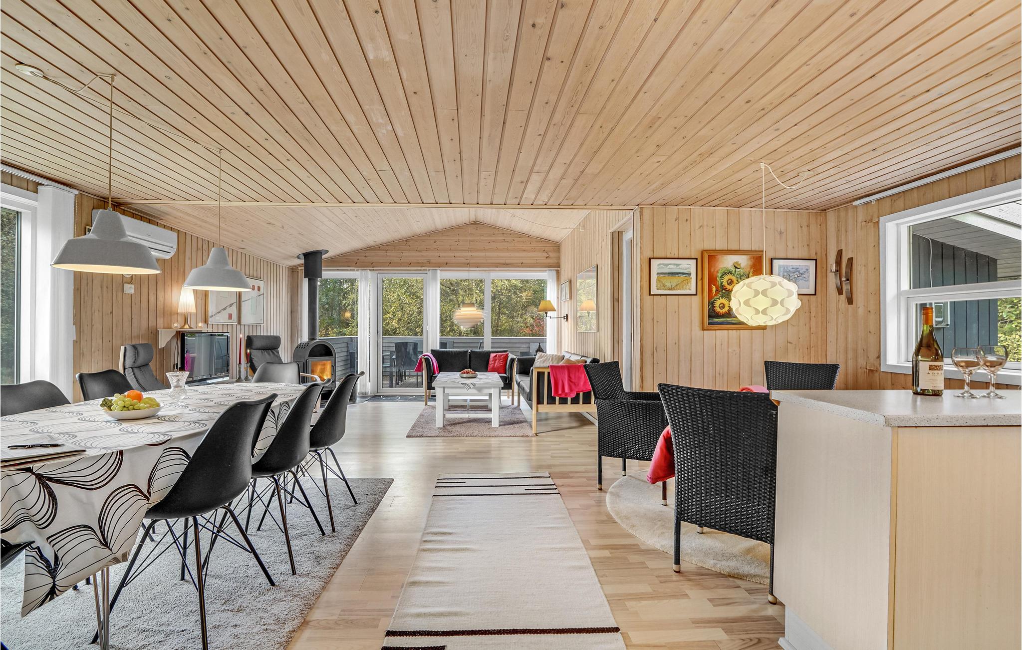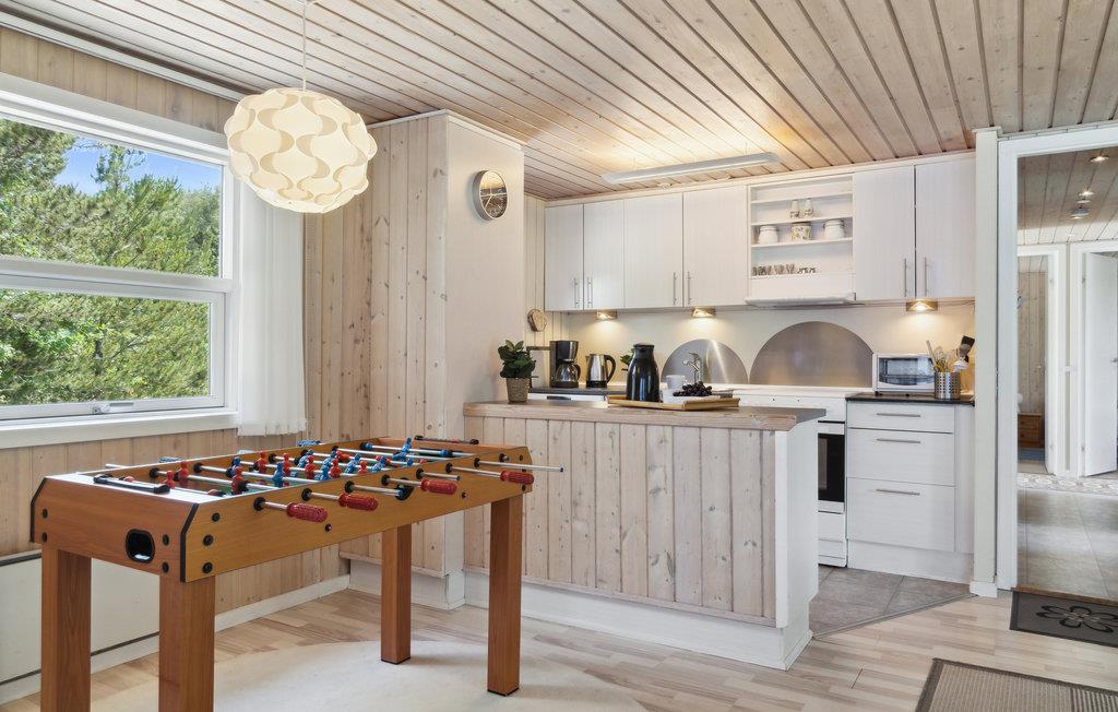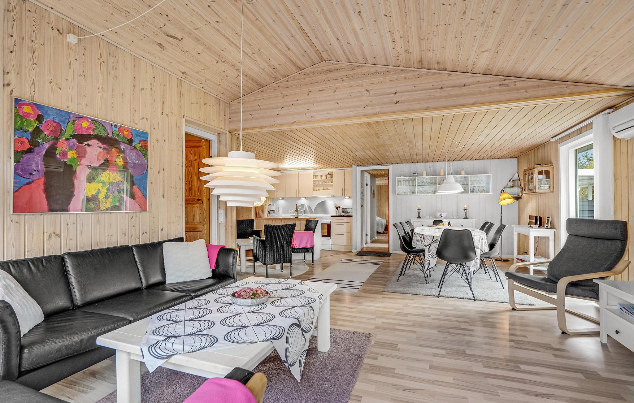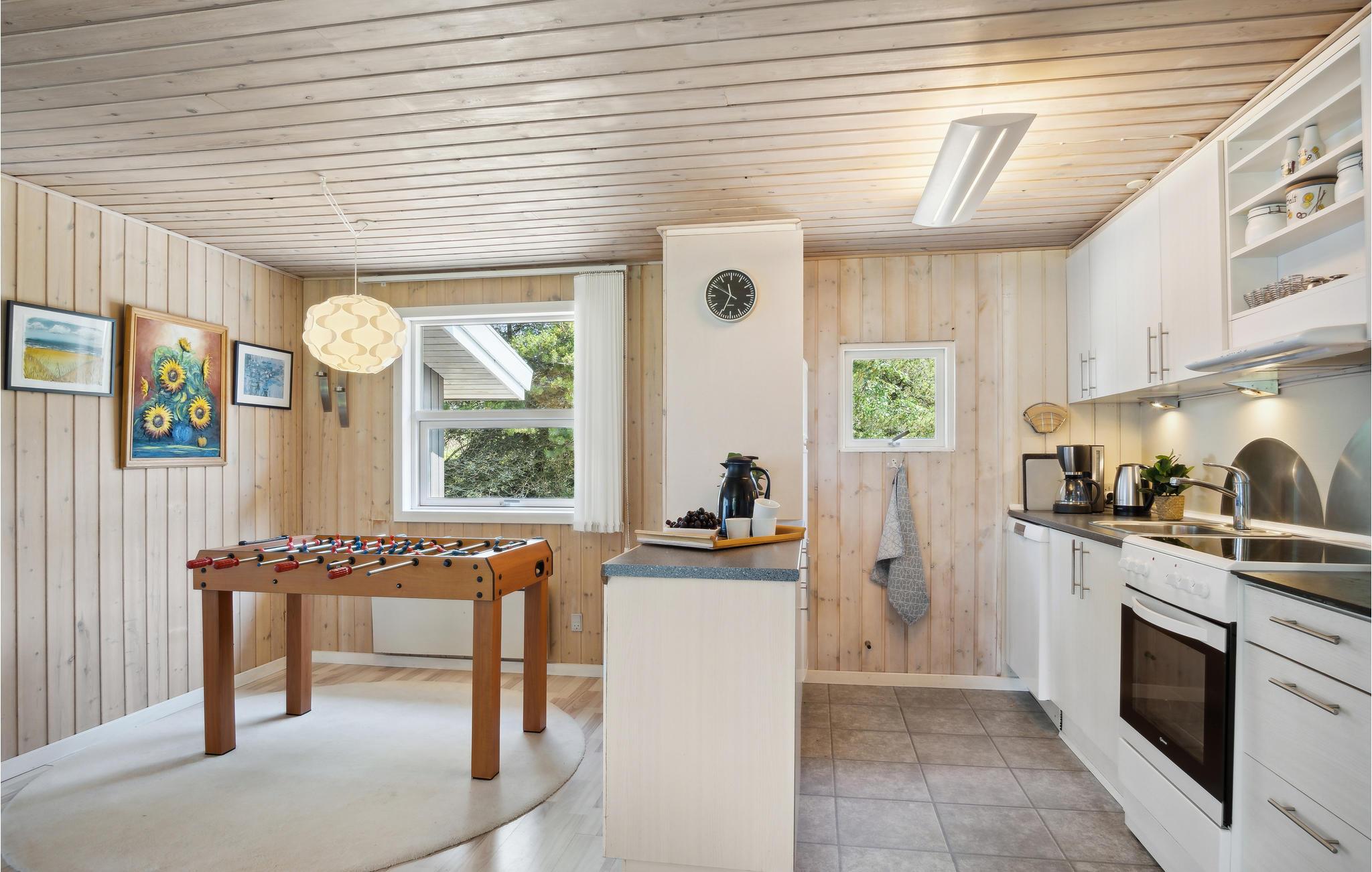 In einer ruhigen Seitenstraße ohne vorbei fahrenden Verkehr liegt dieses schöne Holzferienhaus. Es ist funktionell und harmonisch eingerichtet und verfügt über eine helle Küche, die zum Ess- und Wohnzimmer hin offen ist. Mit seinen vier Schlafzimmern und dem hohen Komfort ist das Haus sehr gut für zwei Familien geeignet. Die wohltuende Sauna erreichen Sie von der Terrasse aus. Im Freien befindet sich eine große Rasenfläche, auf der Sie sich körperlich entfalten können. Vom Haus ist es nicht weit nach Blåvand mit unzähligen Shoppingmöglichkeiten und guten Restaurants. In der Nähe befinden sich u.a. auch Tennisplätze und ein Badeland.