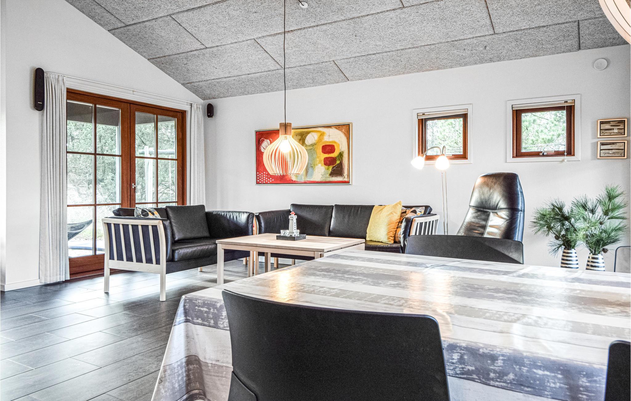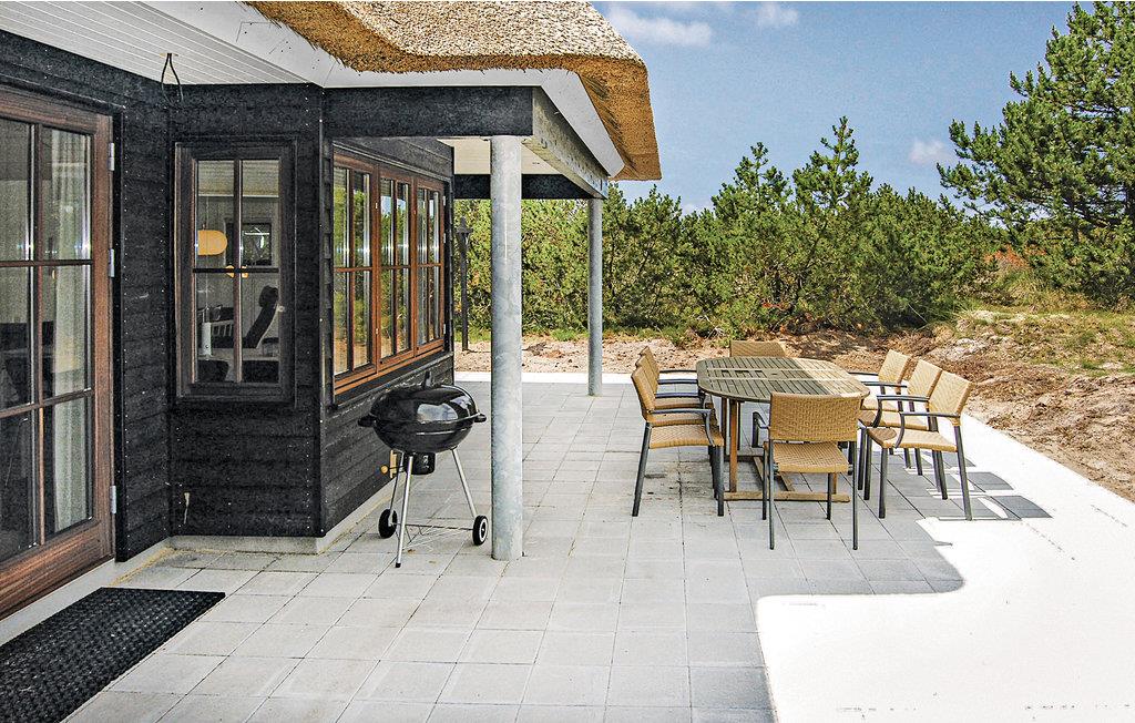 Dieses schöne, von Architekten entworfene Luxushaus grenzt an ein großes Naturschutzgebiet nur 1 km von Blåvand entfernt. Eine praktische und geschmackvolle Einrichtung mit vielen guten Details kennzeichnen dieses Luxushaus, das ebenfalls über einen Whirlpool für sechs Personen und eine Sauna verfügt. Als ergänzende Wärmequelle können Sie den Kaminofen benutzen, der an kalten Tagen für eine gemütliche Atmosphäre sorgt. In der offenen Küche/Mehrzweckraum befindet sich ein gemütlicher Erker, wo Sie sich in einem der beiden Sessel entspannen können. Alle Fenster sind aus Mahagoni. Vom Wohnraum haben Sie Zugang zu den schönen Terrassen. Das Haus verfügt über vier helle Schlafräume, alle mit guten Matratzen und Schrankplatz. Ein besonderes Detail ist der offene Schlafboden, der für Kinder ideal ist. Von den Terrassen haben Sie eine prachtvolle Aussicht auf das große, naturschöne Gebiet. Das Haus liegt in der Nähe von vielen Aktivitätsangeboten, wie u.a. einer Schwimmhalle, einem Golfplatz und Tennisplätzen.