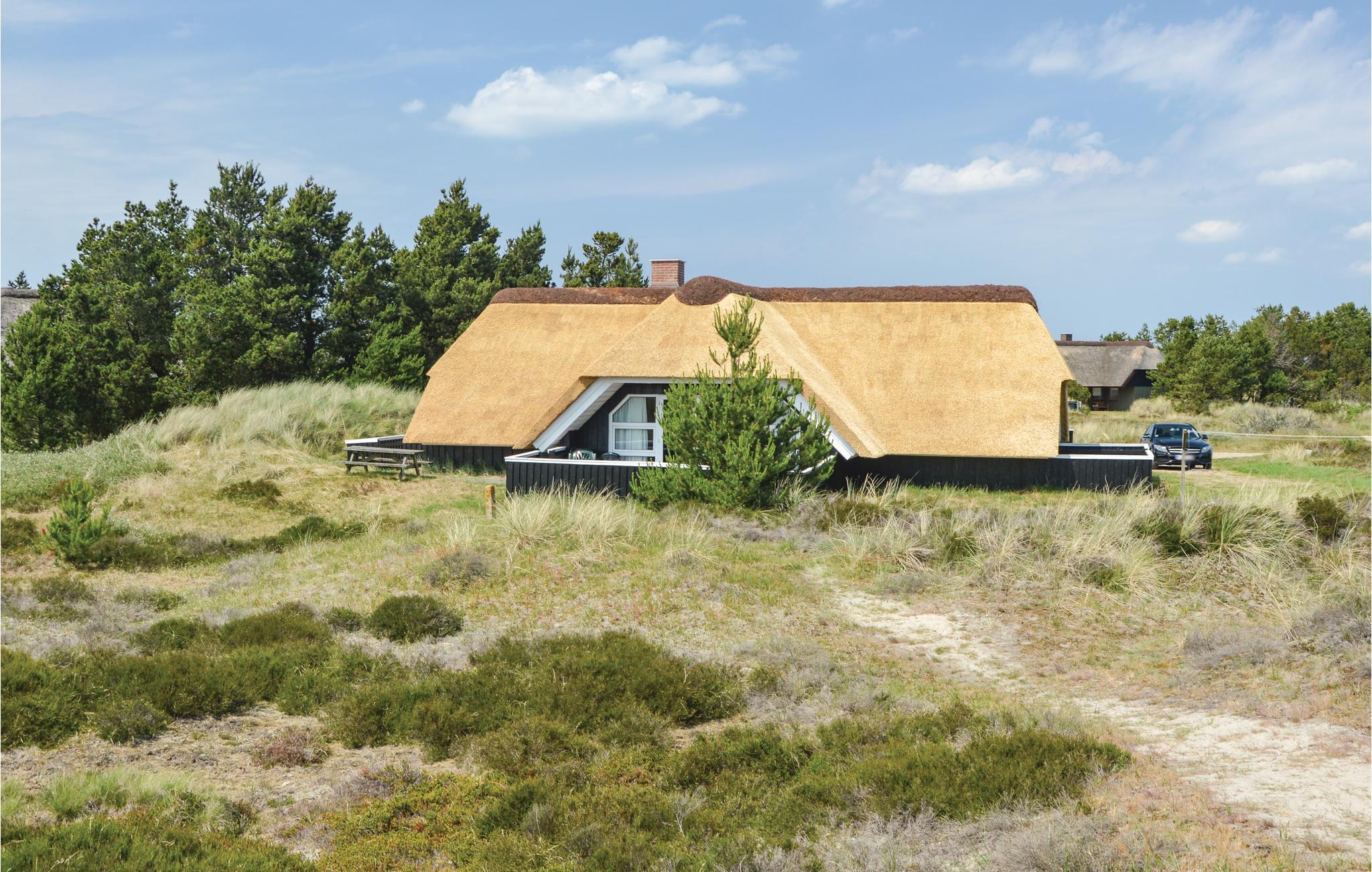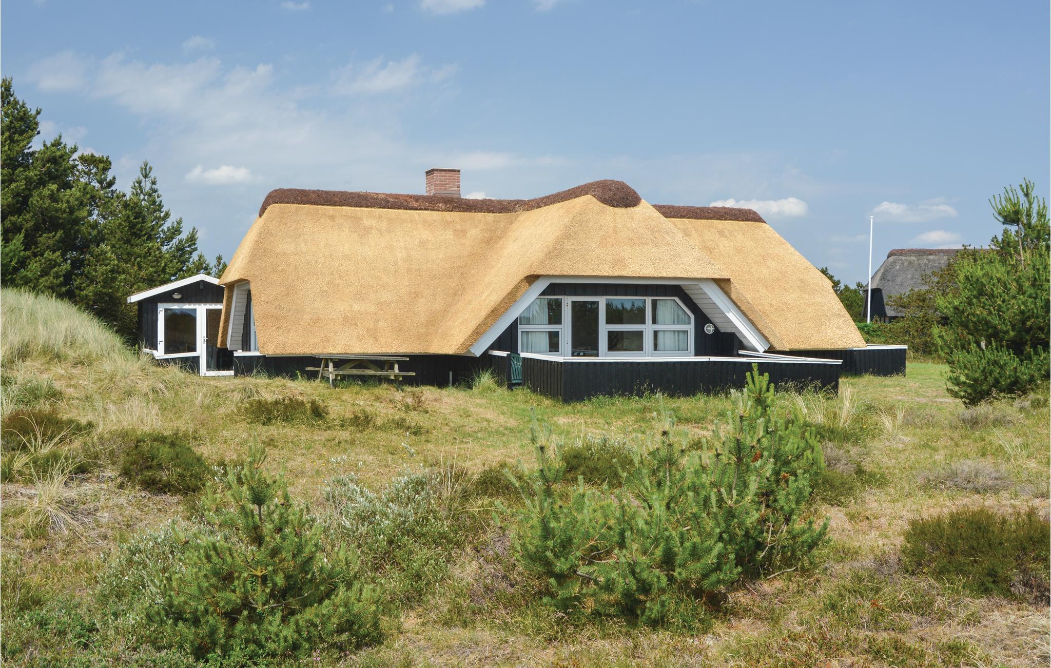 Im nördlichen Teil von Blåvand, auf einem grossen Naturgrund mit viel Platz zum Spielen, steht dieses schicke, reetgedeckte Ferienhaus aus Holz.
