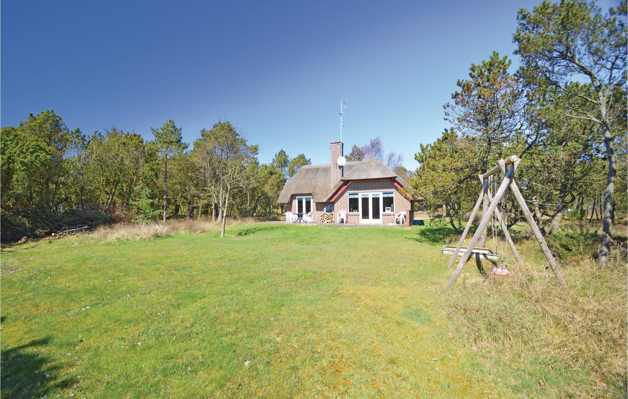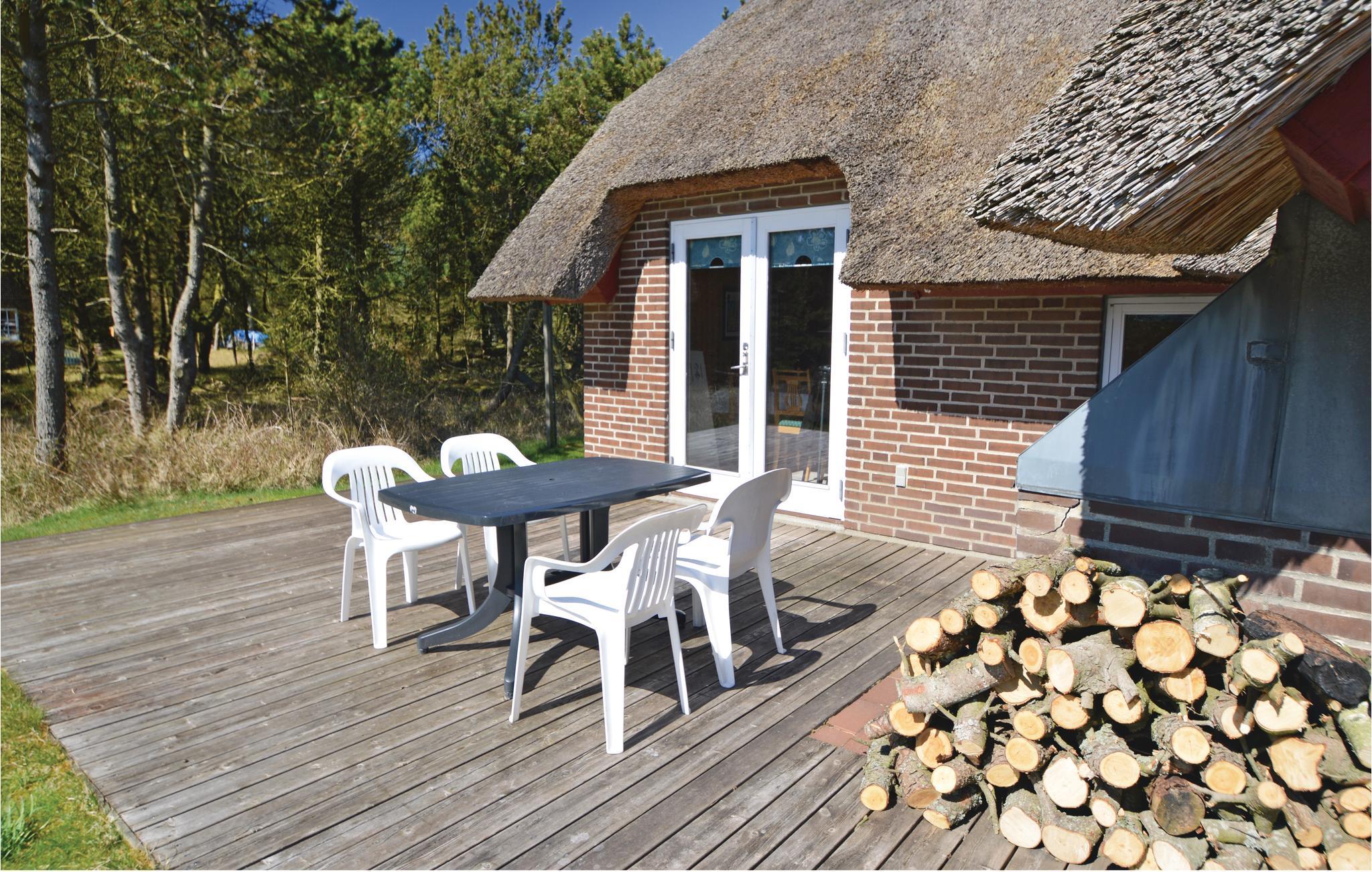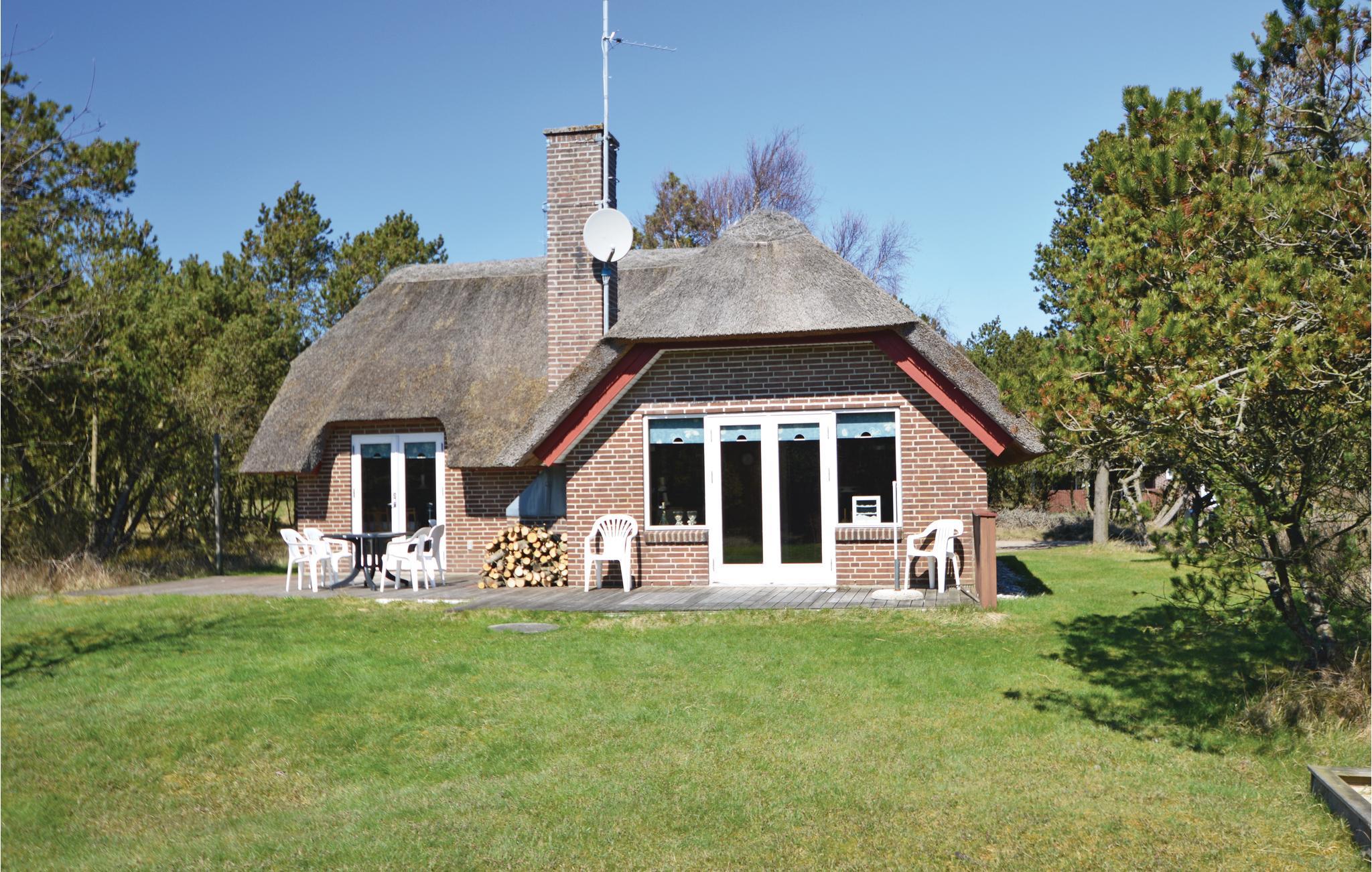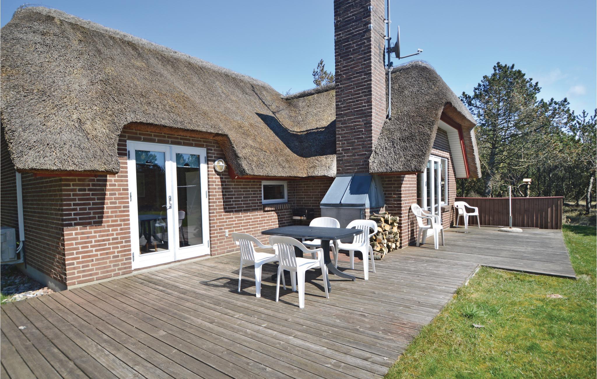 Dieses Reetdachhaus liegt auf einem ruhigen Nebenweg unweit von Dünen und Meer. Drinnen verleihen Holzwände und -Decken dem Haus viel Charme. Durch die mitten im Wohn-Esszimmer liegende Küche können Sie beim Kochen die Aktivitäten der anderen verfolgen. Das Haus verfügt über drei gute Schlafräume sowie ein helles Badezimmer mit zwei Waschbecken. Vom Wohn-Esszimmer gelangen Sie auf die große und schöne Terrasse mit Außenkamin.
