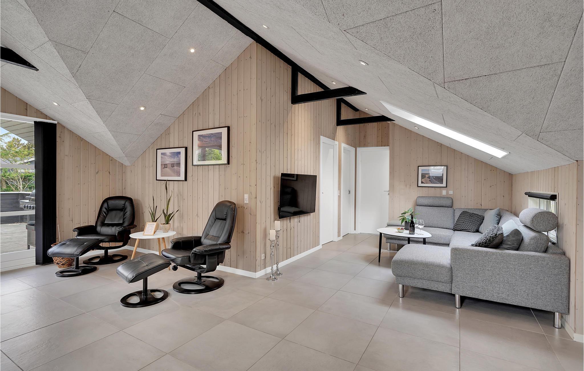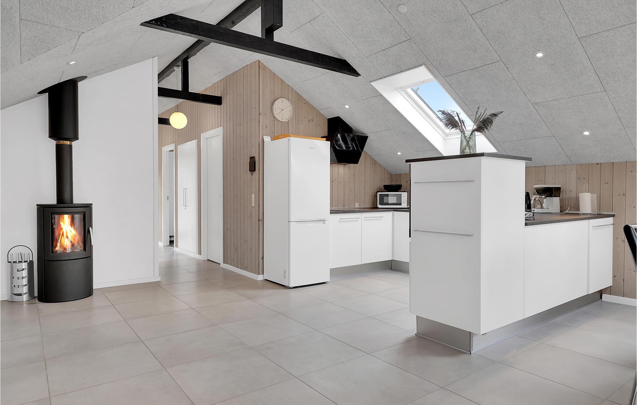 Dieses gemütliche Ferienhaus liegt auf einem abgeschirmten Naturgrundstück in ruhiger Lage. Offene Verbindung von Küche und Wohnzimmer durch eine Halbmauer. Die Dachschrägen und die Kaminofenwärme tragen zum gemütlichen und guten Ambiente bei. Darüber hinaus schafft die große Fensterfront im Esszimmer schöne Lichteinfälle. Das gesamte Haus ist mit Holz- und Klinkerböden eingerichtet. Zum Selbstverwöhnen hat es eine Sauna und einen tollen Whirlpool für zwei Personen. Mit vier guten Schlafräumen und zwei Bädern eignet es sich gut für zwei Familien. Draußen sind mehrere Terrassen mit guten Windschutzmöglichkeiten. Wer an Regentagen im Trockenen sitzen möchte, benutzt die überdachte Terrasse. Der Rasen bietet gute Verhältnisse für Aktivitäten. Auf den Naturwegen ist es nicht weit zur Stadt Blåvand, wo eine Vielzahl an Delikatessen für jeden Geschmack auf Sie wartet.