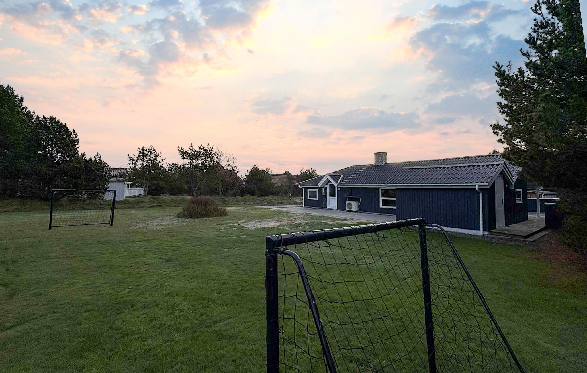 Großes, geräumiges Ferienhaus auf einem offenen Naturgrundstück mit viel Platz für Aktivitäten außerhalb des Hauses.
