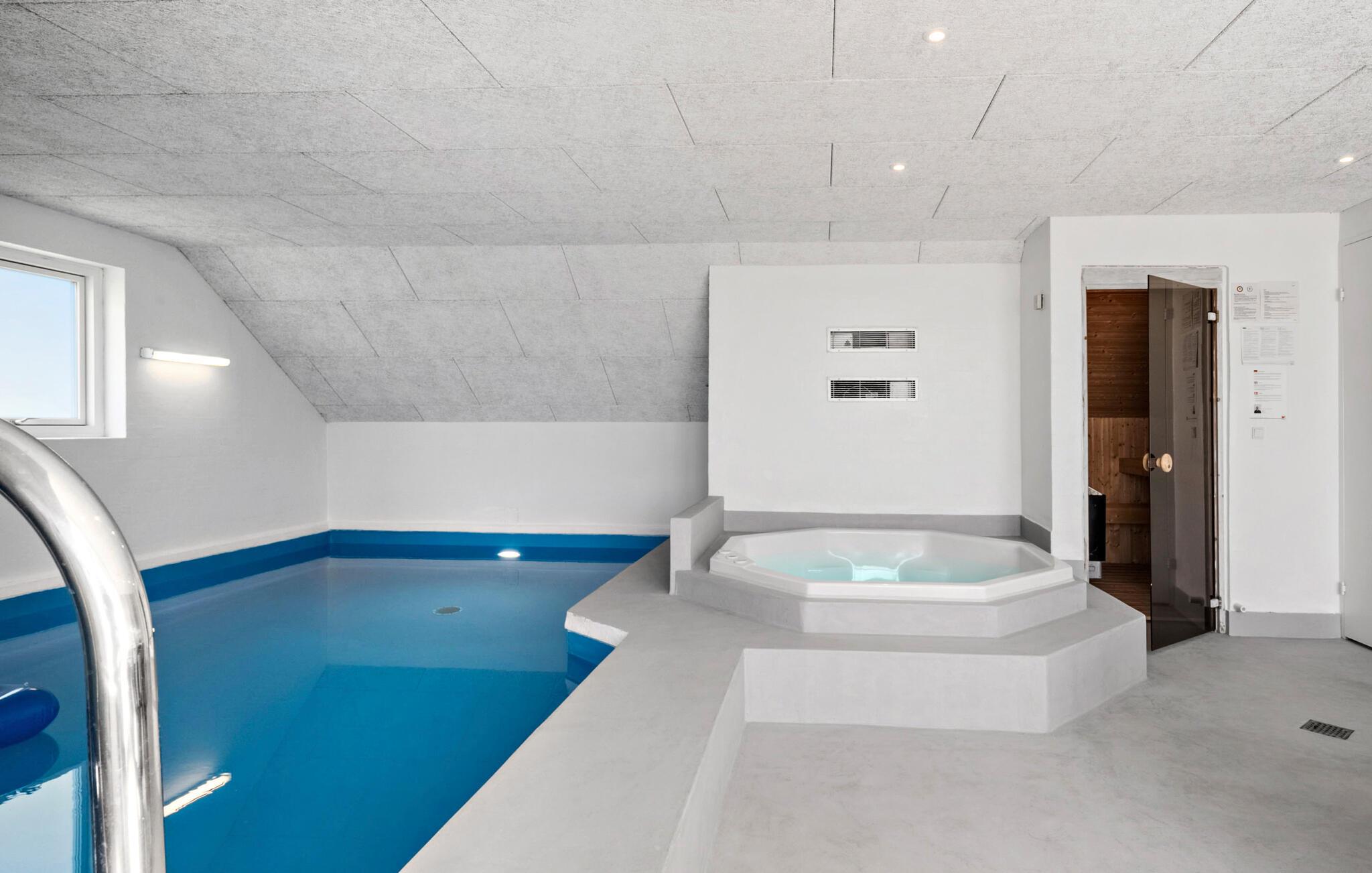 Luxuriöses Ferienhaus in Blåvand mit Innenpool, Whirlpool und großzügiger Terrasse für erholsame Tage.