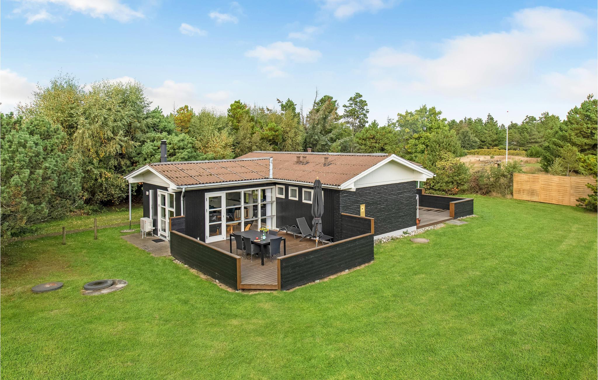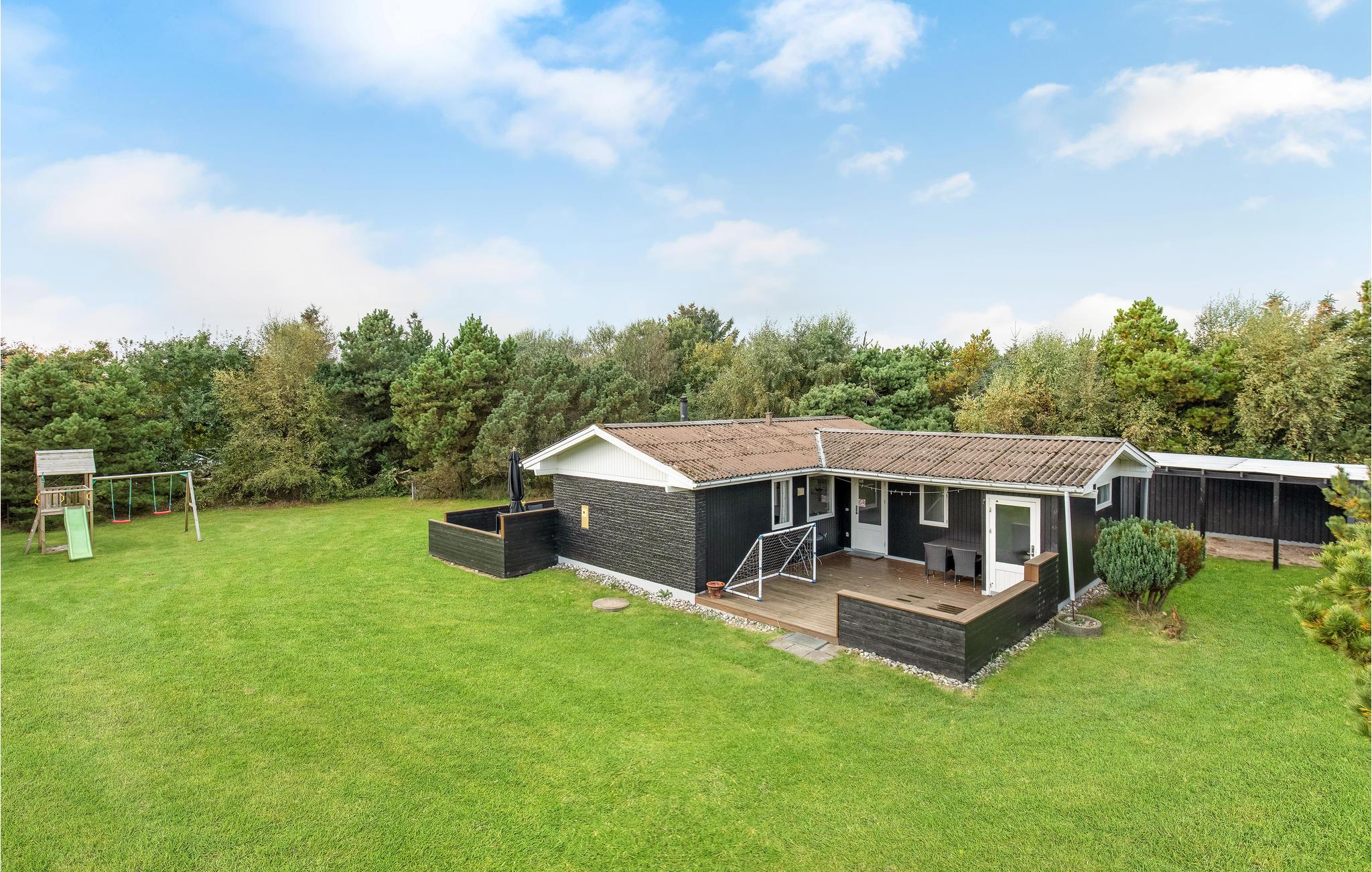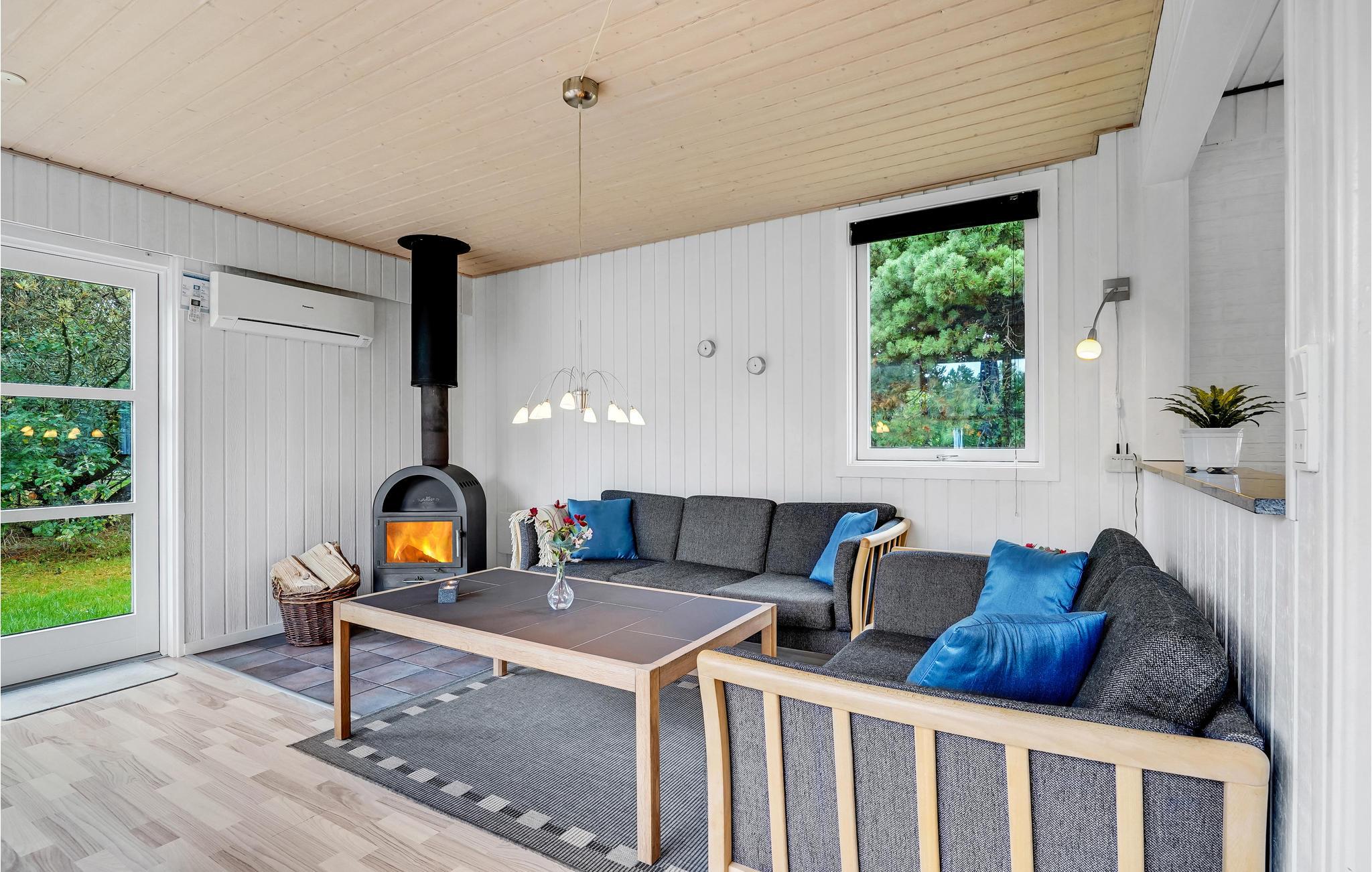 Die Holzwände und -decken schaffen eine gemütliche Atmosphäre. Zur reichen Ausstattung gehört ein Whirlpool für fünf Personen und eine Sauna, die zu verwöhnenden Momenten einladen. Im hellen Wohnzimmer können Sie sich im Sessel neben dem Kaminofen in ein gutes Buch vertiefen oder einen Film gucken. Zudem haben Sie Zugang zu einer großzügigen Terrasse auf einem sichtgeschützten Grundstück, mit Grill und Sonnenliegen. Somit haben Sie ideale Verhältnisse zum Sonnenbaden und eine überdachte Terrasse, wo Sie die frische Luft zu den ständig wechselnden Wolkenformationen genießen können. Außerdem gibt es auch ein Fußballtor, Schaukel und Sandkasten, sowie einen Spielturm. Hier werden alle Angehörigen glücklich werden und die Zeit in Dänemark genießen.