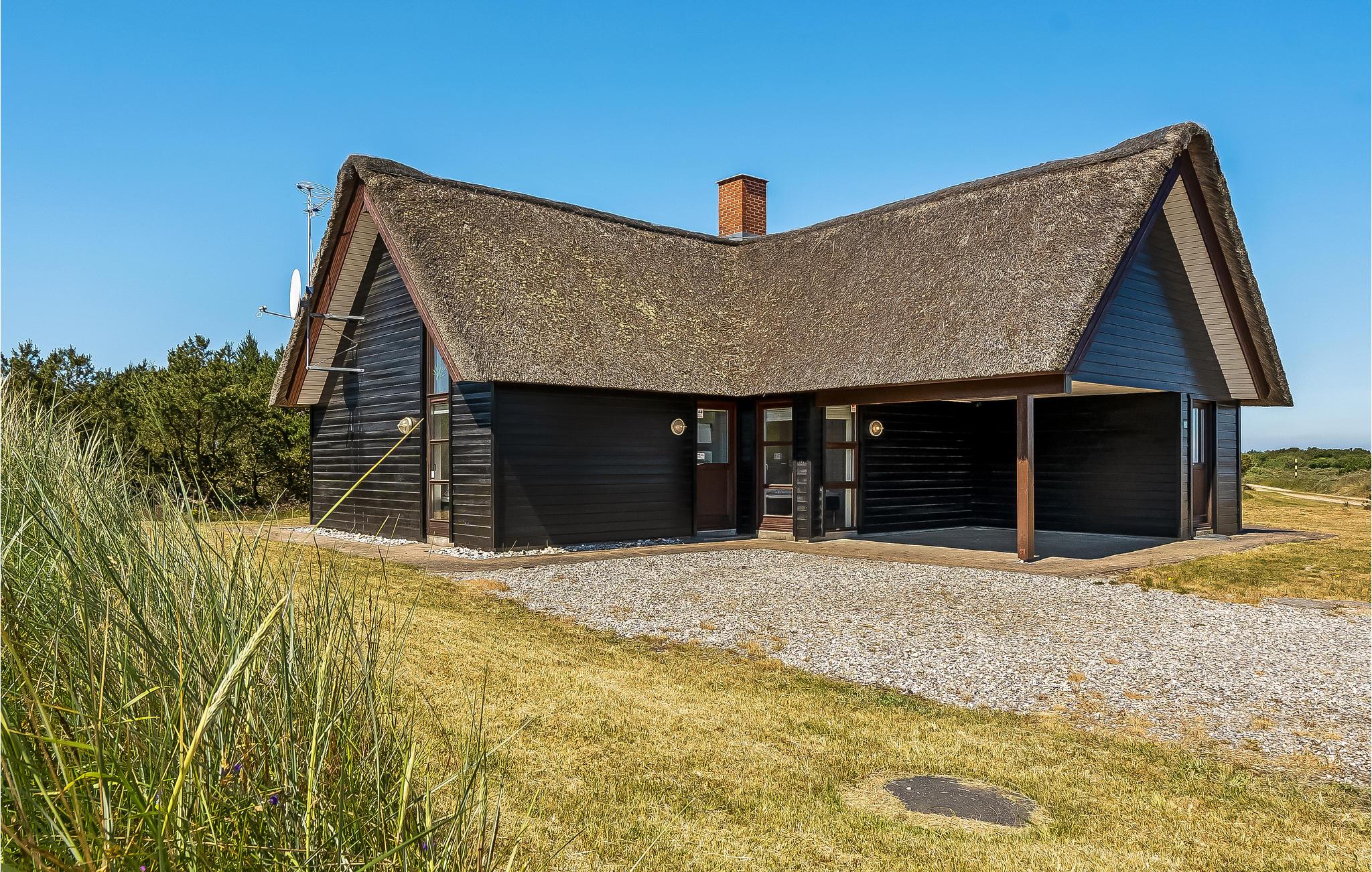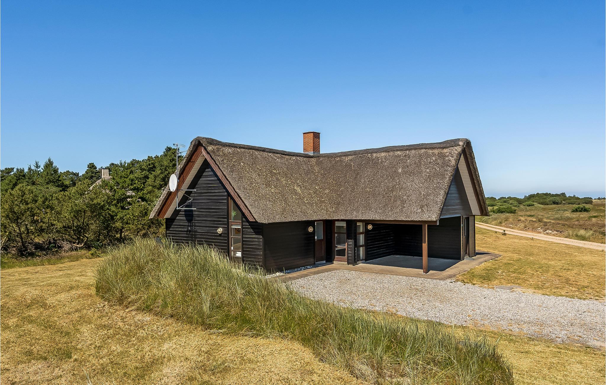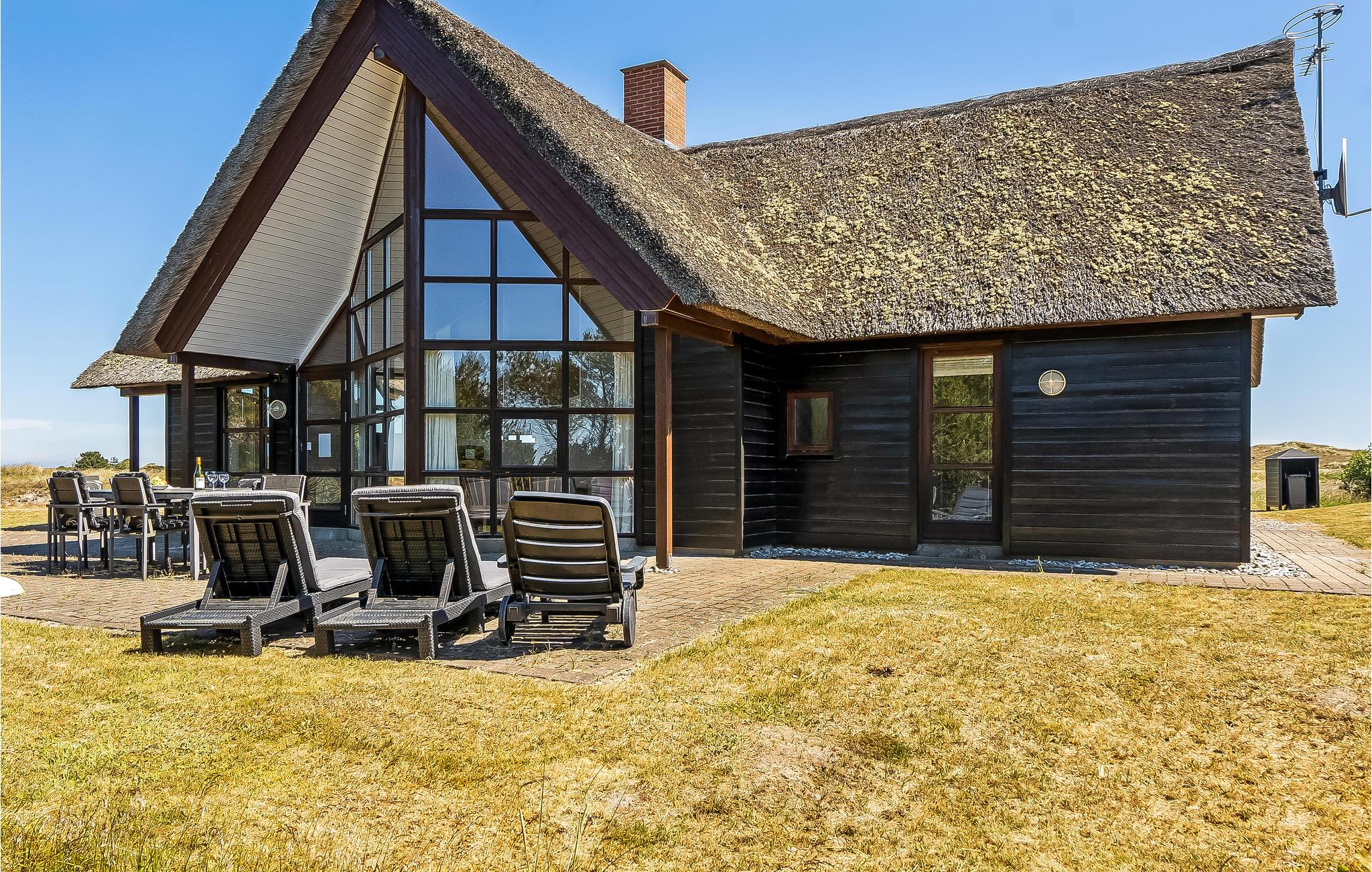 Komfortables Reetdachhaus mit Whirlpool, Kaminofen und Terrasse in Blåvand, ideal für entspannte Tage in der Natur.