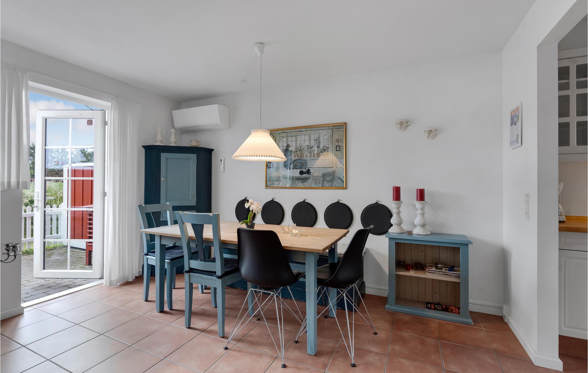 Sehr gemütlich eingerichtetes Feriendomizil, wo im Erdgeschoss eine gut eingerichtete Wohnküche die Gäste erwartet. Terrassen liegen auf beiden Seiten des Hauses. Im ersten Stock sind zwei große Schlafzimmer zu finden, mit Zugang zum Balkon. Lassen Sie sich hier nieder und blicken Sie auf das Geschehen in Blåvand. Sie wohnen so zentral, dass alles fußläufig erreichbar ist. Sie können morgens frische Brötchen vom lokalen Bäcker holen oder auch einen größeren Einkauf von Lebensmitteln bewerkstelligen. Es gibt auch Bars und Geschäfte mit Schuhen und Kleidern. Gleich um die Ecke ist auch einer der schönsten Sandstrände Dänemarks gelegen, wo die ganze Familie sich an schönen Sommertagen gerne aufhalten wird. Spaziergänge entlang der faszinierenden Nordsee sind natürlich ganzjährig ein Vergnügen.