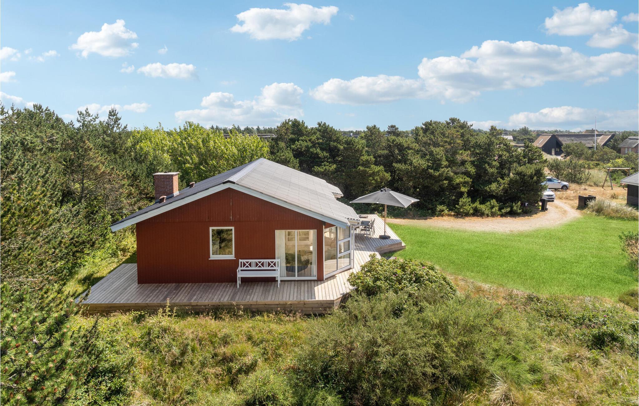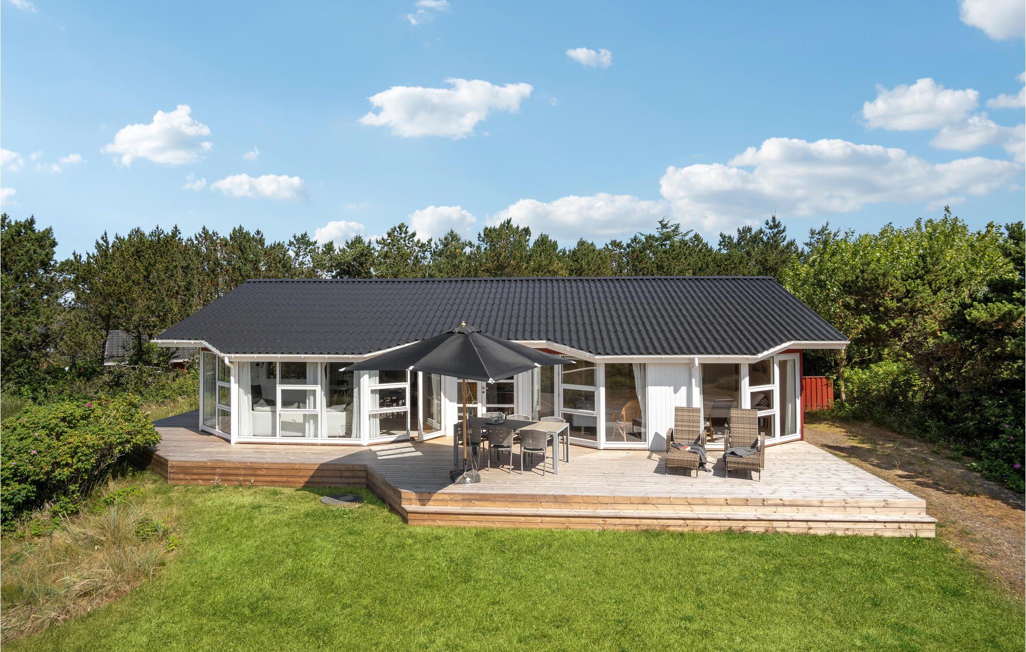 Willkommen in diesem gemütlichen Holzhaus, das Ihnen einen erholsamen Urlaub inmitten einer grünen Umgebung an der Westküste Jütlands bietet. Das Haus ist geräumig und hell eingerichtet, mit großen Glasfronten, die das natürliche Licht hereinlassen und den großzügigen Gemeinschaftsbereich hell erscheinen lassen. Hier können Sie sich auf gesellige Mahlzeiten freuen und entspannte Stunden auf den bequemen Sofas verbringen, sei es bei einem spannenden Brettspiel oder einem guten Film.