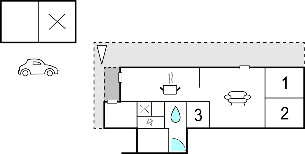 - WC mit warmem und kaltem Wasser, Dusche