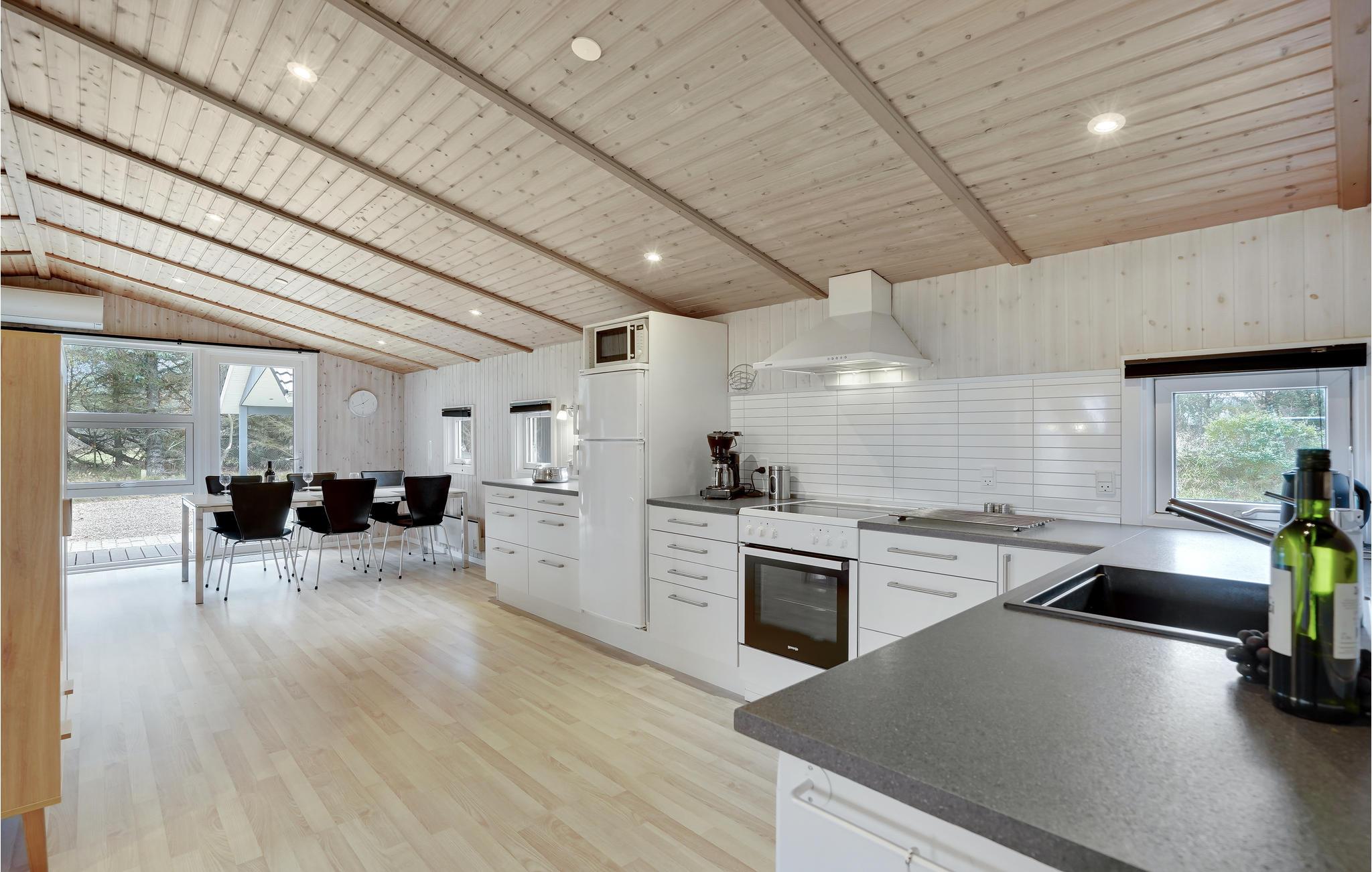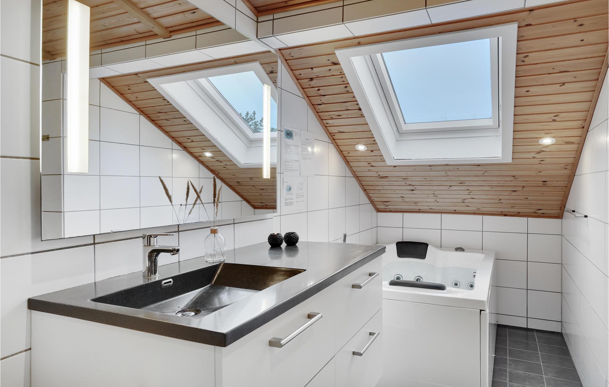 Ferienhaus mit hohem Gemütlichkeitsfaktor, ein paar Schritte von Blåvands Zentrum. Das Grundstück ist teilweise ungestört. Im Bad warten auf Sie Whirlpool und Sauna. Eine der Terrassen ist überdacht und fast vollkommen ungestört. Speisezimmer und Küche hängen sehr gut zusammen und bietet der ganzen Familie viel Raum und Wohlgefühl. Einige kleinere Wege führen durch das Ferienhausgebiet, schlendern Sie an den Häusern vorbei und finden Sie Ihren Lieblingsweg in den Ort, wo Sie gut essen und Kaffee trinken können. 2 km zum Blåvand Kurbad und Wellness.
