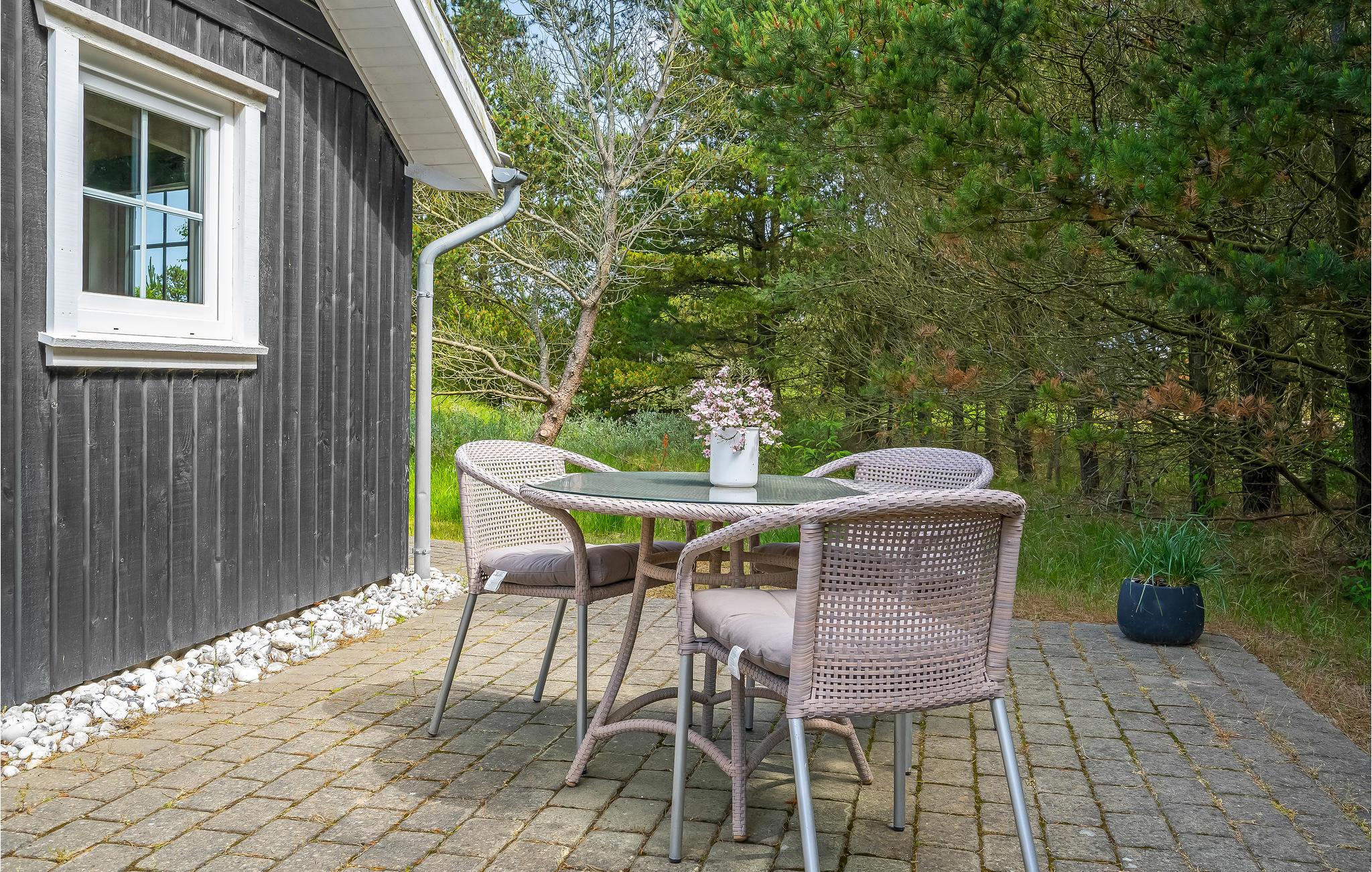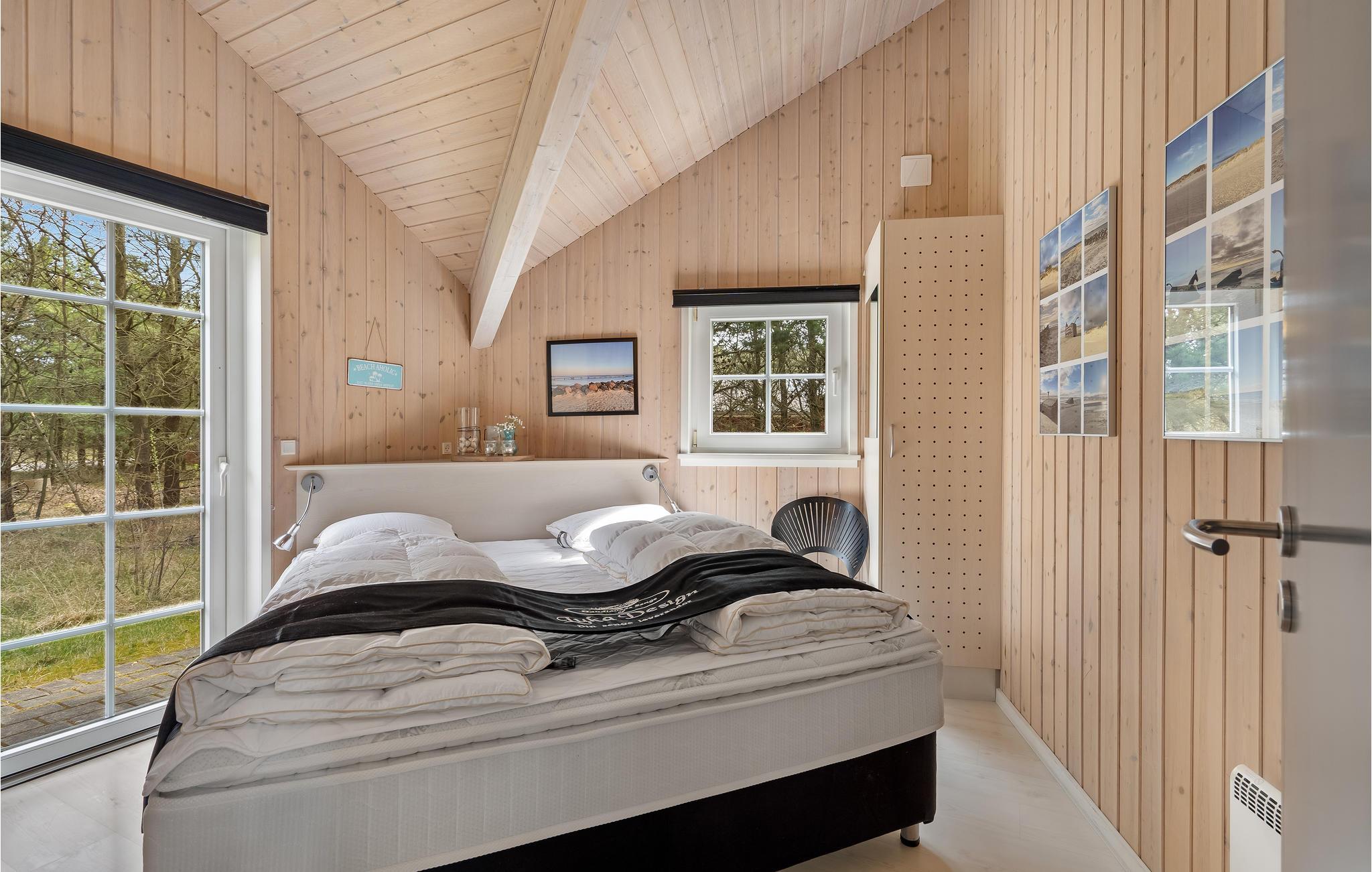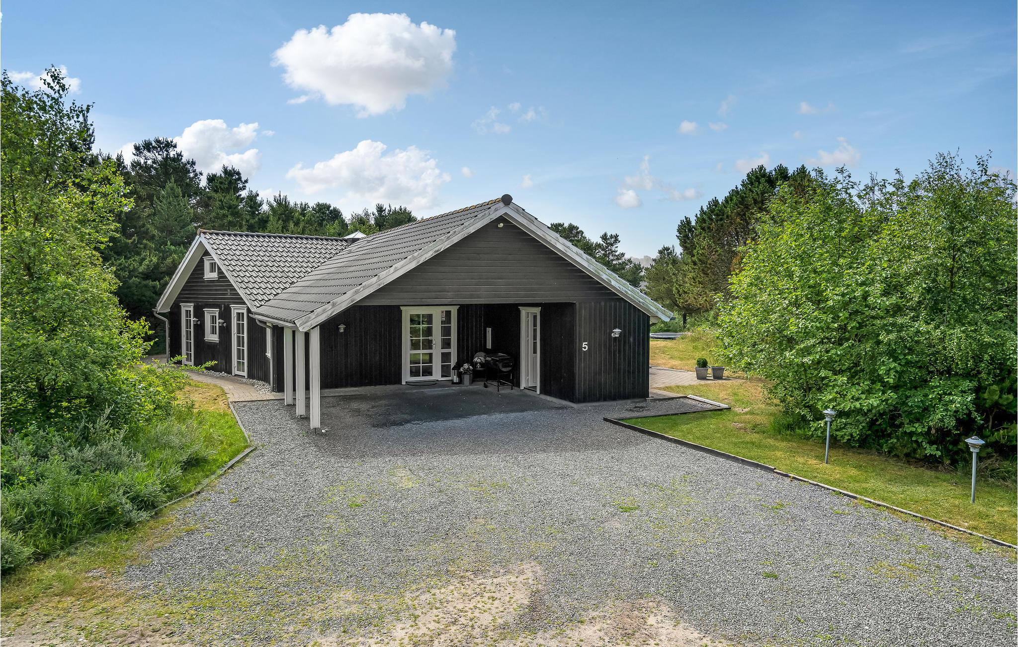 Ganz besonderes Ferienhaus, ein architektonisches Werk mit schiefen Winkeln undgutem Lichteinfall. Das Urlaubsgefühl unterstreichen auch die fünf Schlafzimmer und zwei Hemse, die für Ihre Kinder wie geschaffen sind. Einer besitzt Schlafgelegenheiten, der andere ist ein Spielzimmer. Großes, phantastische helles Wohnzimmer in der Mitte von Haus mit bis zum Giebel offener Decke und Dachfenstern. Freier Blick auf den Pool vom Wohnzimmer, das Zentrum des Urlaubsvergnügens. Hier liegen auch der Whirlpool und die Sauna. Draußen können Sie in vollen Zügen die Terrasse genießen, die fast das ganze Haus umschließt und den einen oder anderen Sonnenplatz bietet. Doppelter Carport gleich beim Hauseingang. Im Gehabstand sind der schöne Sandstrand, der Ort Blåvand und seine gute Auswahl an Geschäften zu finden.