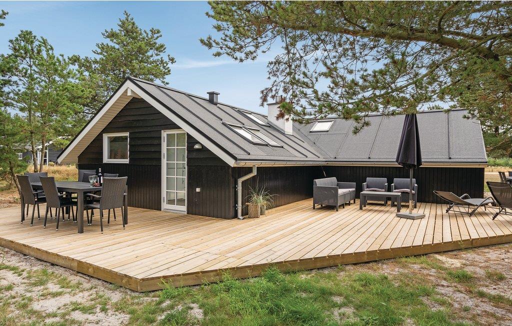 Modernes Ferienhaus in Blåvand mit Kamin, großer Terrasse und Naturgrundstück nahe Nordsee und Ortszentrum.