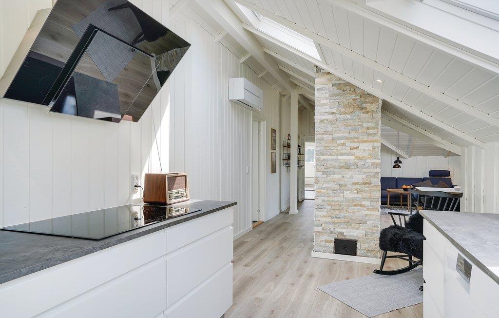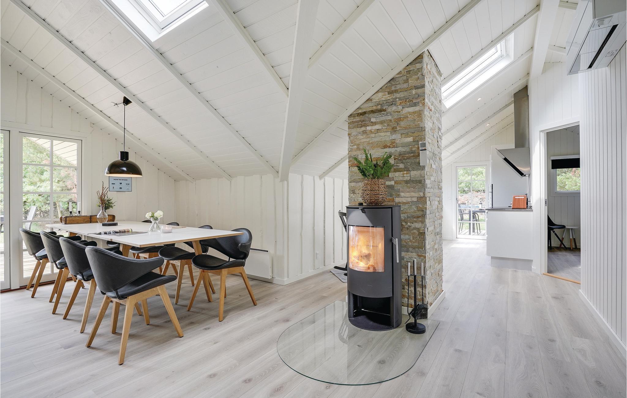 Sehr schönes, hell und geschmackvoll eingerichtetes Ferienhaus in Blåvand in fußlaäufiger Entfernung zum Ortszentrum und dem Brausen der Wellen an der Nordsee. Das Haus ist totalrenoviert. Mitten im Haus steht der Kaminofen, der schön gemauert ist, hier gibt es eine behagliche Sofaecke, und aus der Küche können beim Essenmachen alle Aktivitäten im Haus mitverfolgt werden. Vom Wohnzimmer gelangen Sie auf die große, teilweise überdachte Terrasse mit guten Gartenmöbeln und auf der Südwestseite des Hauses liegt die Abendterrasse mit Grill. Das Ferienhaus steht auf einem sehr großen und ungestörten Naturgrundstück mit viel Platz für Ballspiel und andere Aktivitäten.