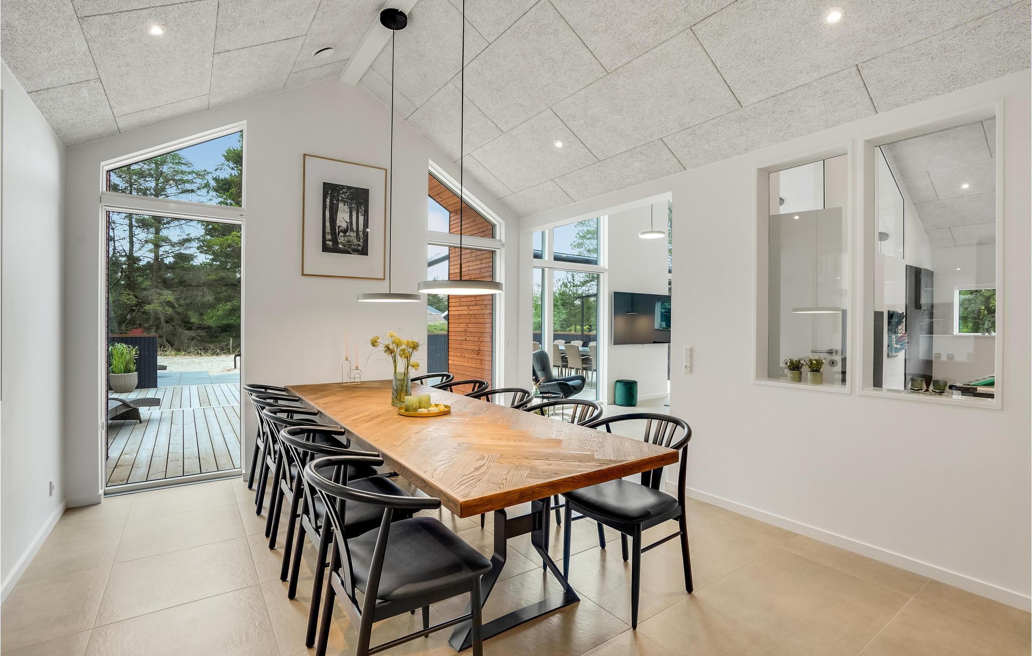 Im Ferienort Blåvand nah am westlichsten Punkt Dänemarks finden Sie dieses großartige Haus. Es besteht aus mehreren Gemeinschaftsräumen und zwei Wohnabteilungen, so dass es ideal für zwei Familien passt. Die hellen, modernen Zimmer sind im skandinavischen Stil eingerichtet und machen einen guten Eindruck. Verbringen Sie im Wohnzimmer gesellige Abenden bei den Mahlzeiten und nutzen Sie die Wellnesseinrichtungen für Entspannung. Die Kinder können sich mit dem Spielzeug für drinnen unterhalten oder oben auf dem offenen Spitzboden, wo eine Spielkonsole vorhanden ist, schön spielen.