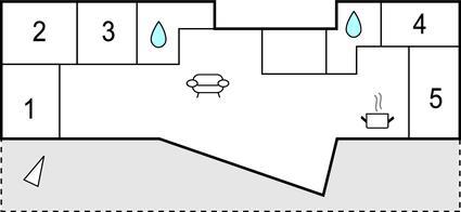 Badezimmer (nr. 1) - WC. Warmes und kaltes Wasser. Dusche