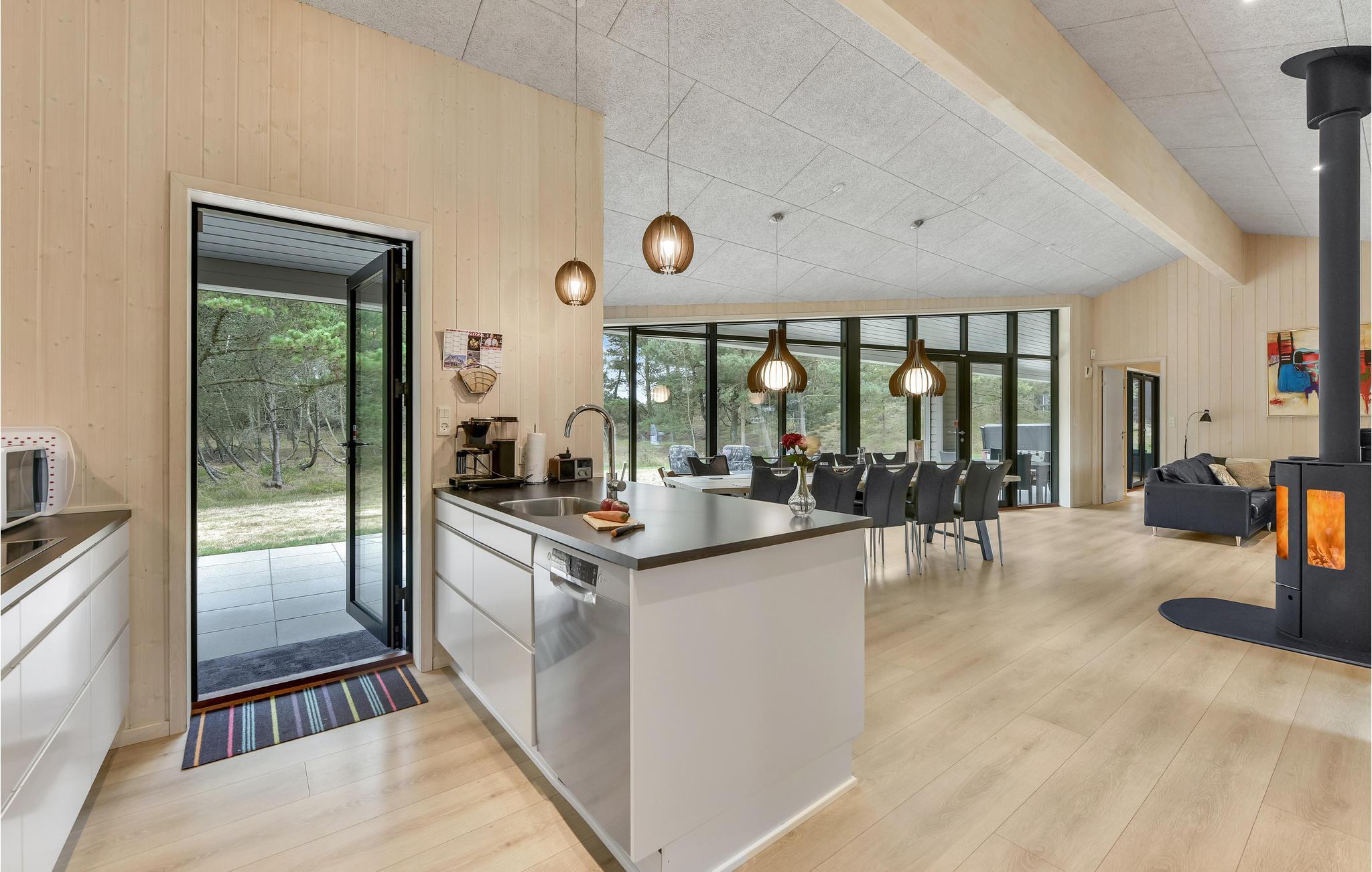 Vom nächsten Strand sind Sie nur 1,5 km entfernt. Hier können Sie schwimmen, Wassersport ausüben oder einfach herrlich spazieren gehen. Blåvand selbst ist ein Badeort mit perfekter Infrastruktur und einem vielfältigen Freizeitangebot. Die alte Handelsstadt Esbjerg liegt in der Nähe, im wenige Kilometer entfernten Ho gibt es für Sportangler mehrere Put & Take-Seen sowie einen 18-Loch Golfplatz. Nicht weit vom Ferienhaus entfernt treffen Sie auf den größten Kronwildbestand Dänemarks, Sie leben in einem riesigen Schutzgebiet. Hier finden Sie auch den berühmte Leuchtturm Blåvand Fyr. Dieser ermöglich einen Ausblick auf Horns Rev, die Küste und die Heidelandschaft Kallesmærsk Hede. Ein Gebiet wie geschaffen zum Wandern.