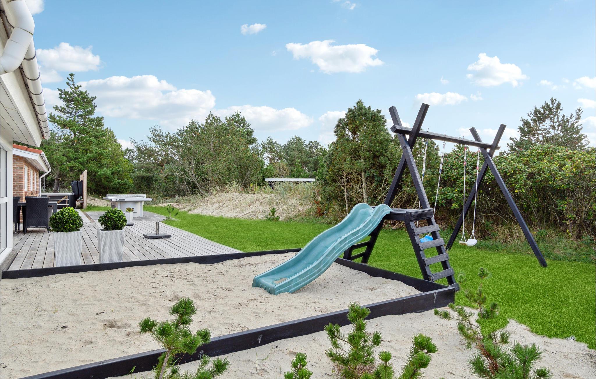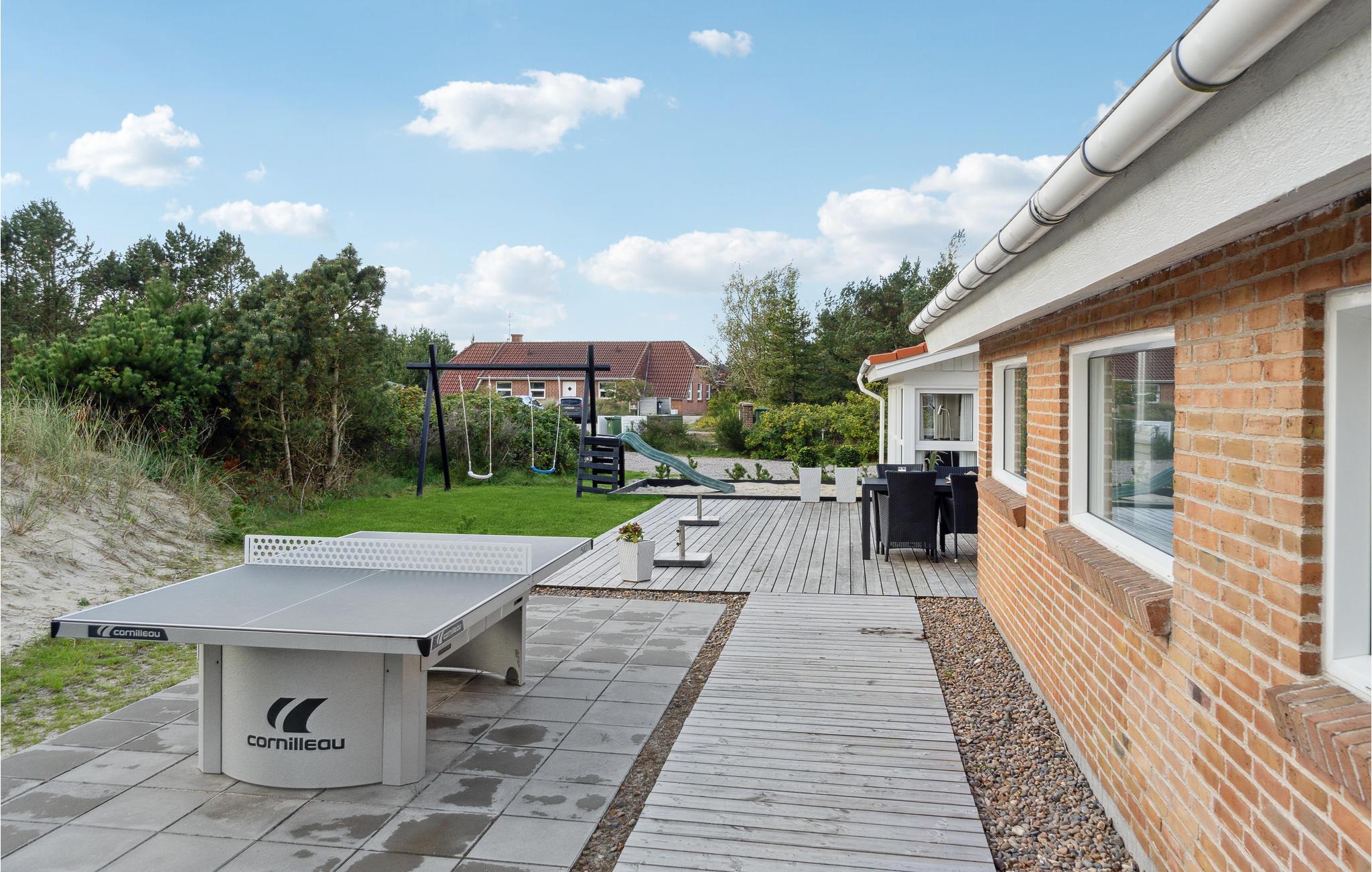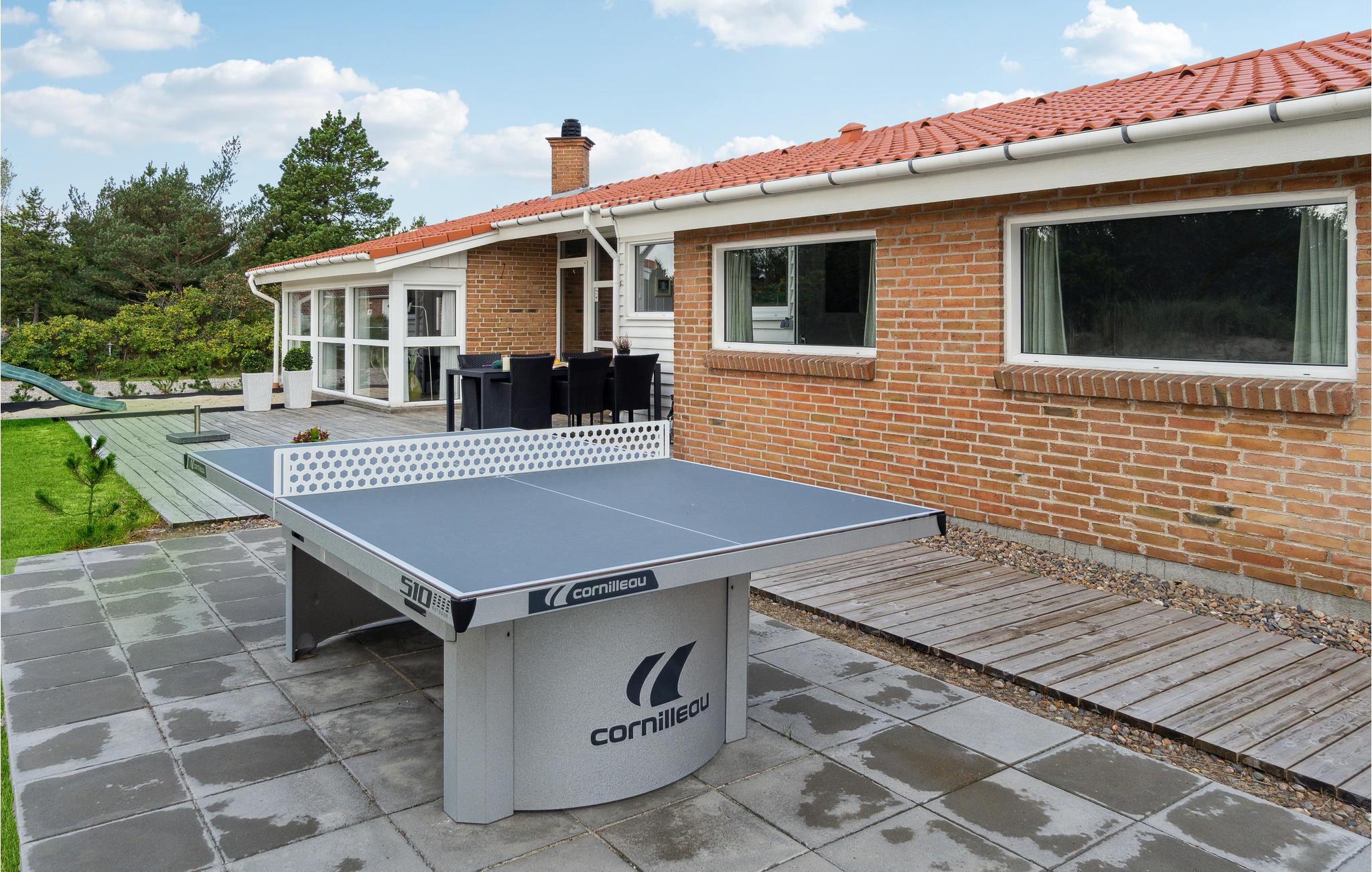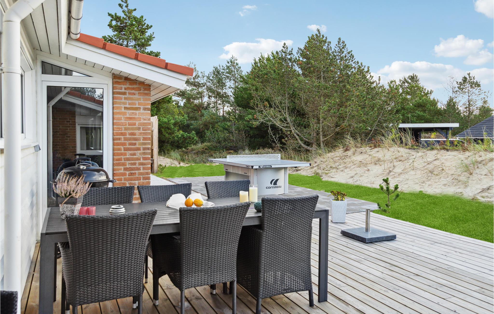 Auch der Außenbereich des Ferienhauses hat viel zu bieten. Genießen Sie auf der Terrasse die Sonne, während Ihre Kinder vergnügt buddeln und spielen, fordern Sie Ihre Mitreisenden zu einer Partie Tischtennis heraus und versammeln Sie später die ganze Familie zu Leckereien vom Grill.