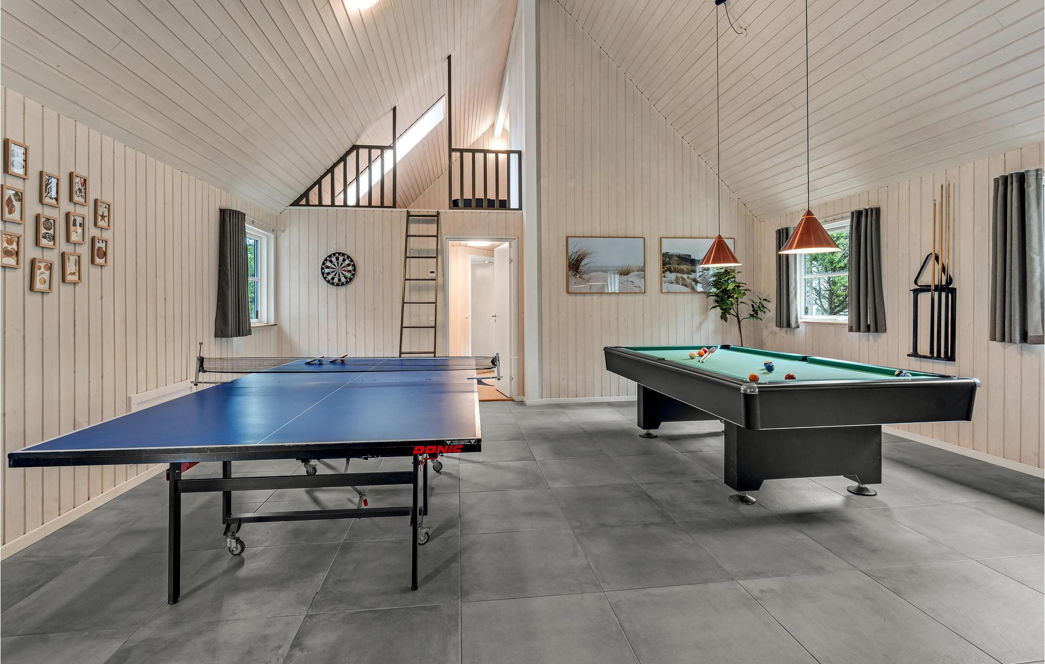Machen Sie es sich in diesem komfortablen Haus mit Ihren Lieben zu jeder Jahreszeit gemütlich, hier wird es Ihnen im Urlaub an nichts fehlen. In den hellen Räumen ist ausreichend Platz für einen Aufenthalt mit mehreren Generationen oder eine Gruppe von Freunden. Billard, Kicker und Tischtennis laden zu ausgelassenen Duellen ein. Groß und Klein werden sich stundenlang im Pool vergnügen. Entspannen Sie nach einem langen Strandspaziergang in der hauseigenen Sauna oder tauchen Sie im Whirlpool ab. Anschließend können Sie es sich auf dem großzügigen Sofa bequem machen, ein Feuer im Kaminofen anfachen und noch lange beim Knistern der Flammen plaudern.