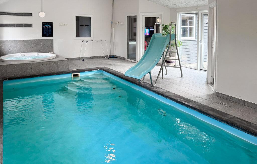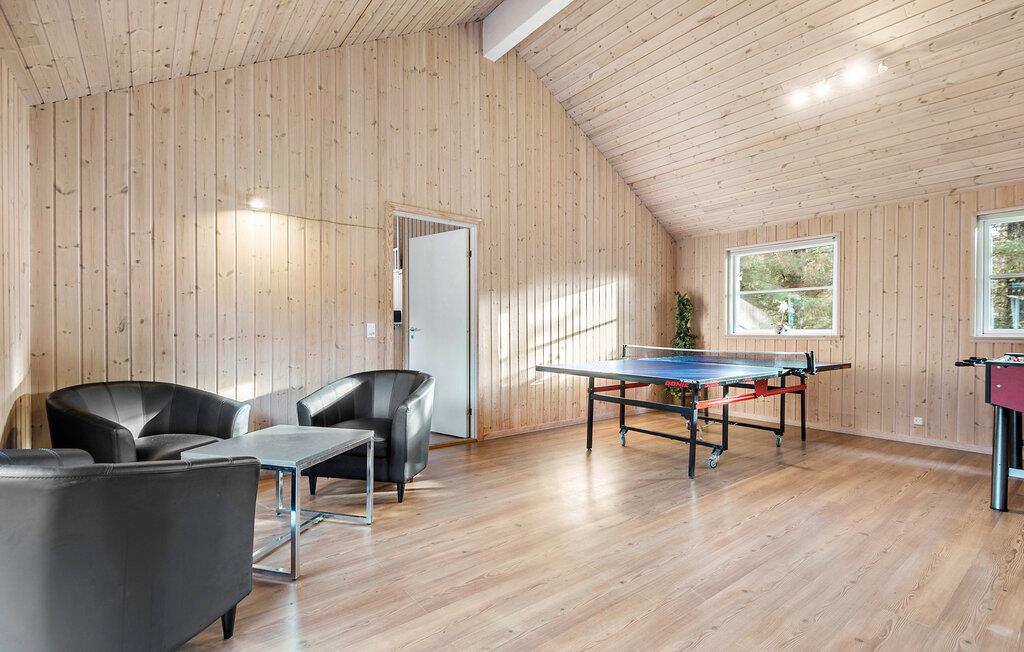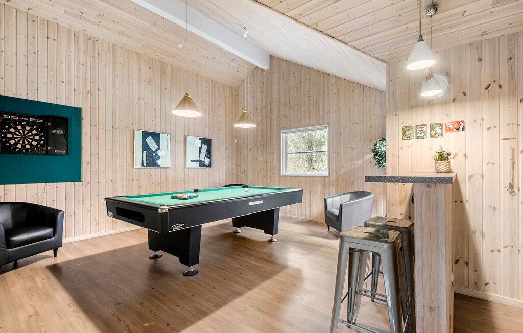Verbringen Sie Ihren jährlichen Familienurlaub in diesem geräumigen und sehr einladenden Ferienhaus, das alle Wünsche vereinen wird. Die hellgebeizten Holzwände schaffen eine helle und freundliche Wohnatmosphäre, in der Sie zum gemeinsamen Kochen, Essen an der Tafel oder zum Entspannen auf dem Sofa zusammenkommen können. Der Innenpool mit Rutsche und Whirlpool verspricht Ihnen grenzenlosen Badespaß, während die Sauna für entspannte Momente sorgt. Der großzügige Aktivitätsraum ist ausgestattet mit Darts, Billard, Tischtennis und Tischfußball – ideal für gesellige Abende. Hier vereinen sich moderne Annehmlichkeiten mit einer gemütlichen Atmosphäre zu einem perfekten Urlaubsparadies.