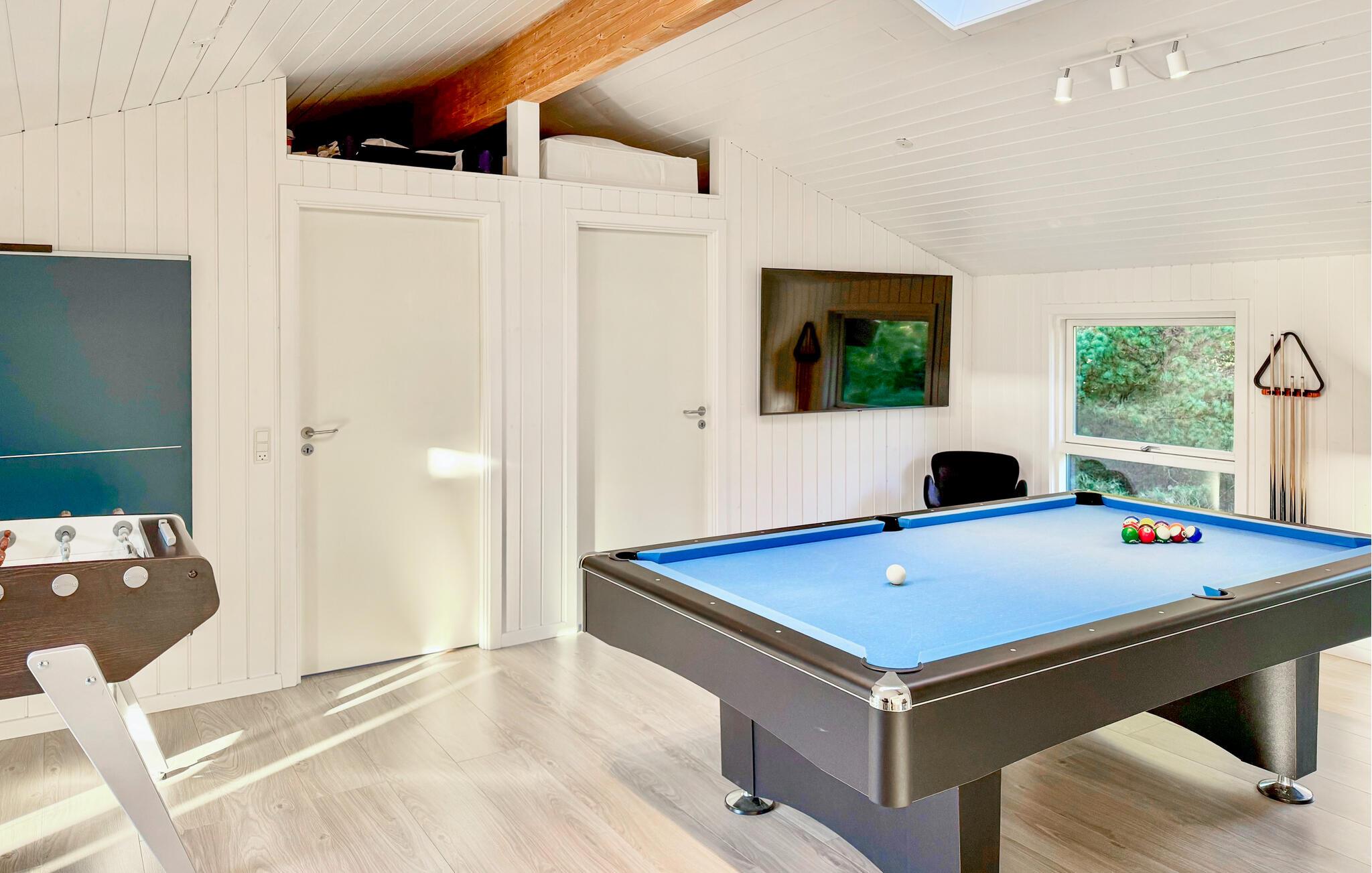 Freuen Sie sich auf einen großartige Familienzeit in diesem schönen Ferienhaus, dass Ihnen nicht nur viel Platz, sondern auch eine fantastische Ausstattung verspricht. Entspannen Sie sich in der Sonne auf dem Sofa oder plaudern am Esstisch, während die Hobbyköche der Gruppe die Kochlöffel schwingen. Die Unterhaltung und die Entspannung kommen ebenfalls in diesem Haus nicht zu kurz. Veranstalten Sie Billard oder tischfußballturniere und finden Erholung im Whirlpool oder in der Sauna.