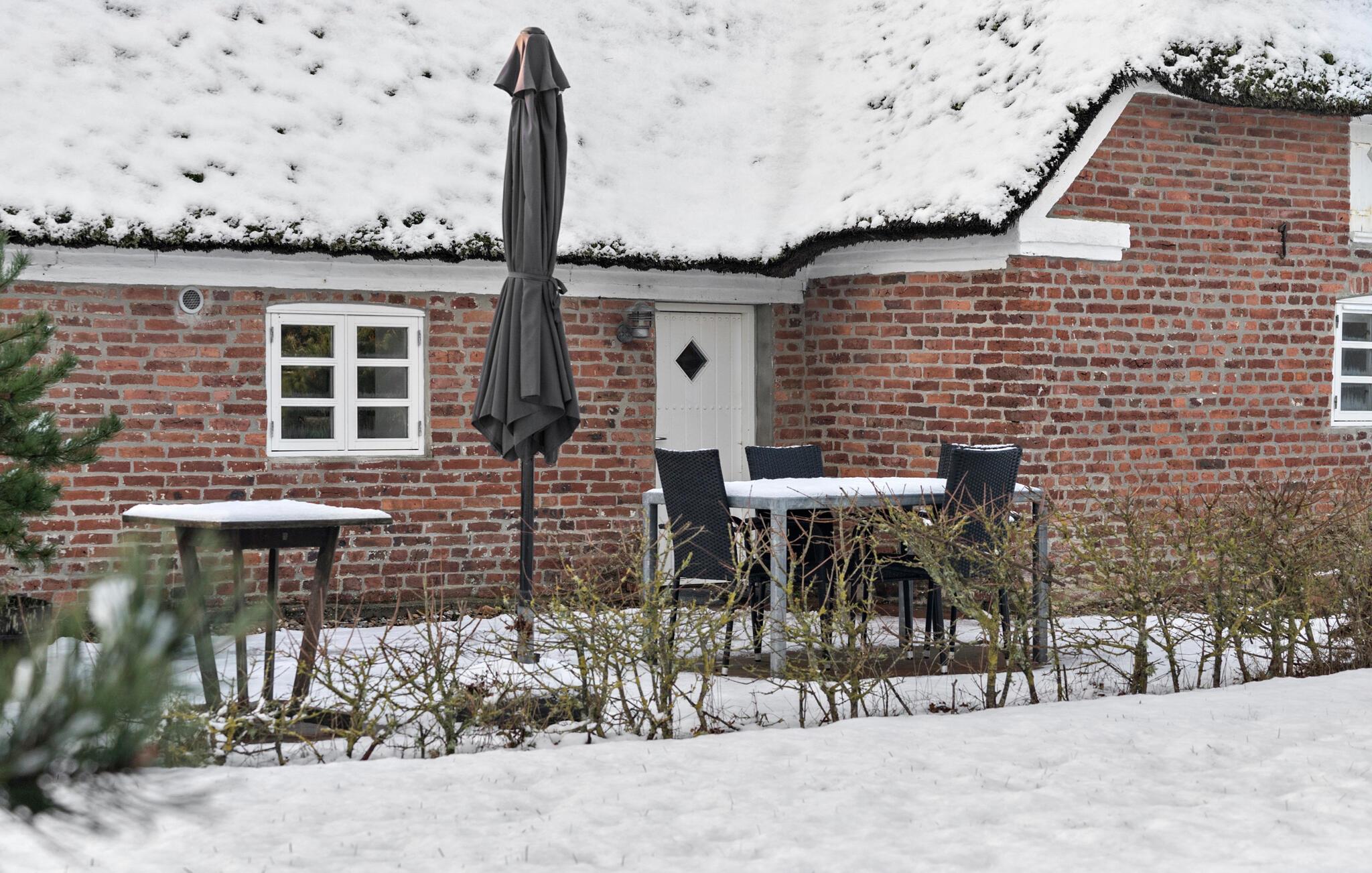 Der Außenbereich besticht durch den klassischen roten Backsteinbau und eine einladende Terrasse, umgeben von einer friedlichen Winterlandschaft. Genießen Sie die milde Morgensonne bei frisch gebrühtem Kaffee auf Ihrer Terrasse und lassen Sie die ruhige Atmosphäre auf sich wirken.