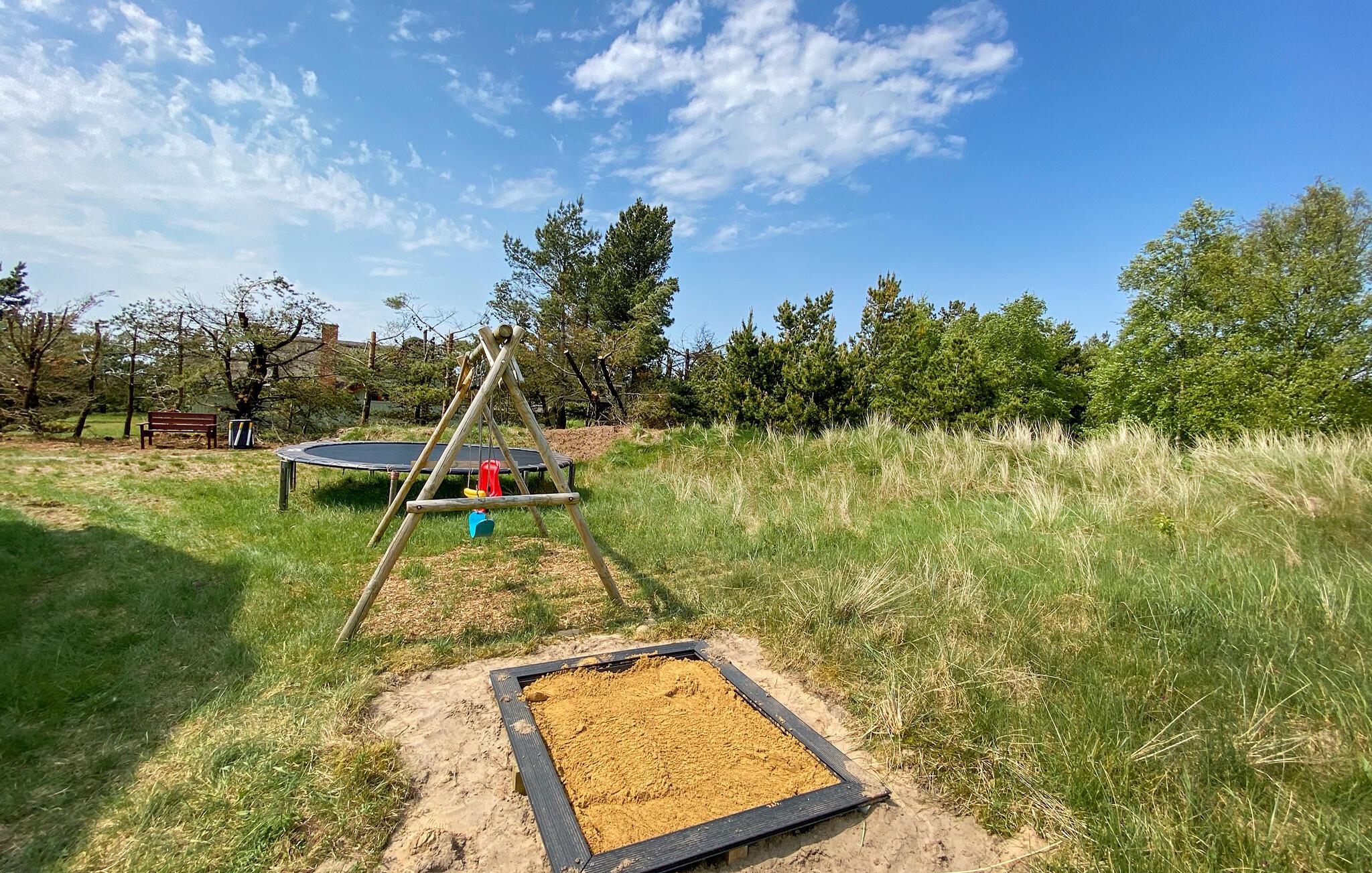 Im Außenbereich erwarten Sie verschiedene Terrassenbereiche, die ideal sind, um sonnige Stunden im Freien zu verbringen. Entspannen Sie auf bequemen Sonnenliegen, während die Kinder sich auf dem Trampolin, der Schaukel oder im Sandkasten austoben. Nutzen Sie den Grill, um köstliche Mahlzeiten an lauen Sommerabenden gemeinsam im Freien zu genießen.