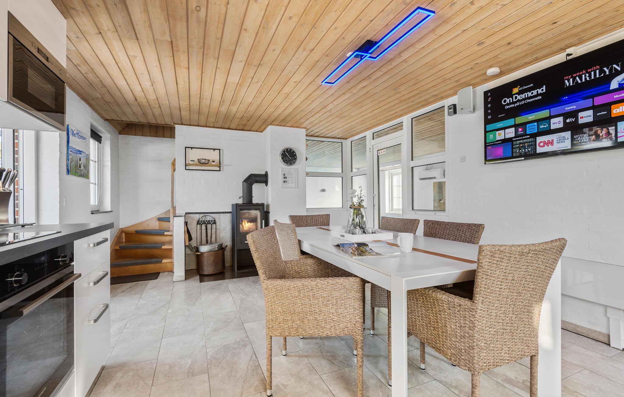 Freuen Sie sich auf eine wunderbare Urlaubszeit in diesem charmanten Reetdachhaus, das Ruhe und Aktivität ideal verbindet. Ihr gemütliches Ferienhaus überzeugt mit einer stilvollen Einrichtung und großzügigen Räumen. Beginnen Sie Ihren Morgen mit einem leckeren Frühstück in der modernen, offenen Küche, die viel Platz für gemeinsame Mahlzeiten bietet. Anschließend entspannen Sie im geräumigen Wohnbereich auf der bequemen Sofalandschaft oder genießen die wohlige Wärme vor dem Kaminofen. Der hauseigene Pool, Whirlpool sowie die Sauna laden dazu ein, Körper und Geist zu entspannen und Energie für neue Urlaubserlebnisse zu tanken.