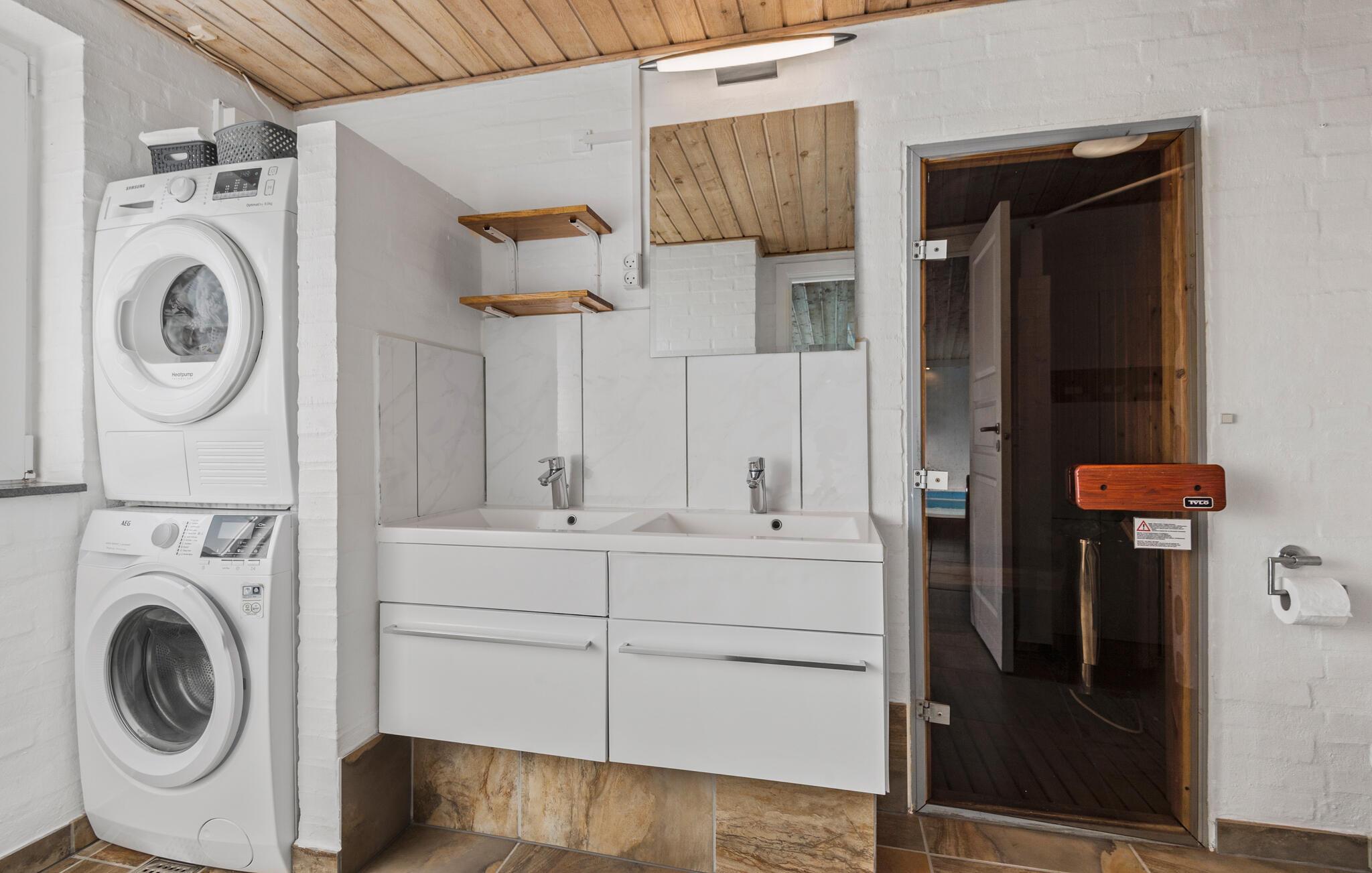 Verbringen Sie einen luxuriösen Dänemark-Urlaub in diesem Ferienhaus mit Sauna, Whirlpool und Pool.