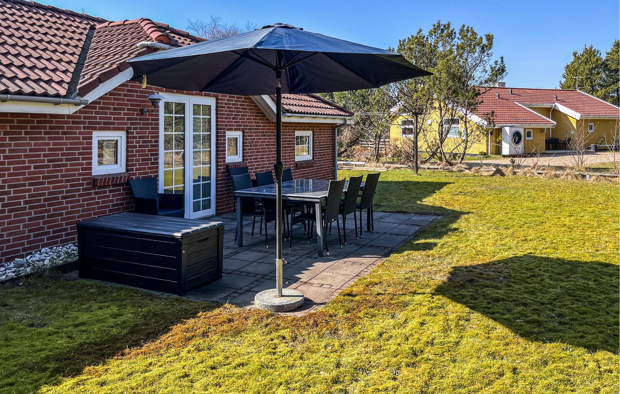 Treten Sie schon morgens mit einer Tasse Kaffee vors Haus und genießen Sie das viele Grün, das Sie umgibt. Frühstücken Sie ausgiebig und schmieden Sie Pläne für den kommenden Urlaubstag, während Ihre Kinder im Sandkasten spielen oder schaukeln. Für ein erfrischendes Bad steht Ihne jederzeit der Whirlpool zur Verfügung.