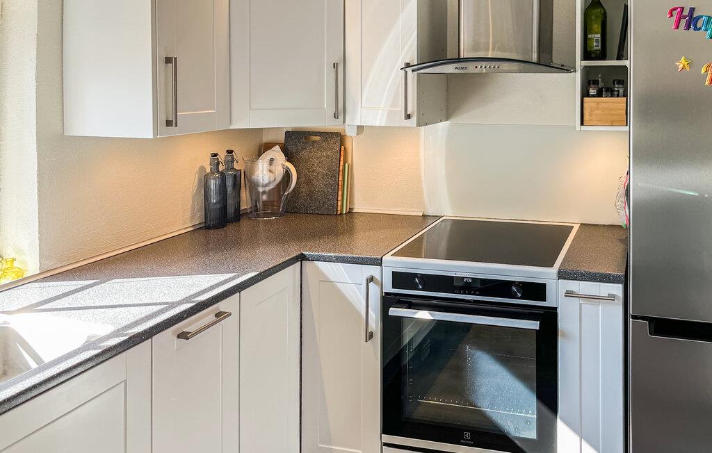 Dieses Haus empfängt Sie mit lichtdurchfluteten Räumen, modernen Möbeln und einem Kaminofen, der sofort Gemütlichkeit verbreitet. Machen Sie es sich auf dem großen Sofa bequem, schauen Sie gemeinsam Filme oder genießen Sie den Blick durch die großen Fenster ins Grüne. Lassen Sie den Tag beim Knistern des Kaminofens ausklingen und spüren Sie, wie Ruhe und Behaglichkeit Sie ganz einnehmen.