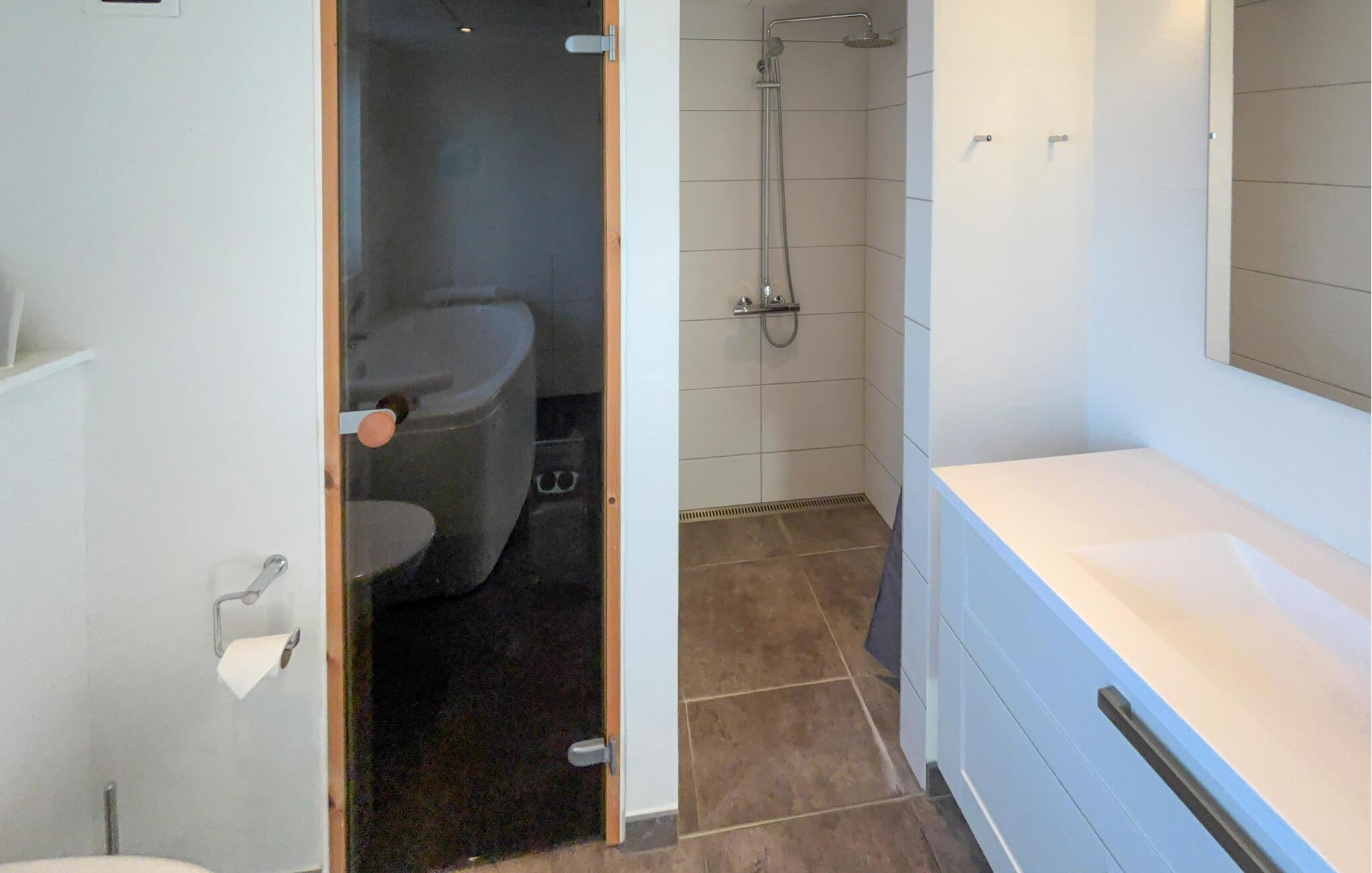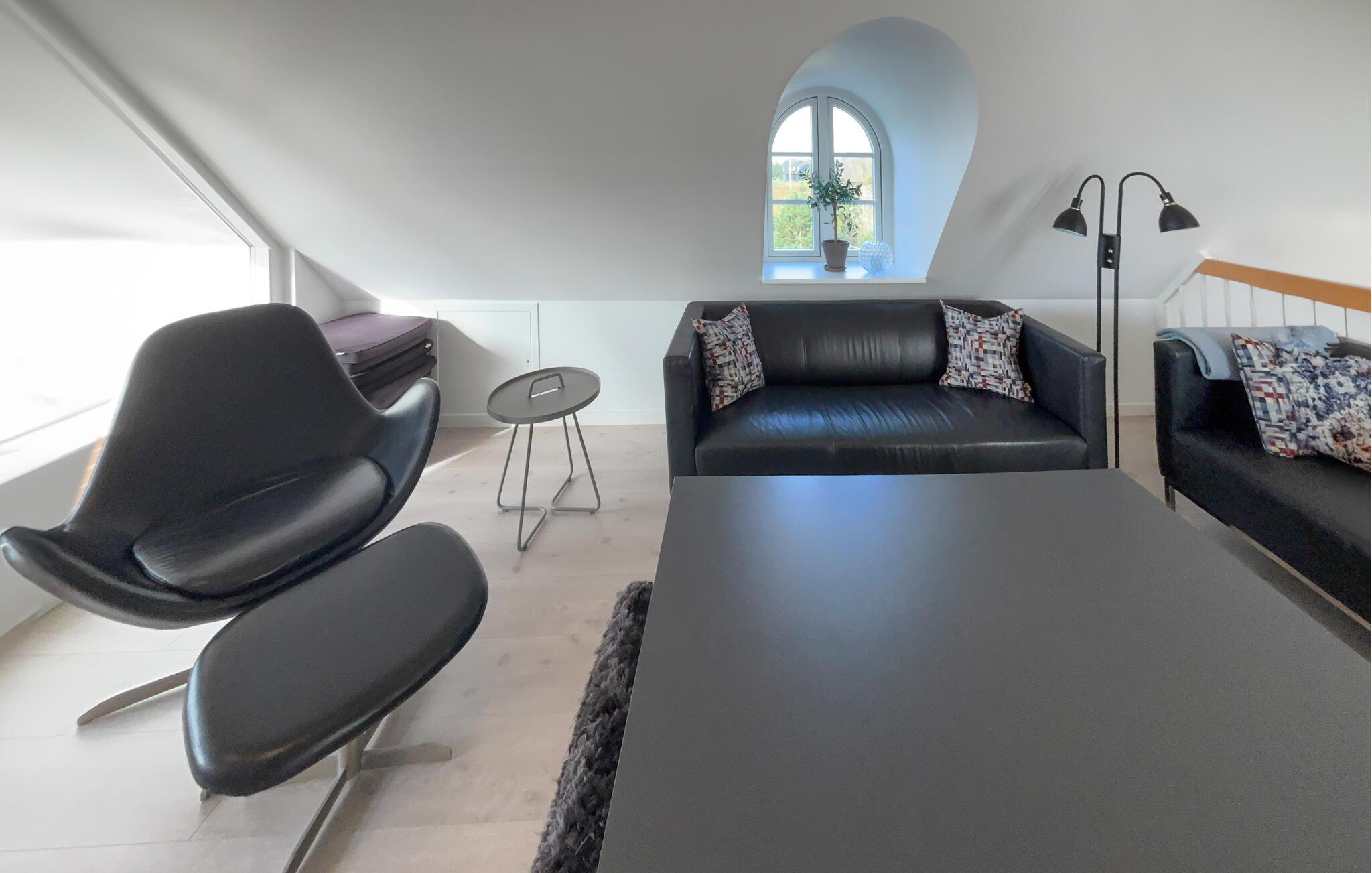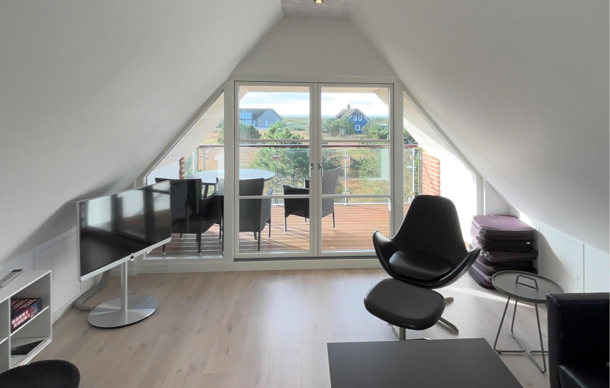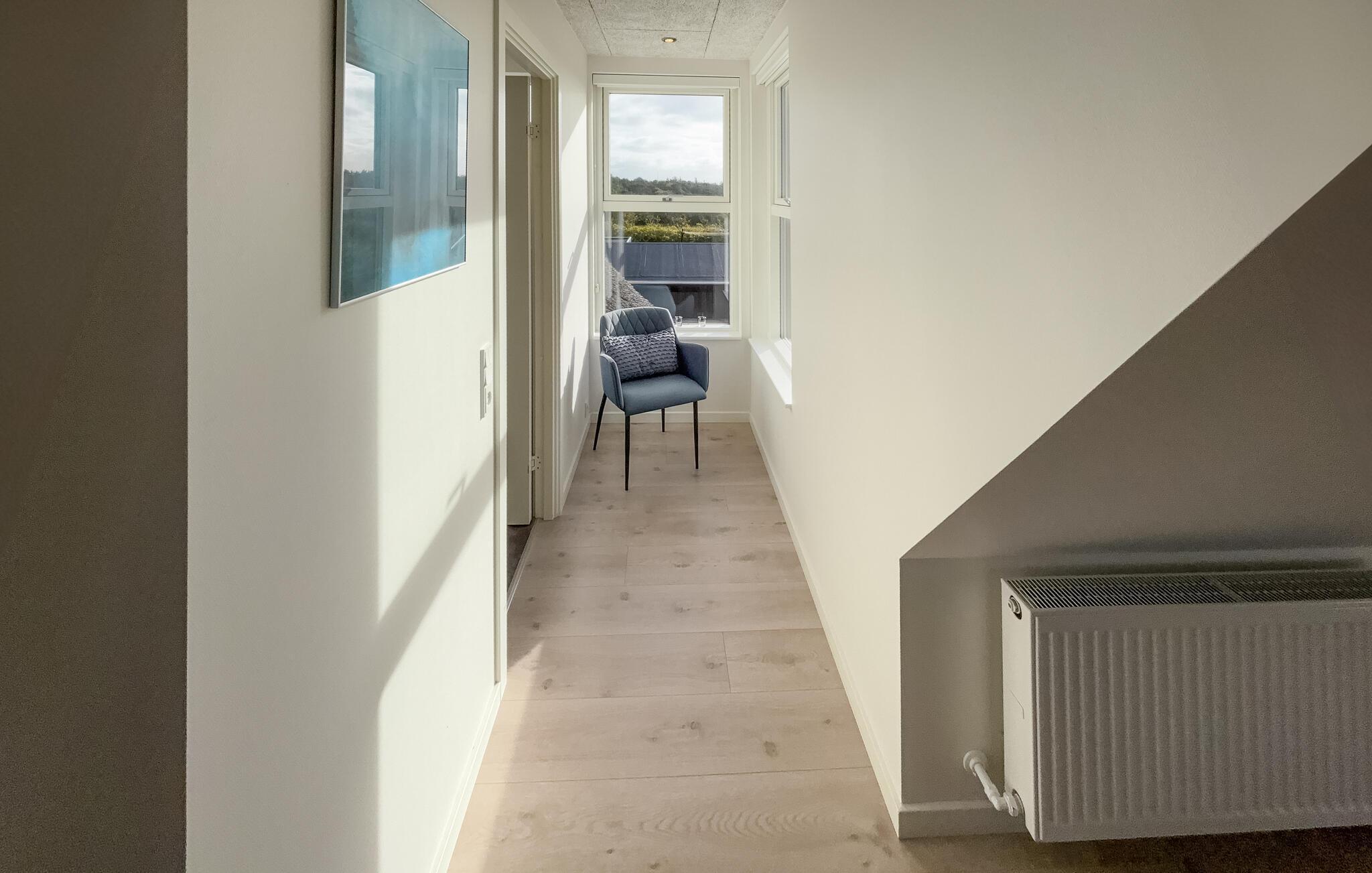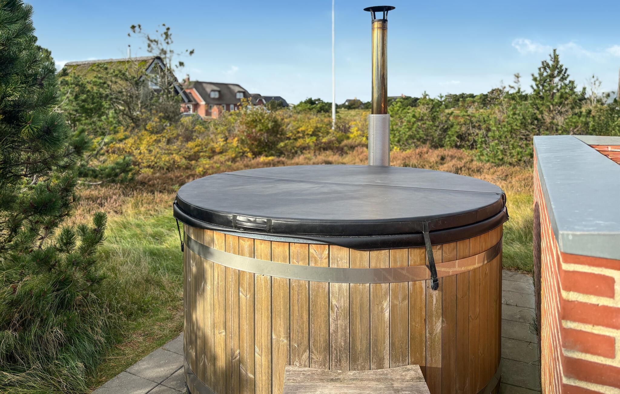 Auf einem naturbelassenen Grundstück gelegen, verbindet dieses Haus stilvolles Wohnen mit unvergesslichen Naturerlebnissen. Der offene Wohn- und Essbereich ist geschmackvoll eingerichtet, mit bequemen Sitzmöbeln, Kaminofen und großem Esstisch – ideal für gemeinsame Mahlzeiten oder entspannte Abende. Kochen Sie in der modernen Küche, während der Duft frischer Speisen durch die Räume zieht. In der oberen Etage erwartet Sie ein weiterer Wohnraum mit Zugang zu einem Balkon, von dem Sie einen weiten Blick über die Dünenlandschaft und bis zum Meer genießen können. Entspannen Sie im Whirlpool oder in der Sauna und lassen Sie den Alltag hinter sich.