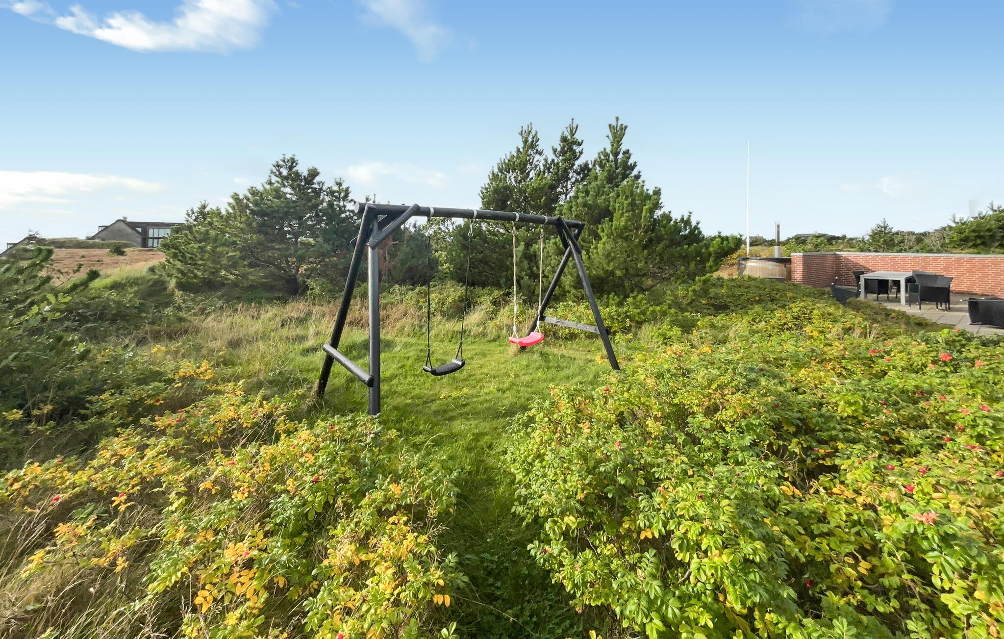 Verbringen Sie Zeit im Freien auf den großzügigen Terrassen, die windgeschützt liegen und verschiedene gemütliche Ecken zum Sitzen und Sonnen bieten. Bereiten Sie ein gemeinsames Abendessen auf dem Grill zu oder genießen Sie den Sonnenuntergang mit einem Glas Wein. Kinder können sich auf der Schaukel austoben oder in der Shelter-Hütte kleine Abenteuer erleben.